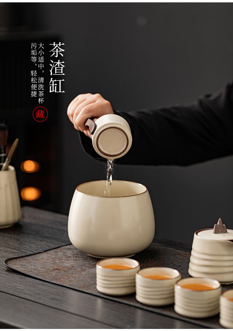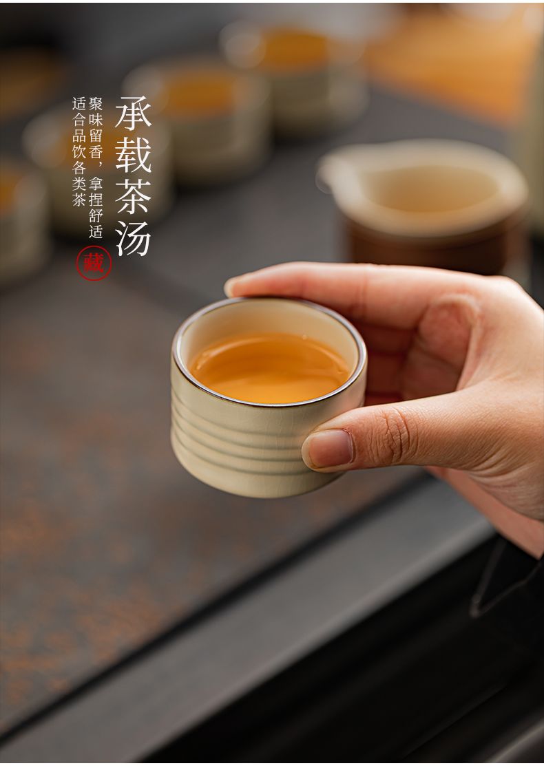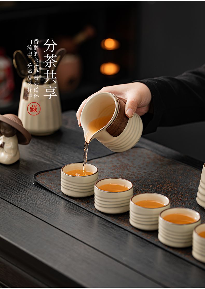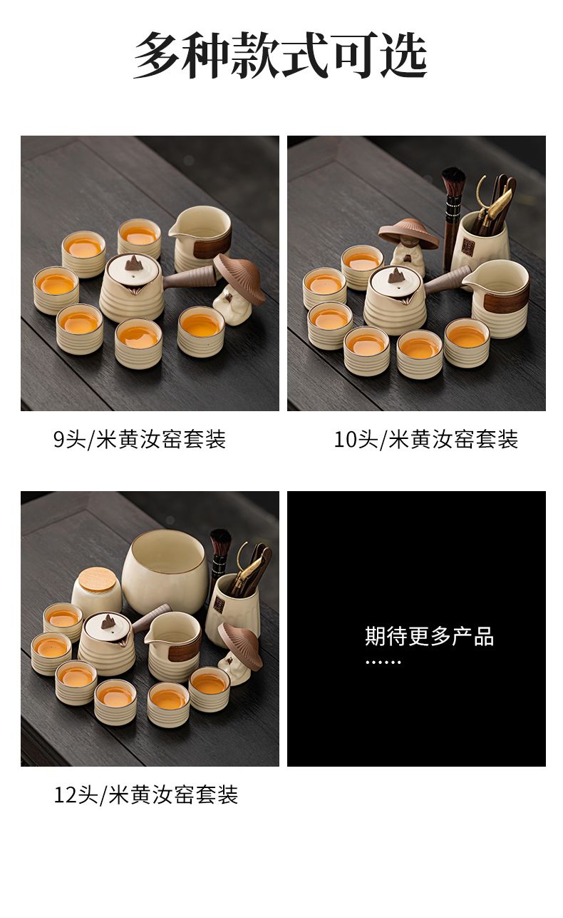 米黄汝窑功夫茶具套装轻奢办公室会客陶瓷家用高端泡侧把茶壶礼盒