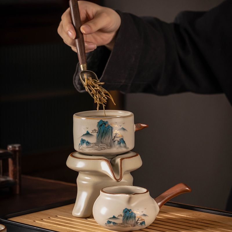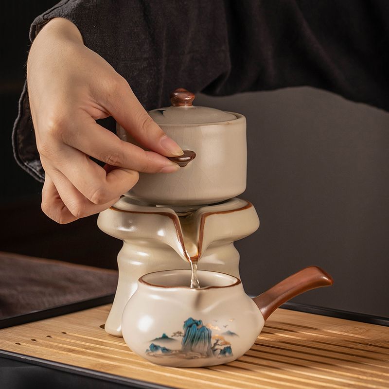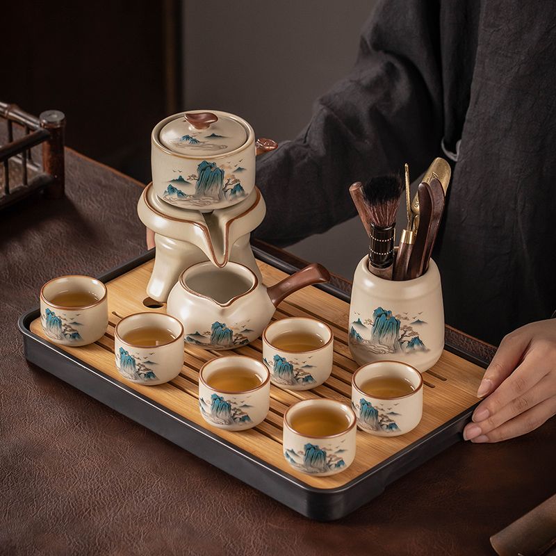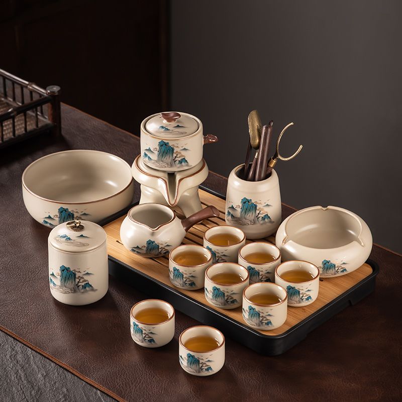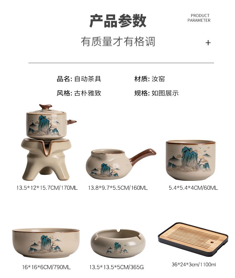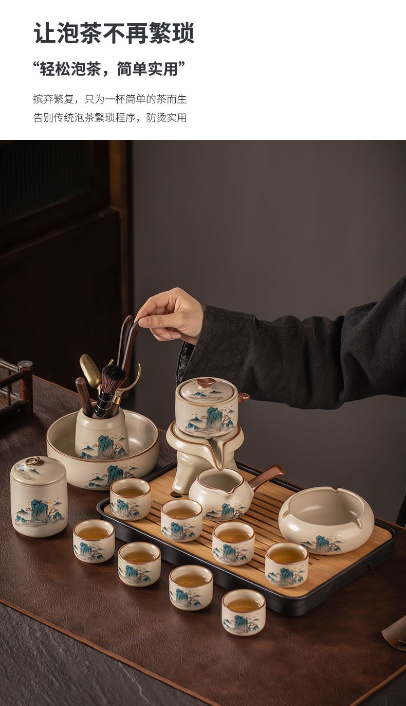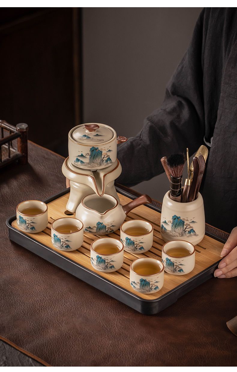 汝窑自动茶具套装家用高档懒人泡茶器中式陶瓷茶壶茶杯茶盘一整套