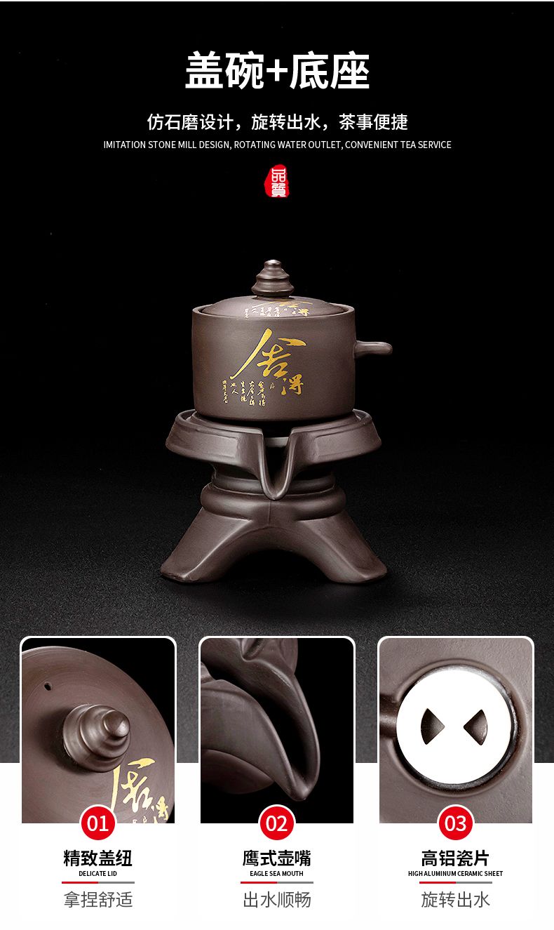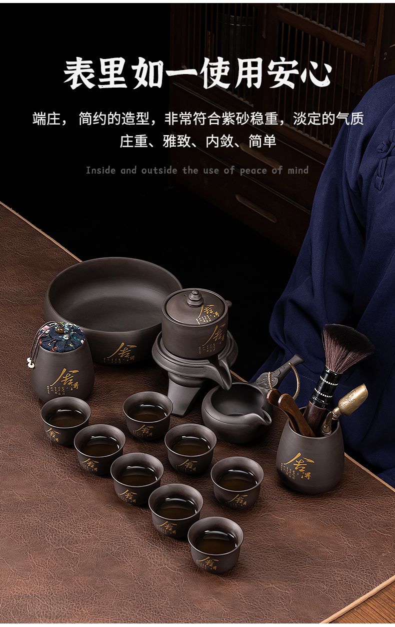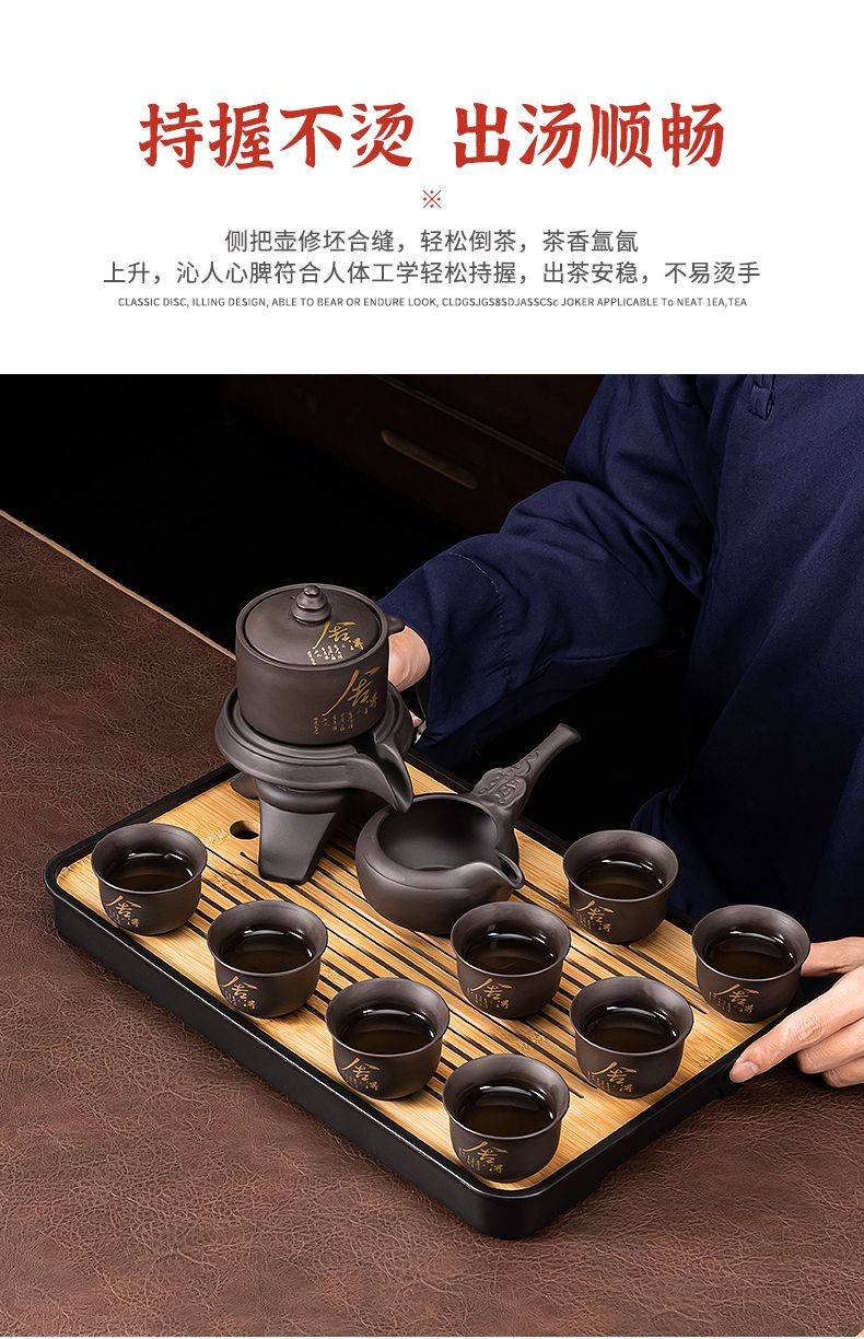 紫砂懒人自动茶具套装家用客厅功夫茶杯泡茶壶茶盘小套石磨冲茶器