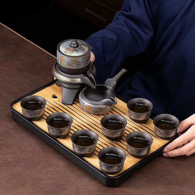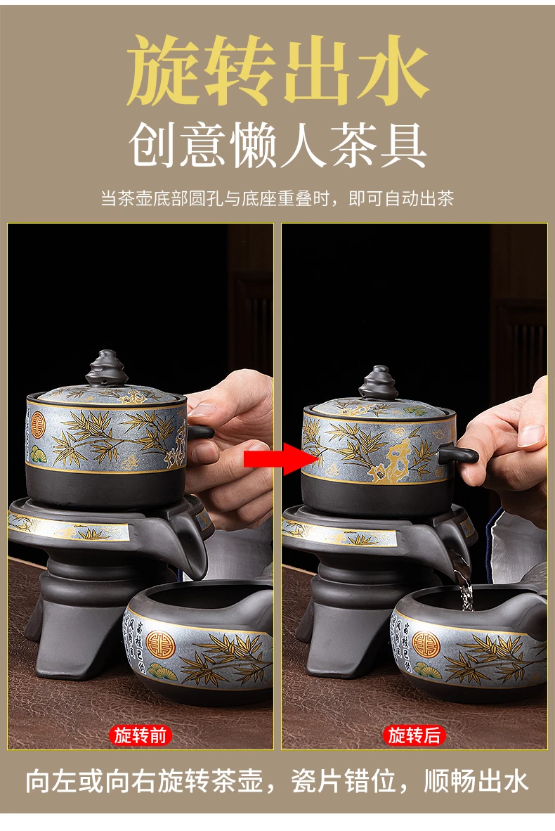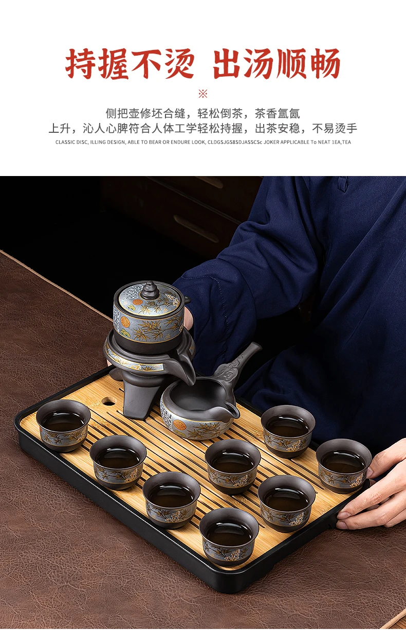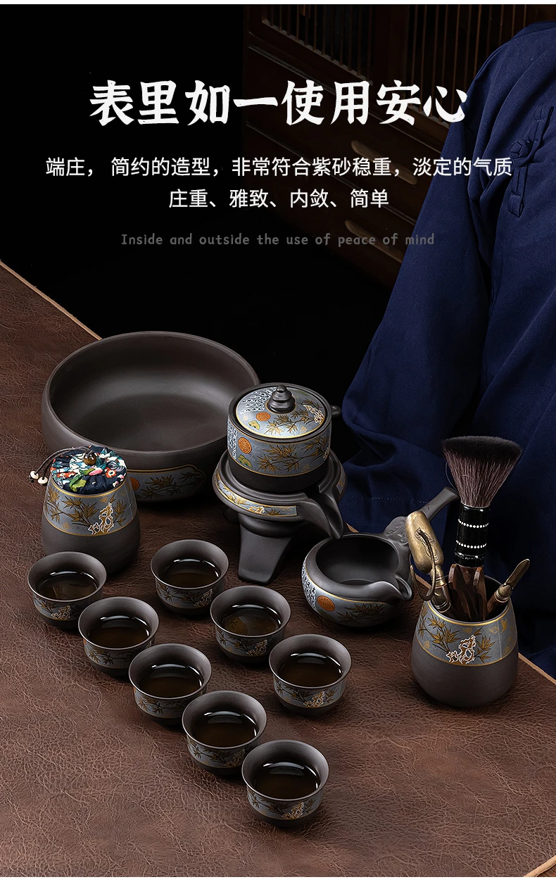 懒人功夫茶具套装家用办公轻奢自动茶壶茶杯石磨泡茶神器紫砂新款