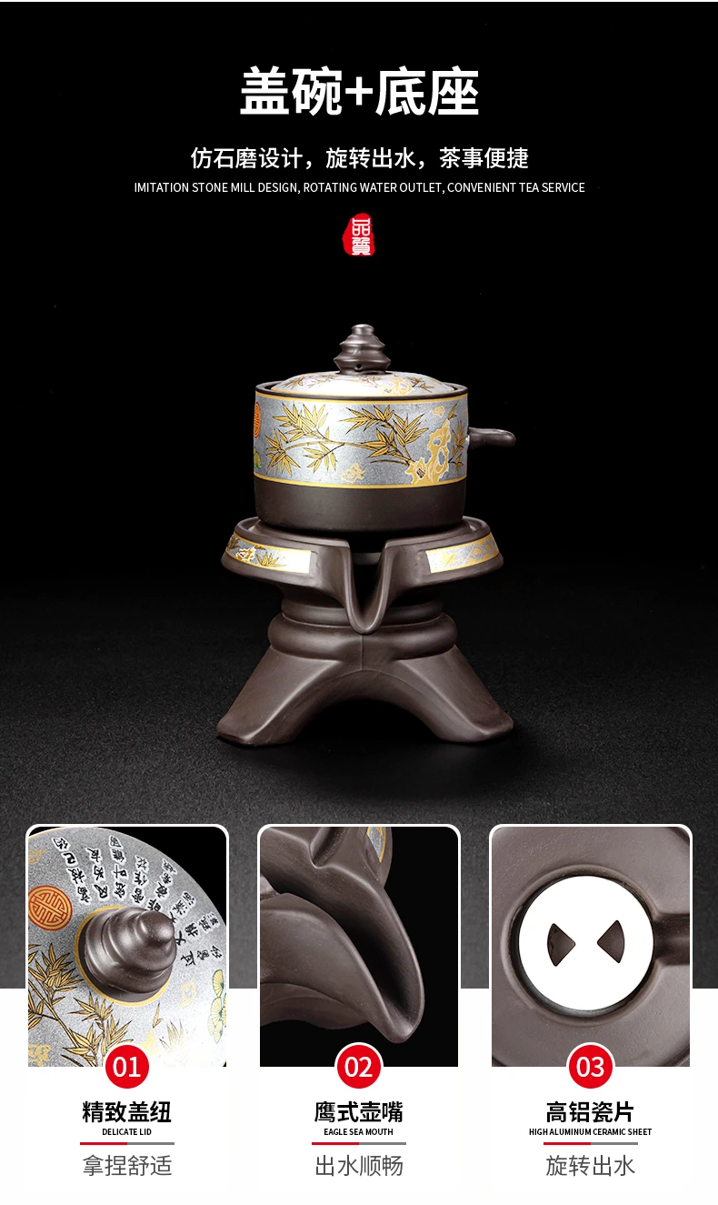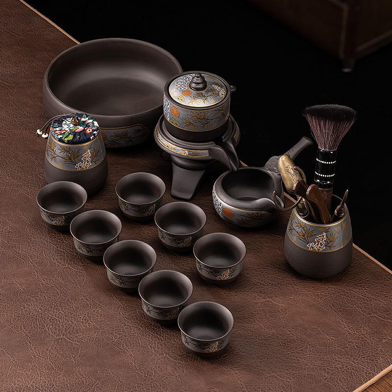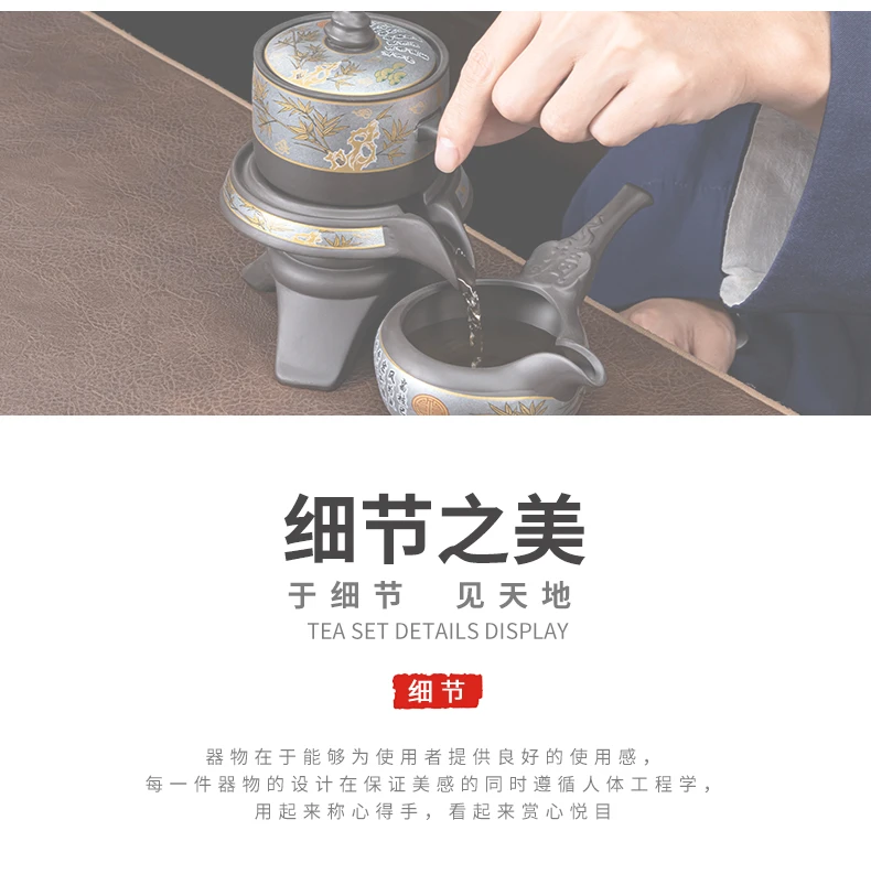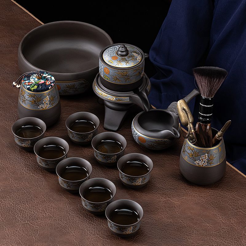 懒人功夫茶具套装家用办公轻奢自动茶壶茶杯石磨泡茶神器紫砂新款
