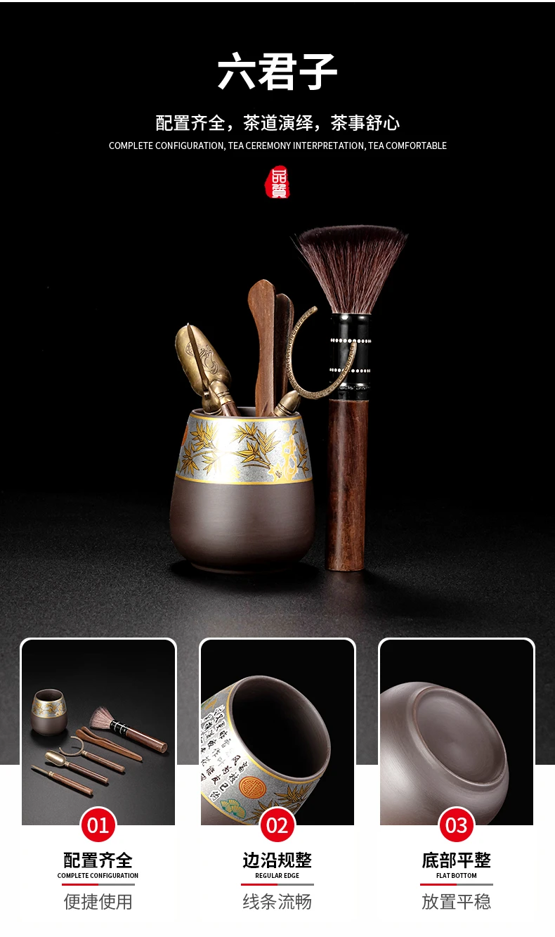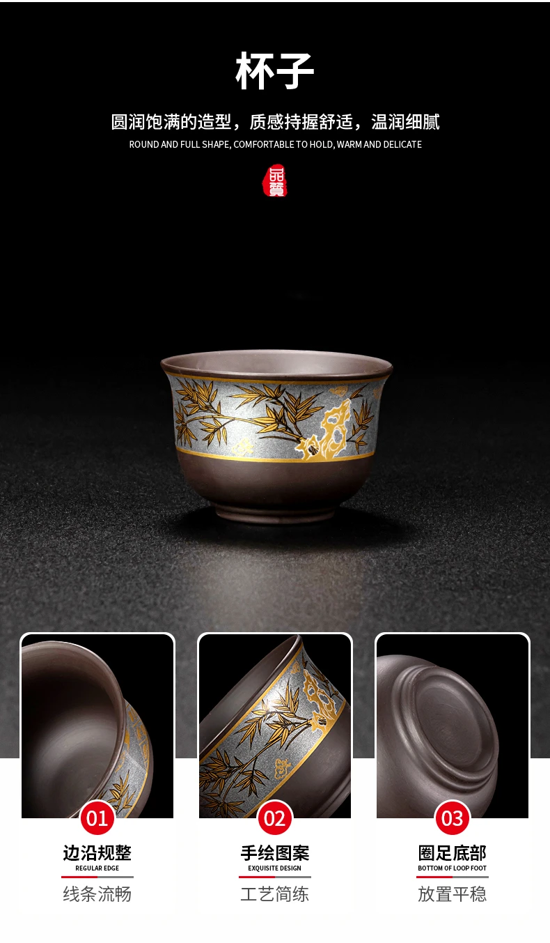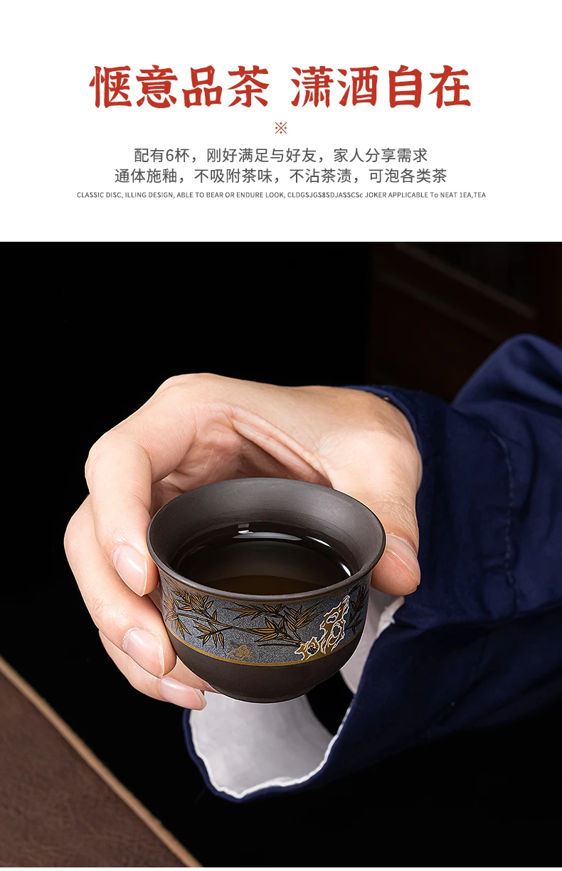 | purple sand bamboo rhyme 8 cups + tea ceremony tea caddy tea basin + melody of lyre black(紫砂竹韵8杯+茶道茶罐茶洗+琴韵黑) | USD $42.75 | 999999 piece available |