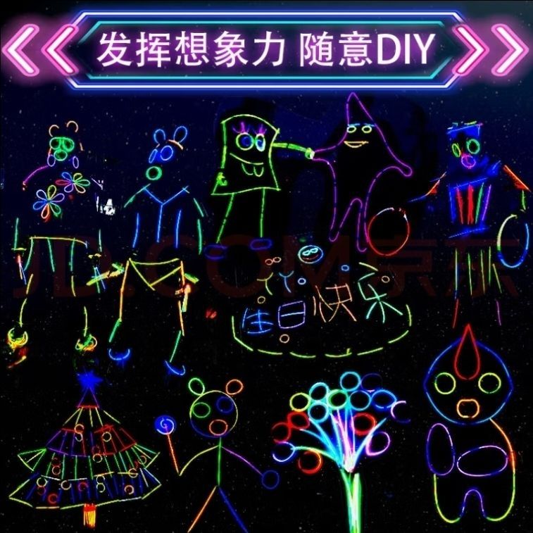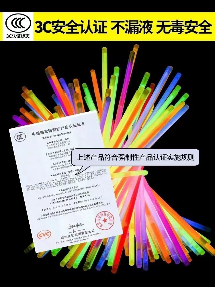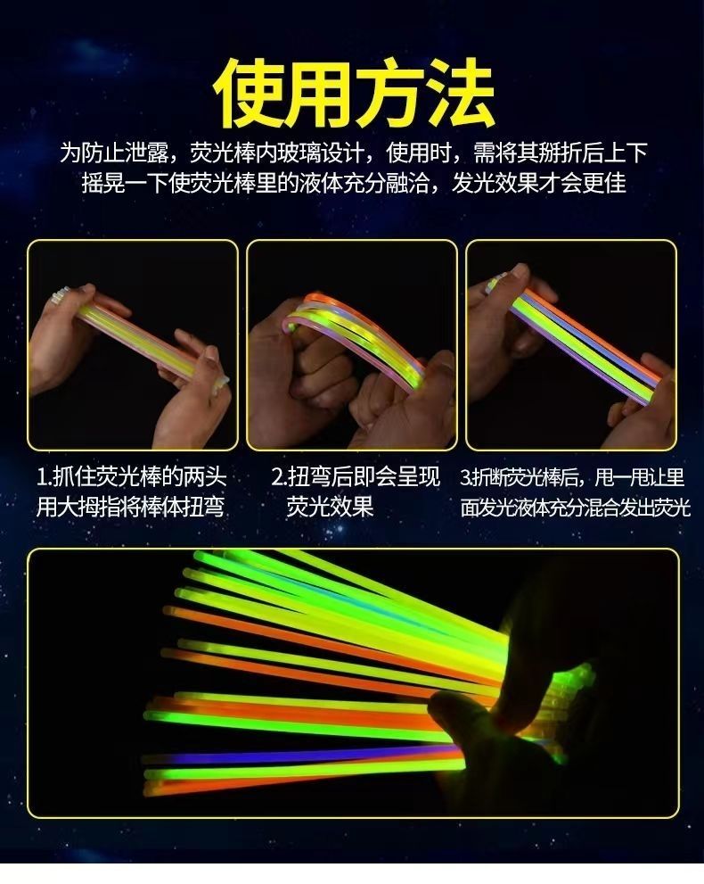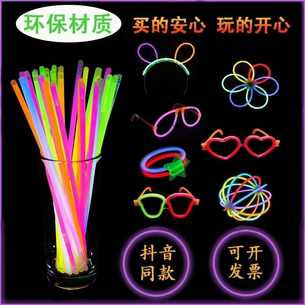 七彩荧光棒批发儿童贴身上五颜六色跳舞道具魔法夜光发光玩具