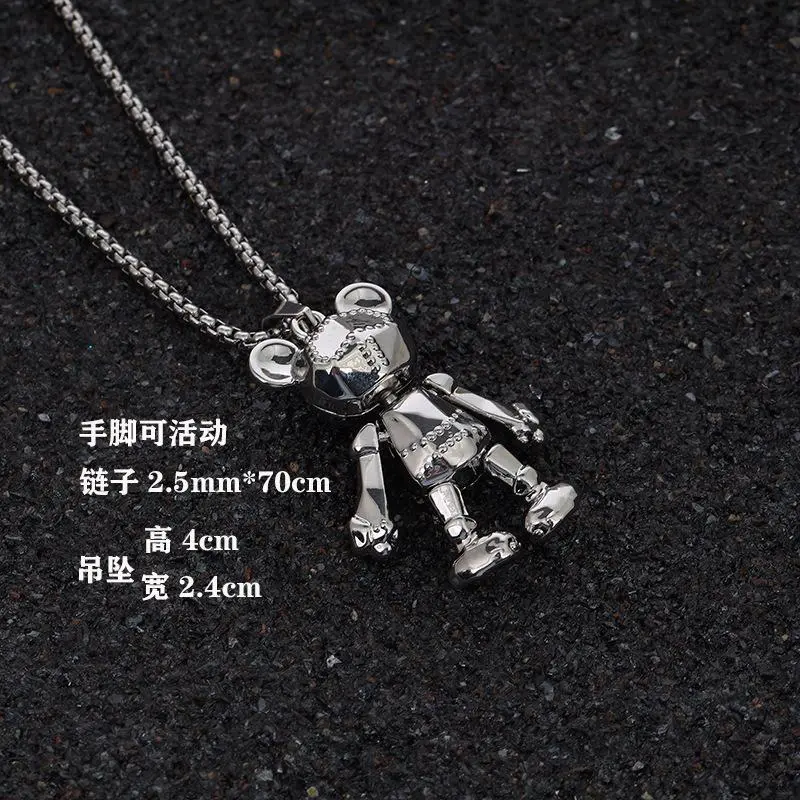 潮流四肢可活动小熊项链男潮嘻哈朋克长款百搭毛衣链网红吊坠配饰