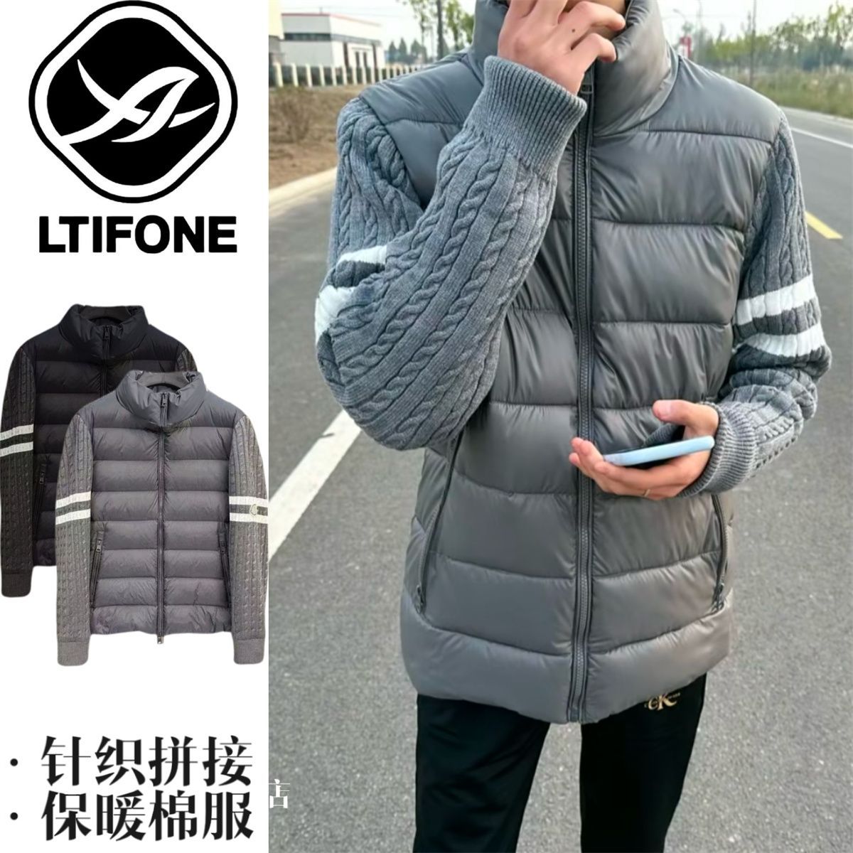 针织拼接爆款排骨棉服立领男士冬季保暖新款休闲情侣棉衣短款外套