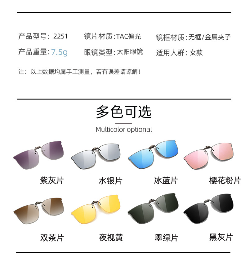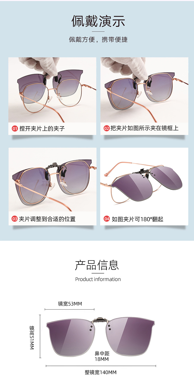 高级感夹片墨镜GM同款超轻时尚偏光太阳镜可上翻防紫外线墨镜夹片