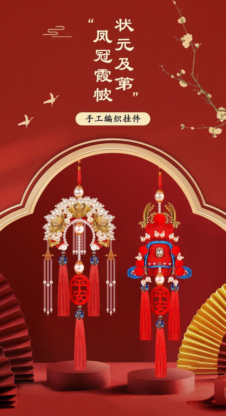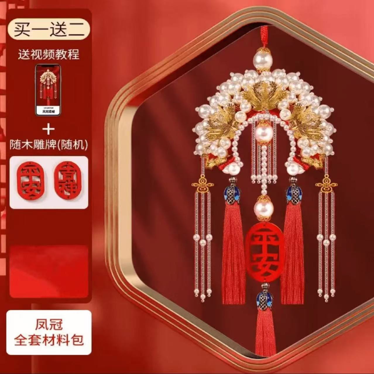 凤冠车挂件情人节送男友礼物手工diy材料包车内挂饰车载挂件装饰
