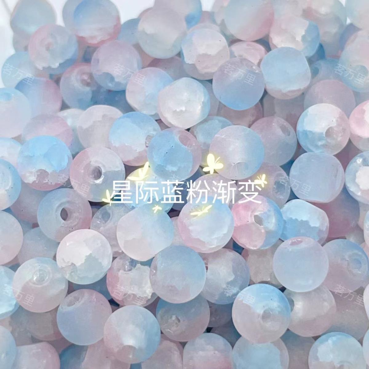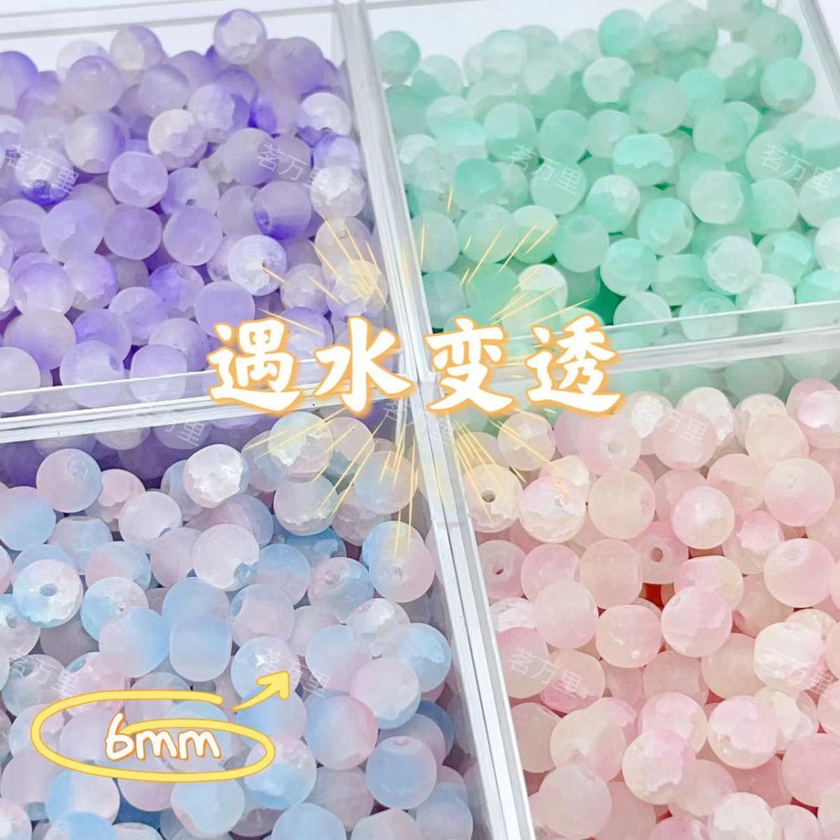 6mm 遇水变透渐变款磨砂珠子手工编织DIY串珠琉璃玻璃珠制作材料