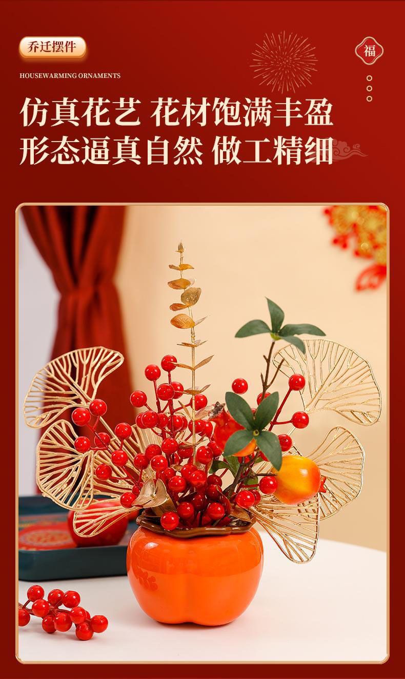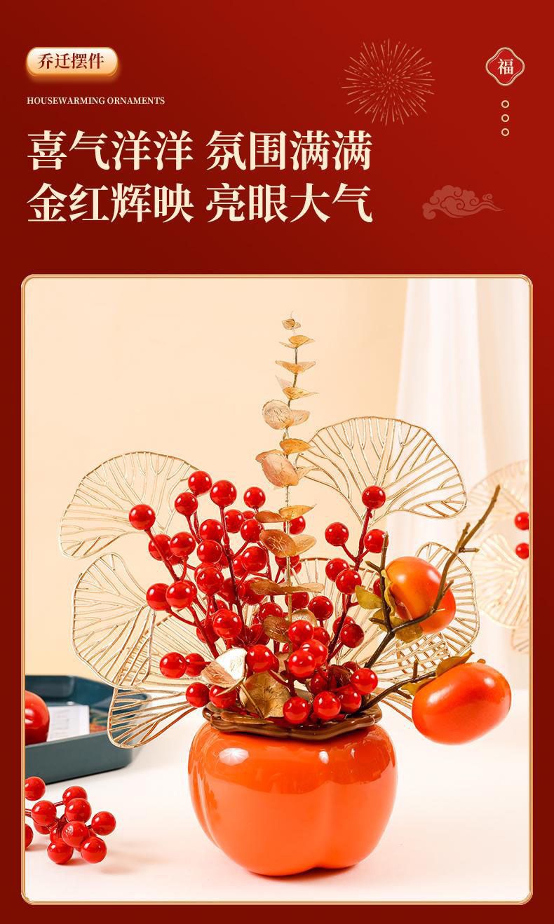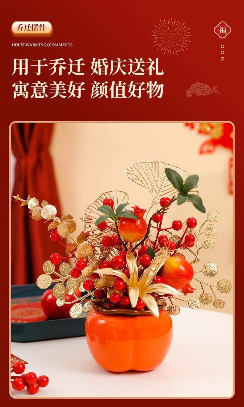 柿柿如意乔迁之喜装饰品客厅新年柿子新居摆件搬家喜庆摆件小摆件