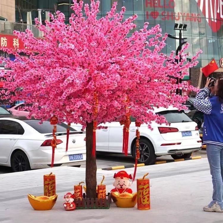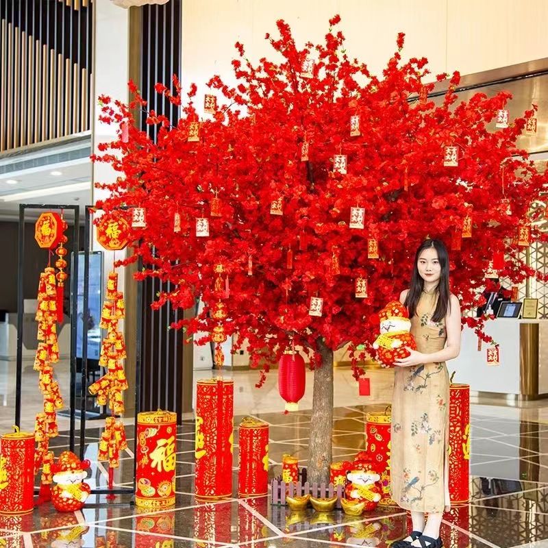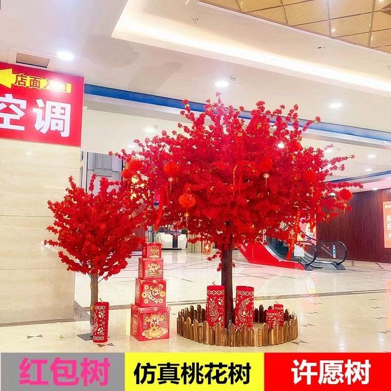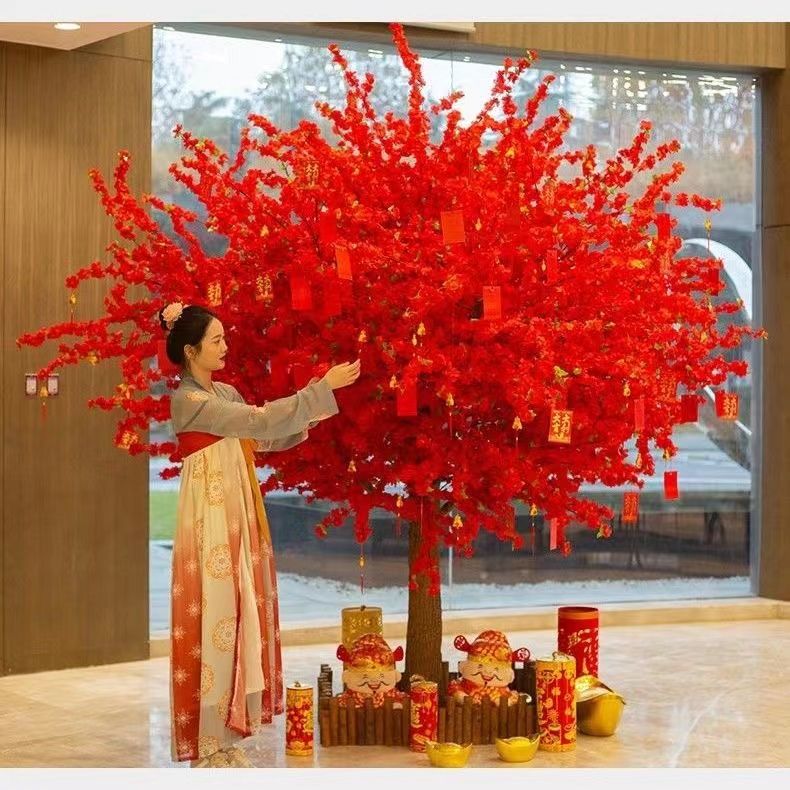 仿真红桃花春节装饰商场酒店室内外婚庆民宿国风圣诞树客厅落地