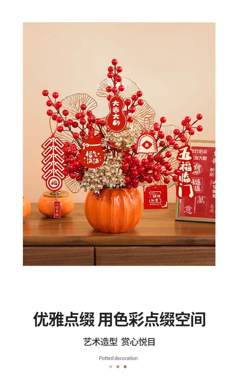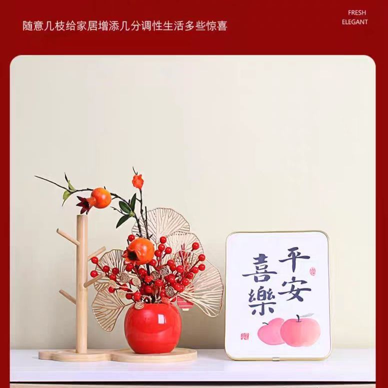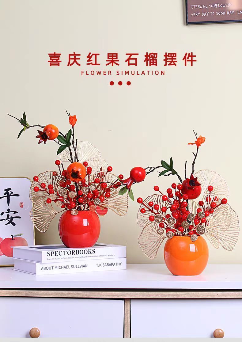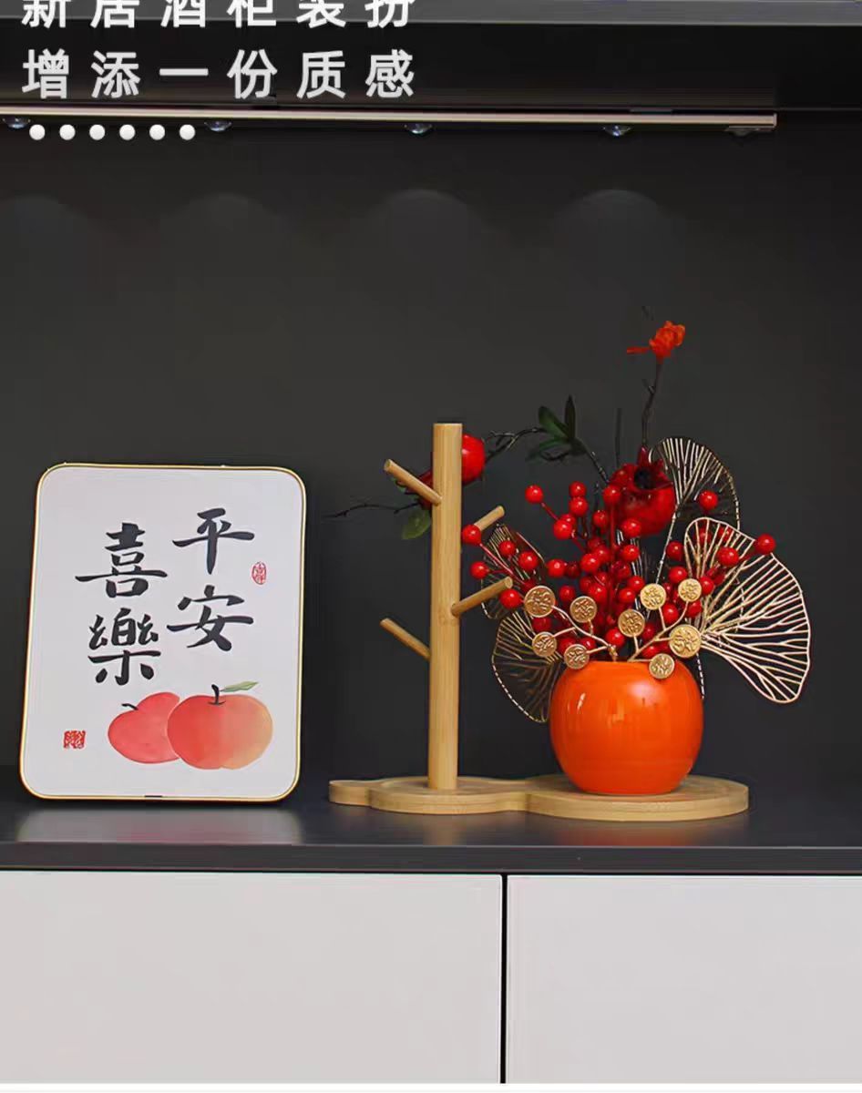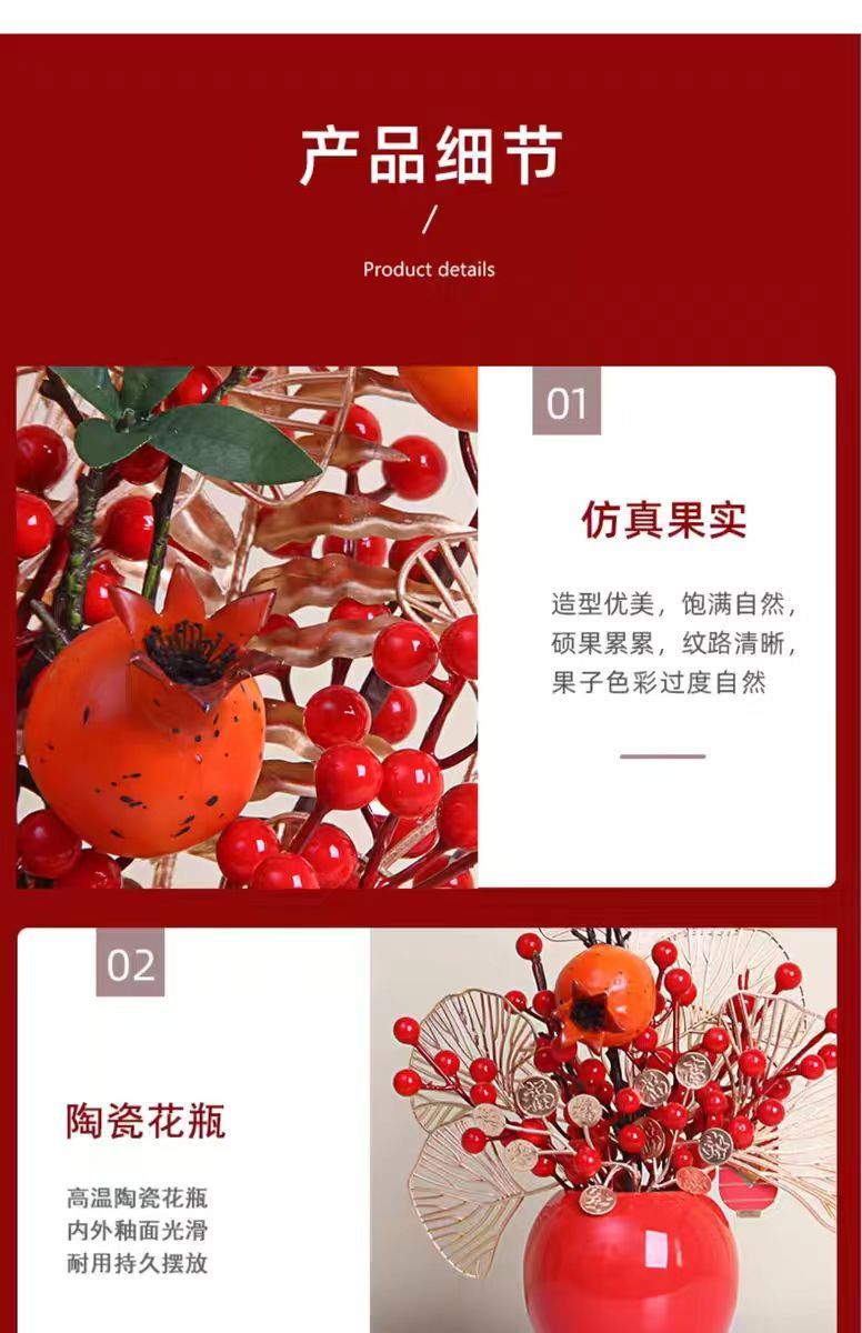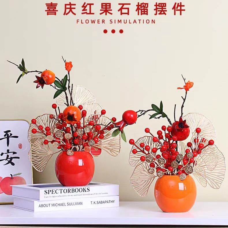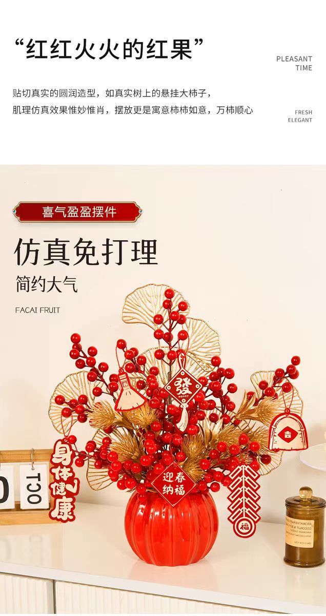 柿柿红果发财乔迁新年装饰喜庆装饰品布玄关客厅年宵摆件过年年货