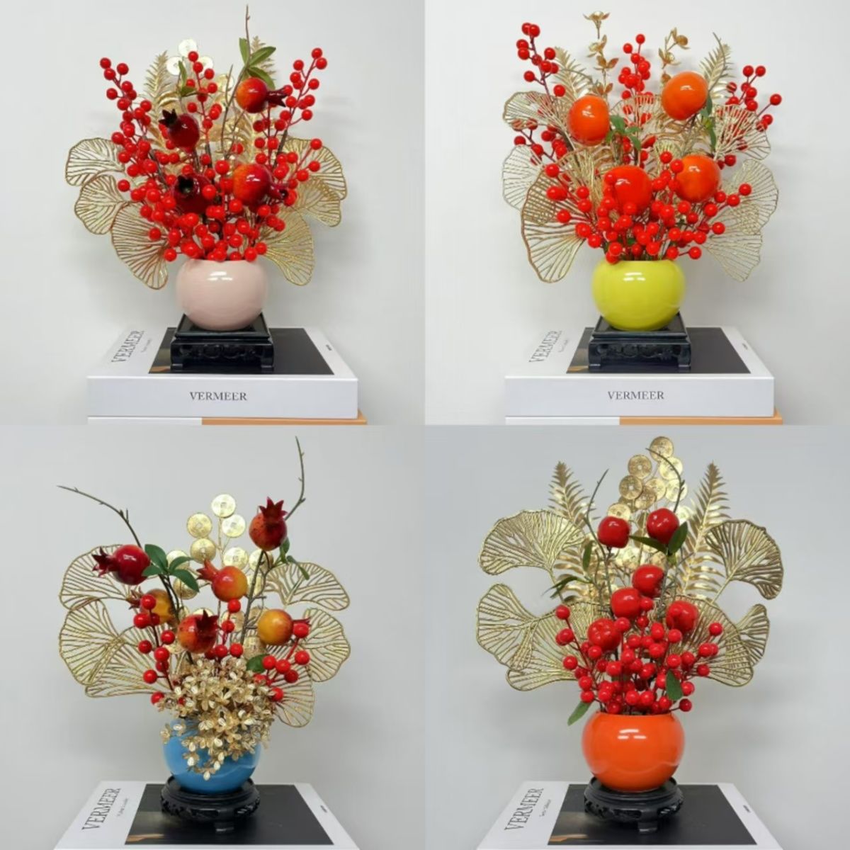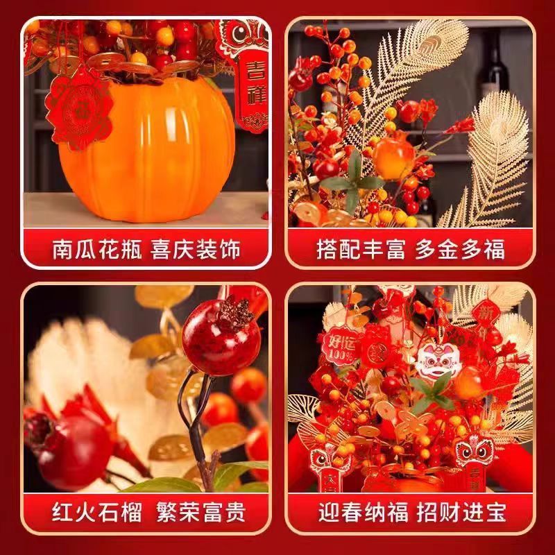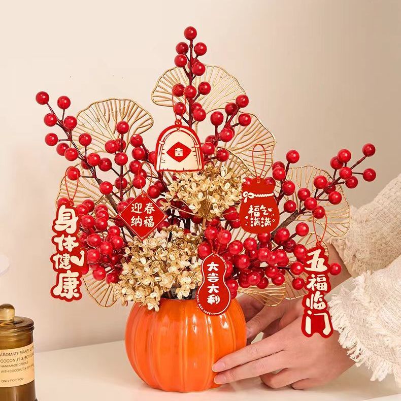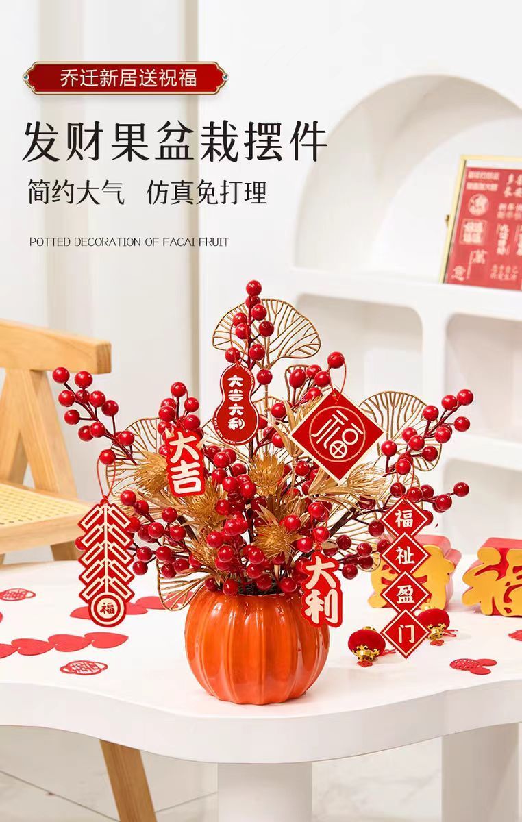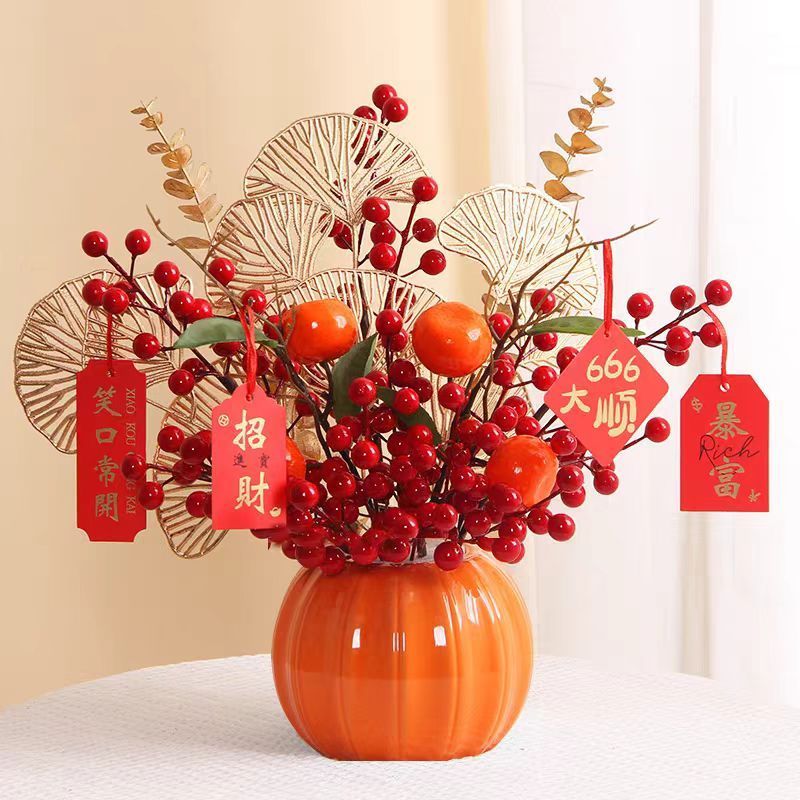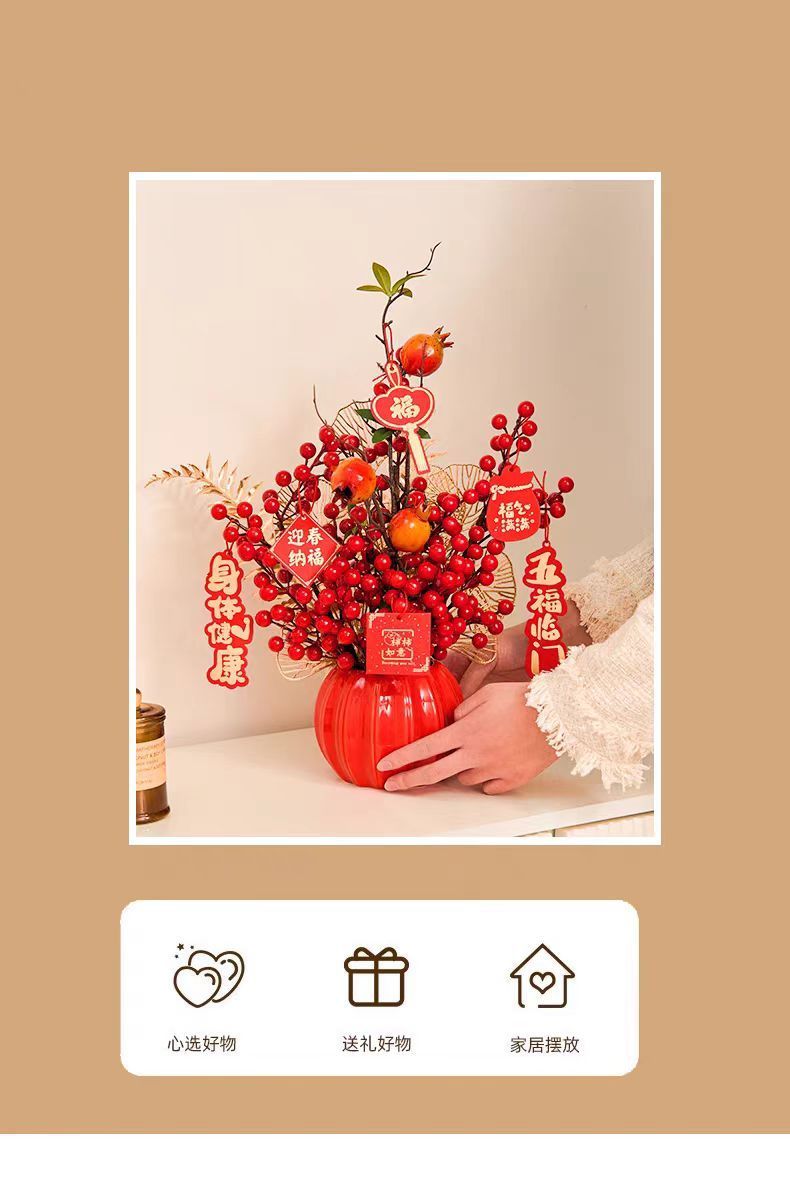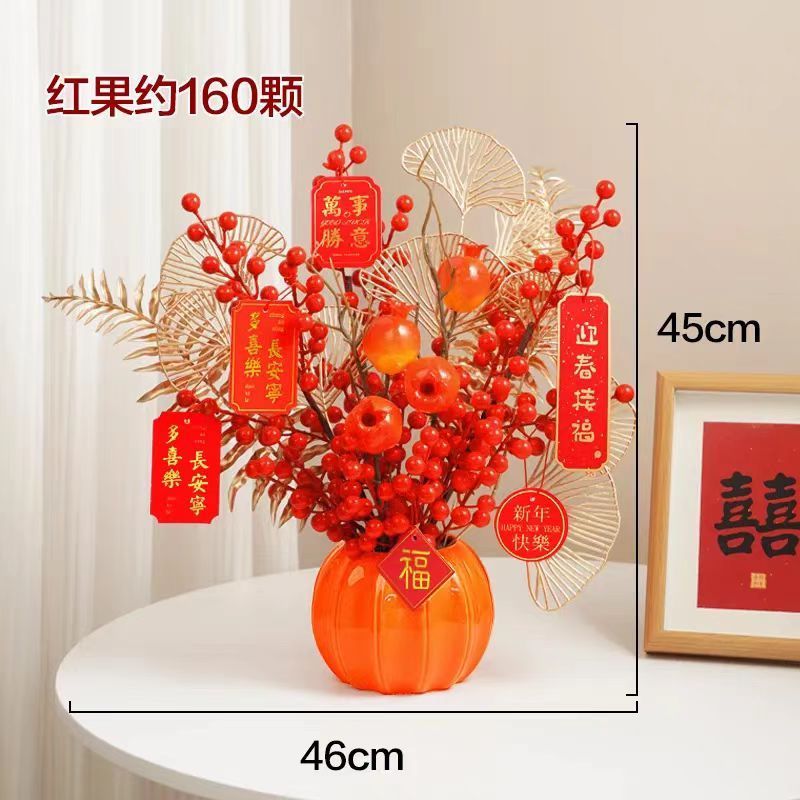 柿柿红果发财乔迁新年装饰喜庆装饰品布玄关客厅年宵摆件过年年货