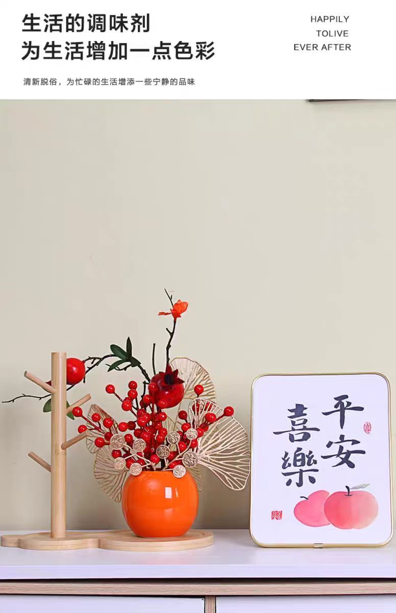 | selected persimmon ceramic bottle + fortune fruit + purpleflower holly leaf leaves + free lucky card(精选柿子陶瓷瓶+发财果+四季青叶子+送福卡) | USD $2.98 | 999999 piece available |