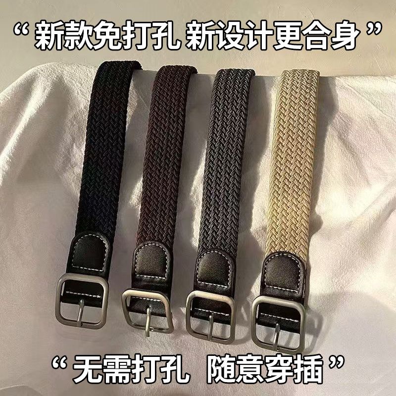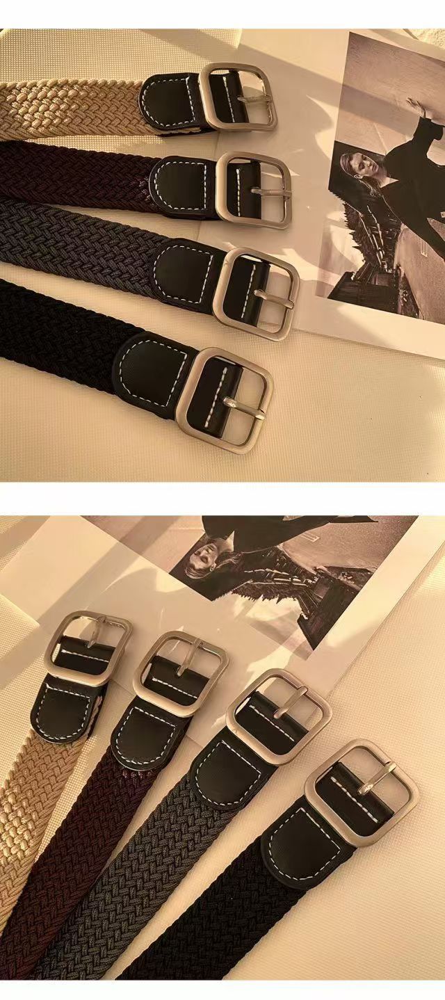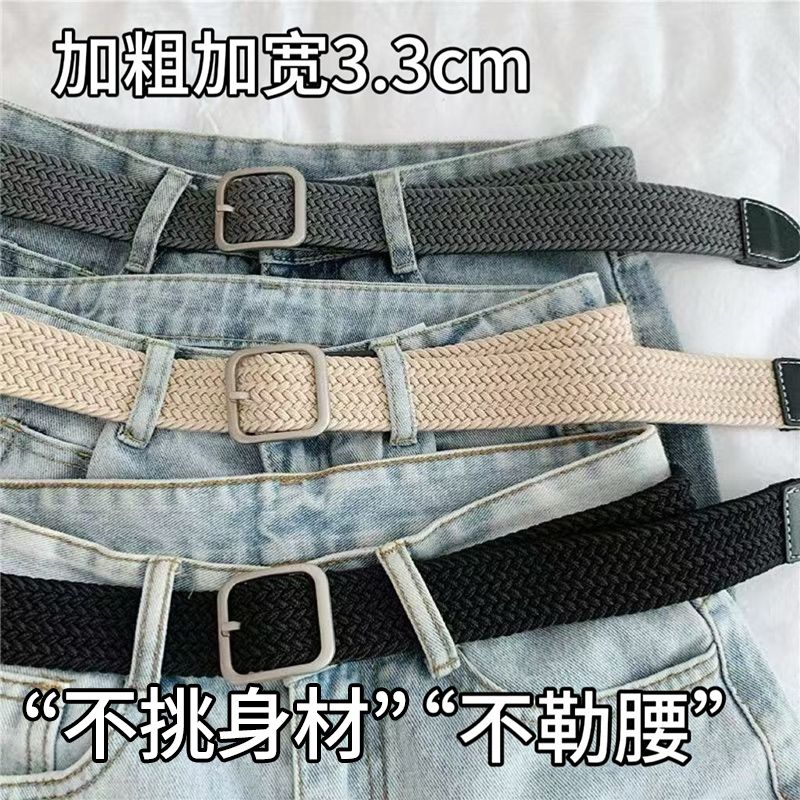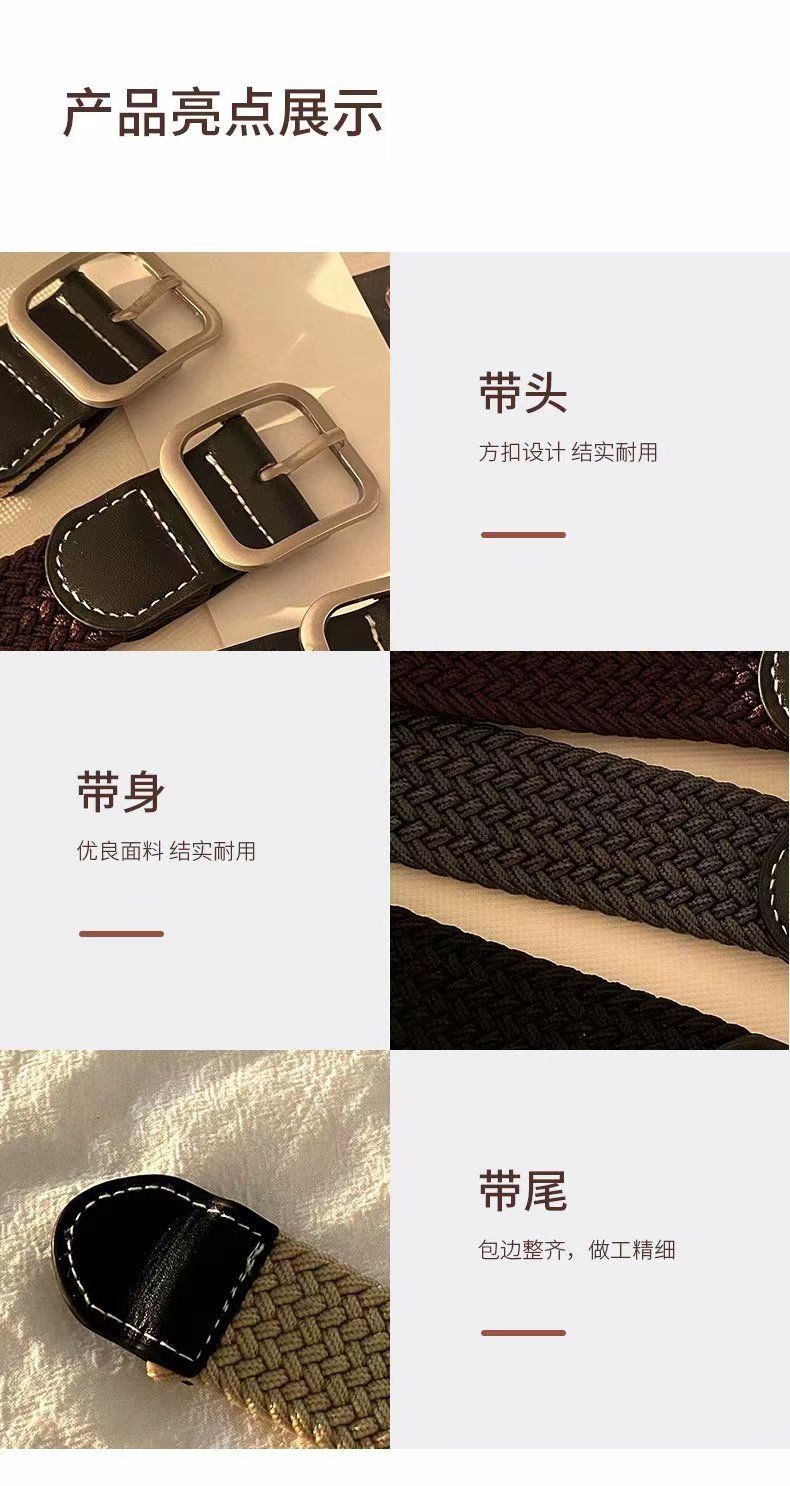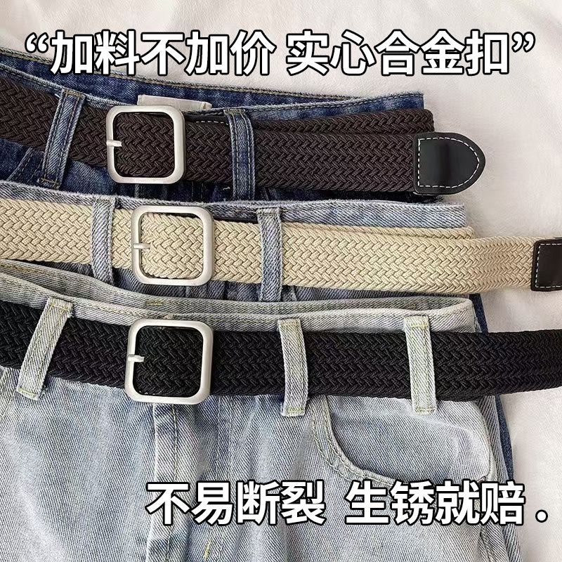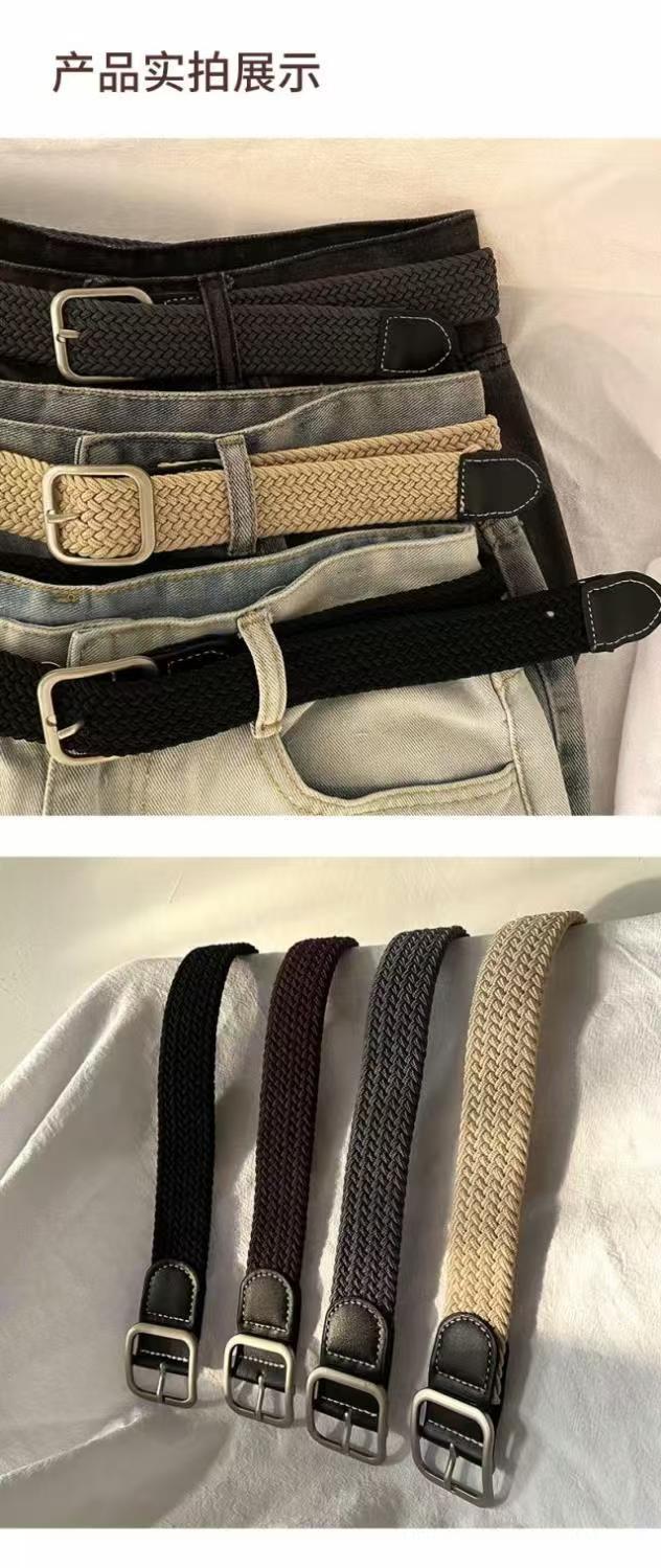港风ins复古帆布皮带男韩版潮流时尚休闲学生百搭编织松紧裤腰带