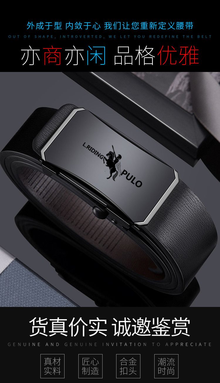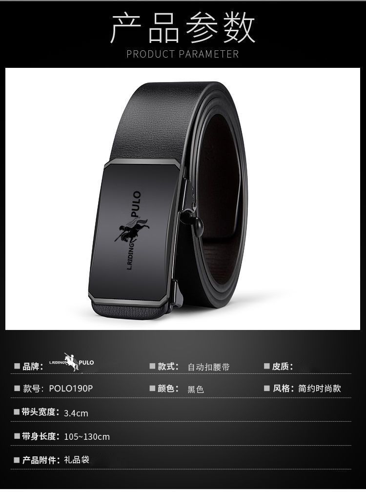保罗POLO皮带男士软皮自动扣腰带青年商务休闲百搭皮带裤腰带正品