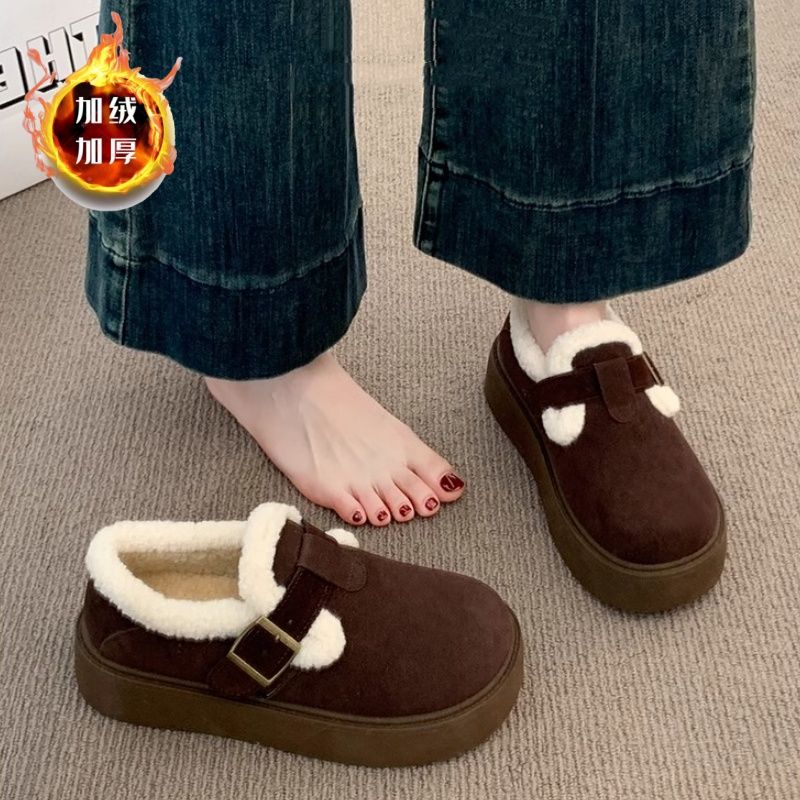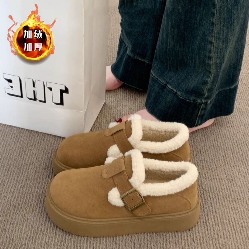 2024新款秋冬季加绒加厚豆豆勃肯鞋女乐福鞋博肯棉鞋子保暖雪地靴