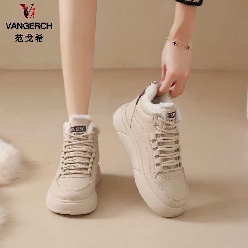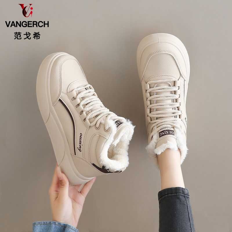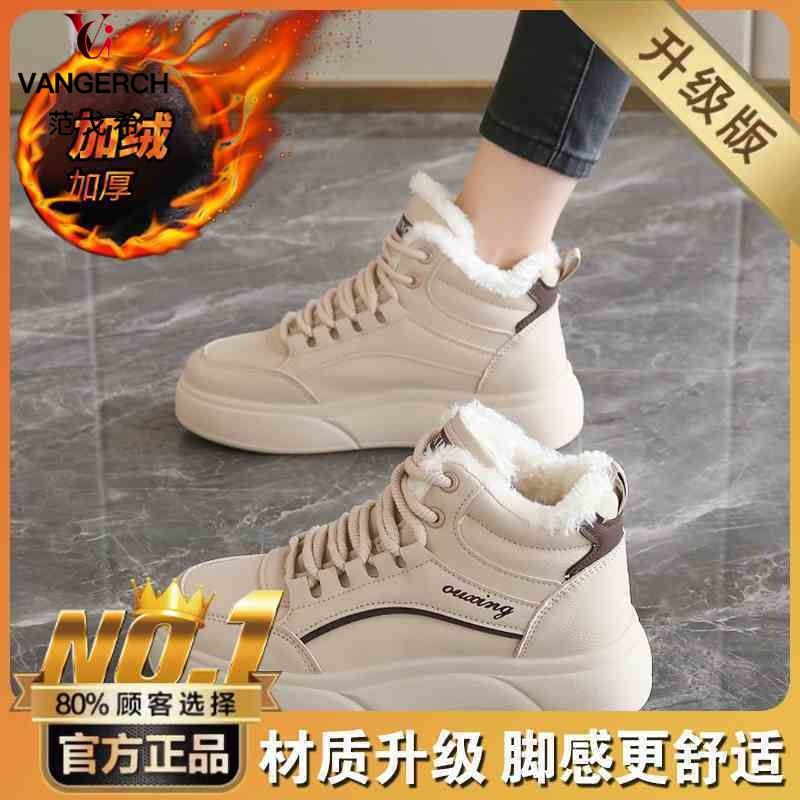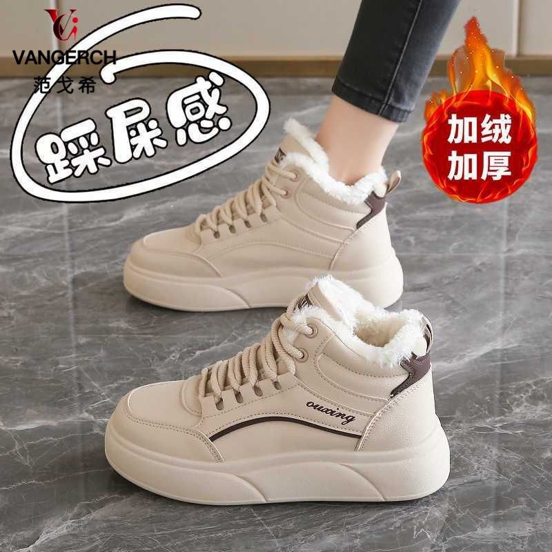 范戈希踩屎感高帮厚绒女冬季2025春新款百搭休闲防滑耐磨保暖潮鞋