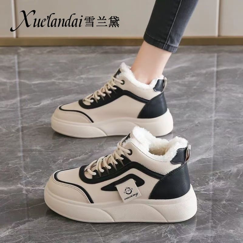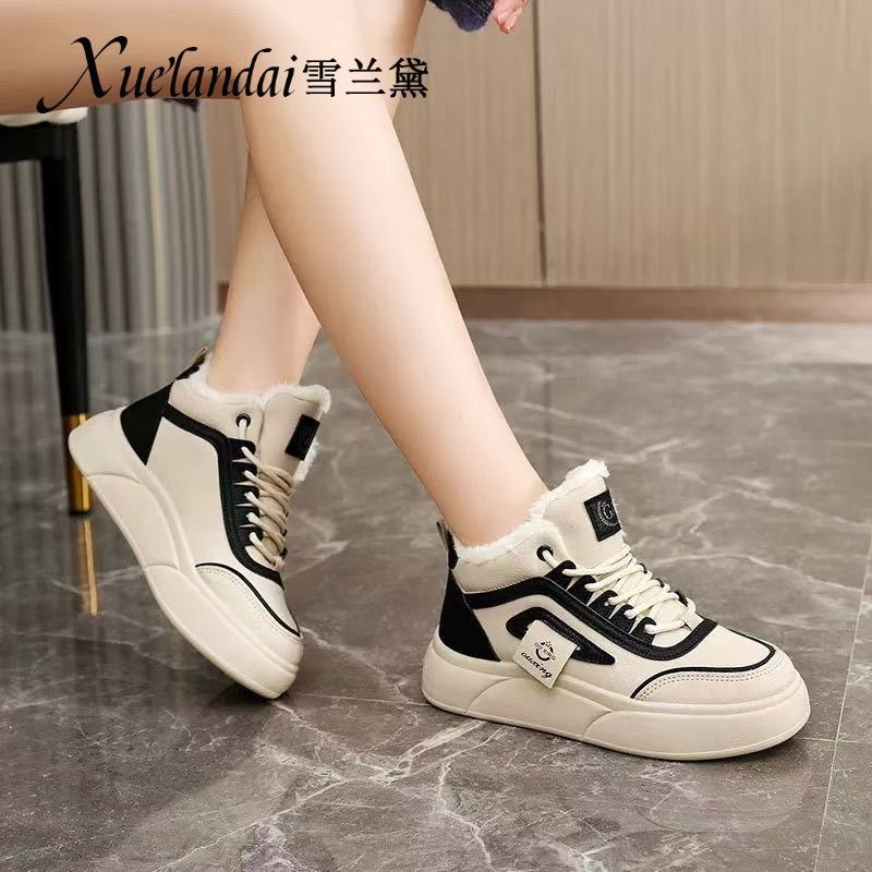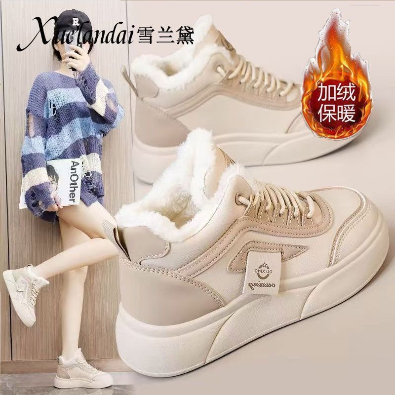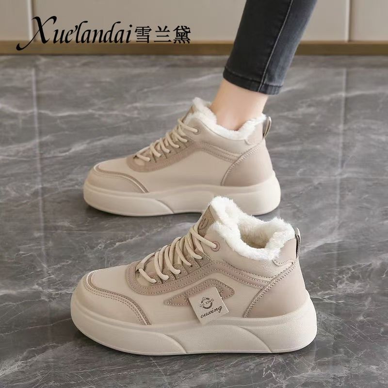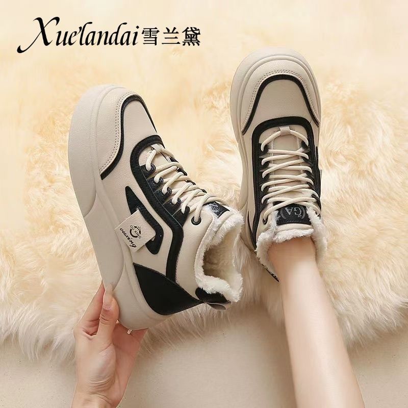 雪兰黛冬季高帮棉鞋女2024年新款雪地靴加绒加厚保暖学生百搭女鞋