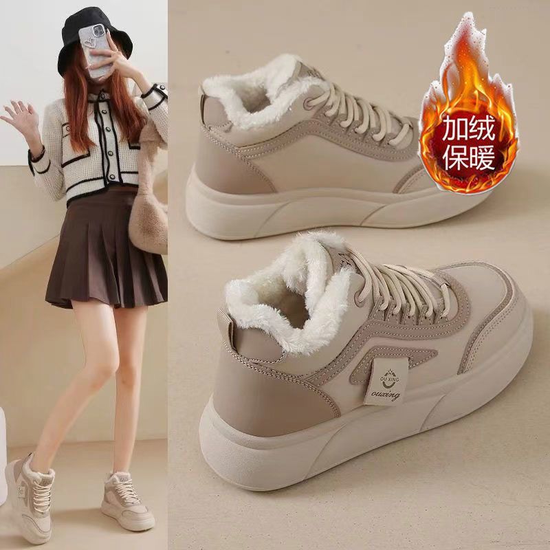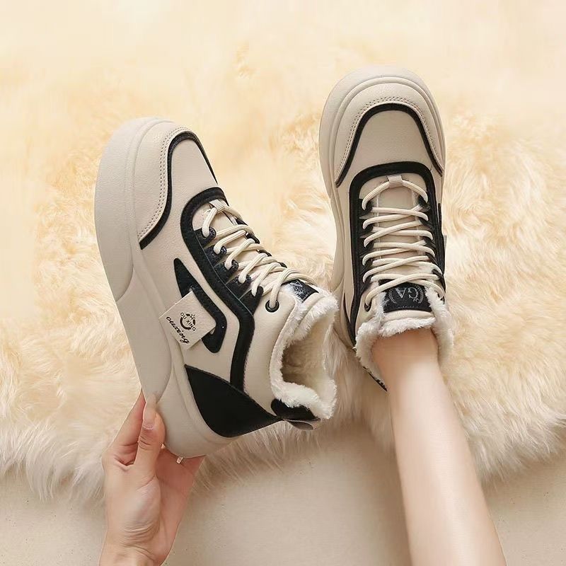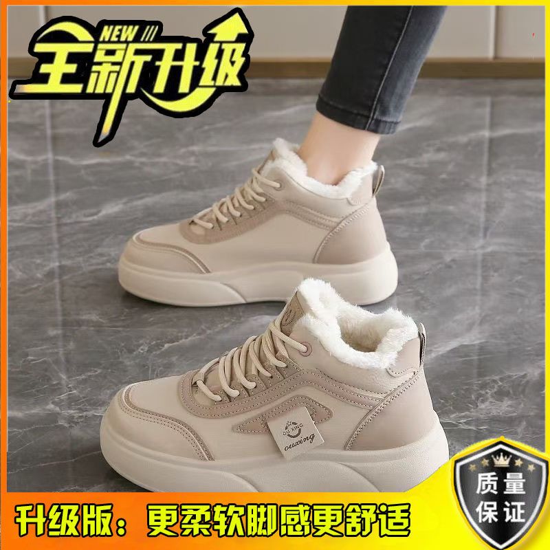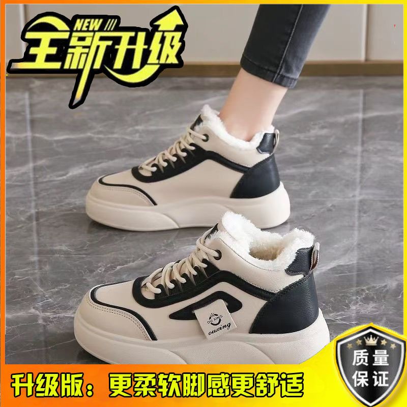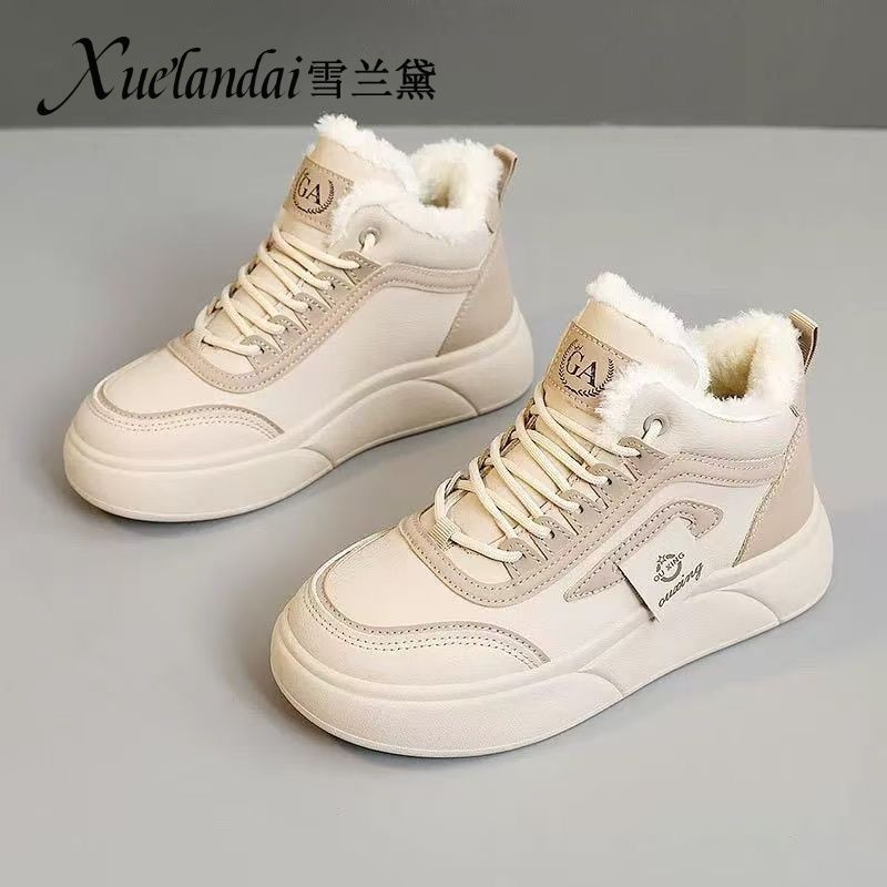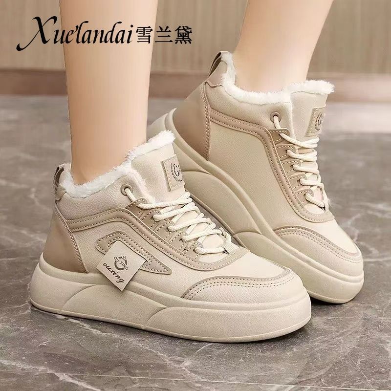 雪兰黛冬季高帮棉鞋女2024年新款雪地靴加绒加厚保暖学生百搭女鞋