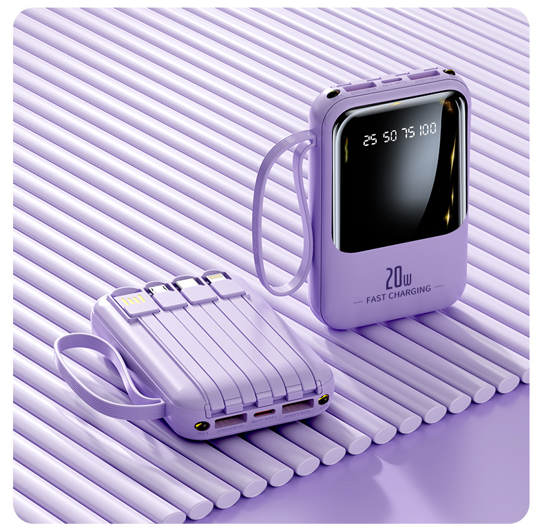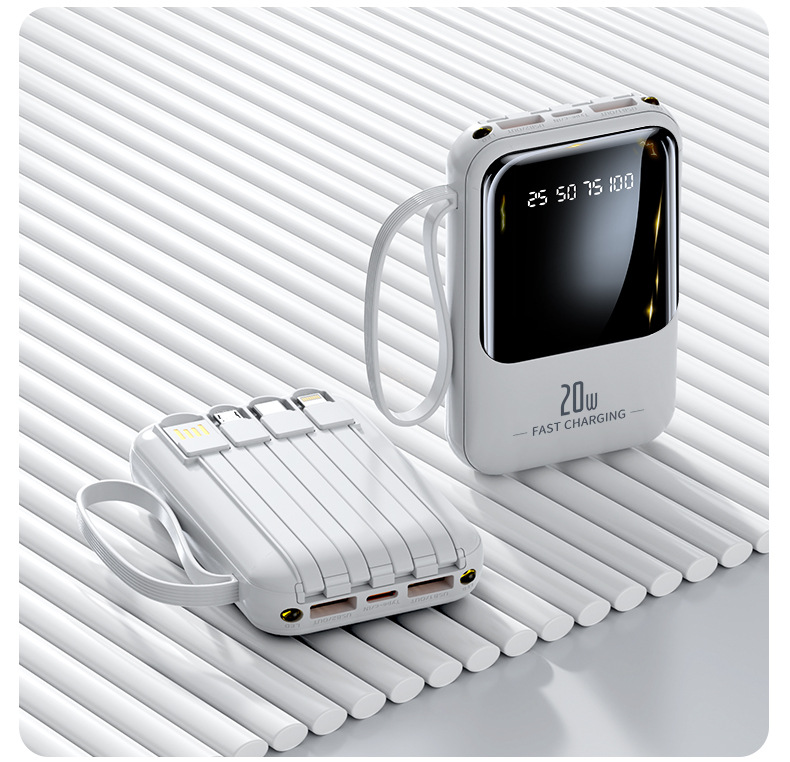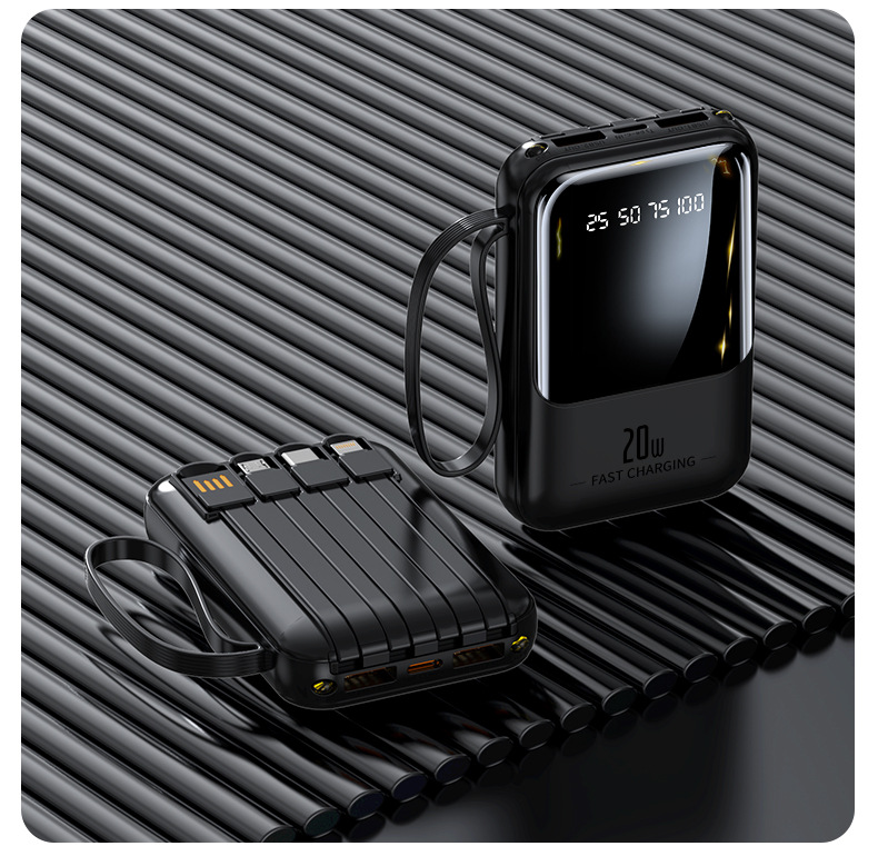 批发自带线充电宝迷你20000毫安大容量快充移动电源礼品印制LOGO