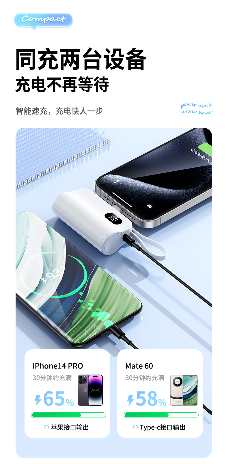 新款口袋胶囊充电宝5000毫安迷你小巧便携手机户外移动电源礼品