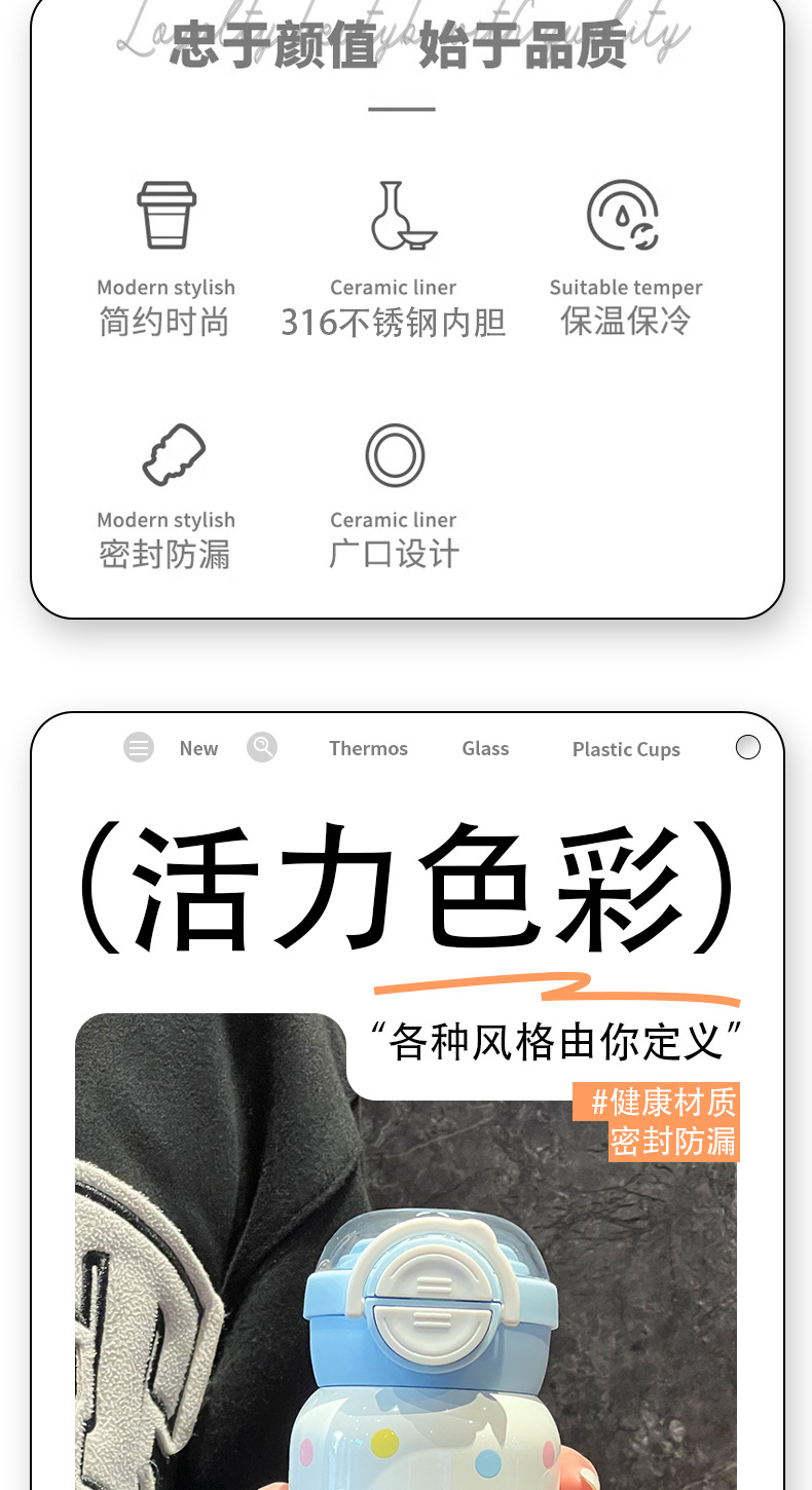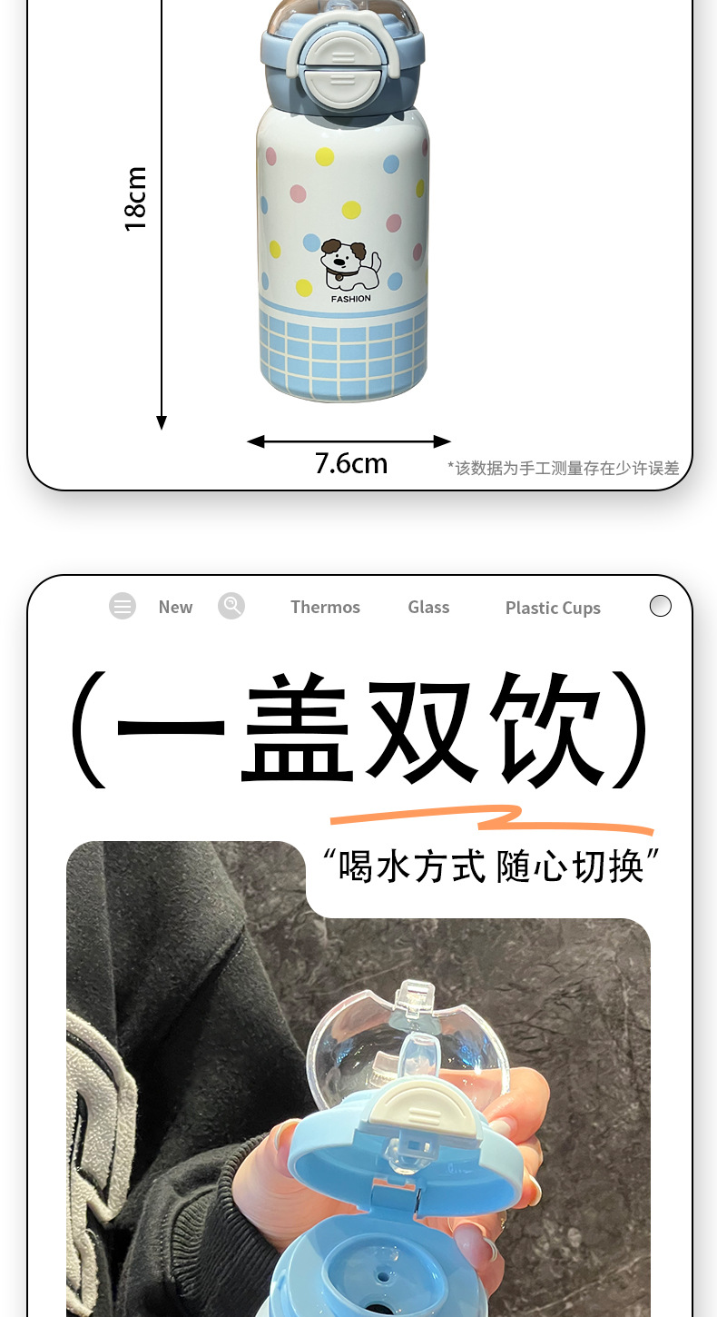 大容量保温杯女儿童吸管杯高颜值不锈钢水壶小学生上学专用水杯