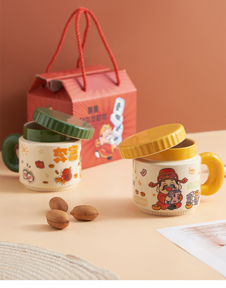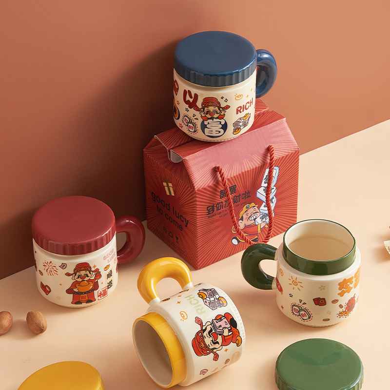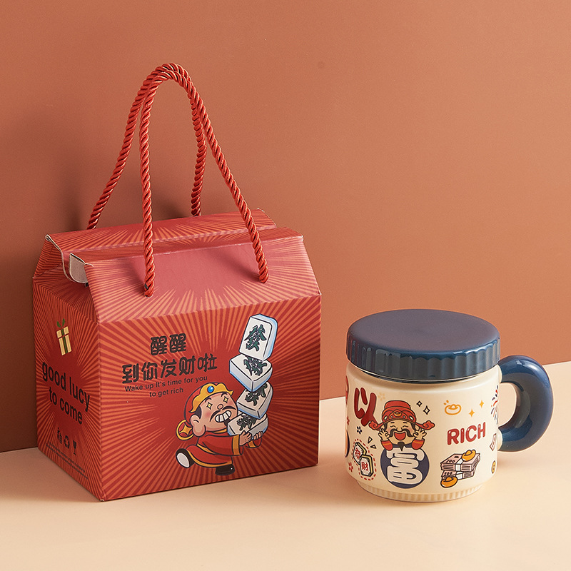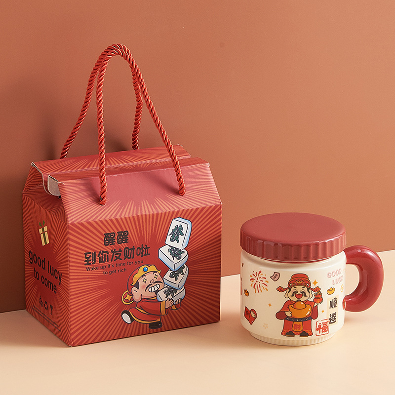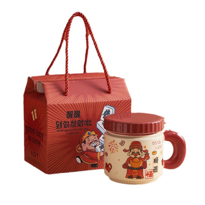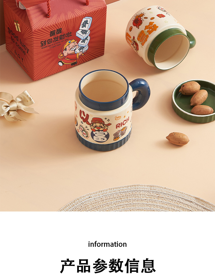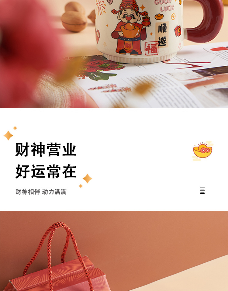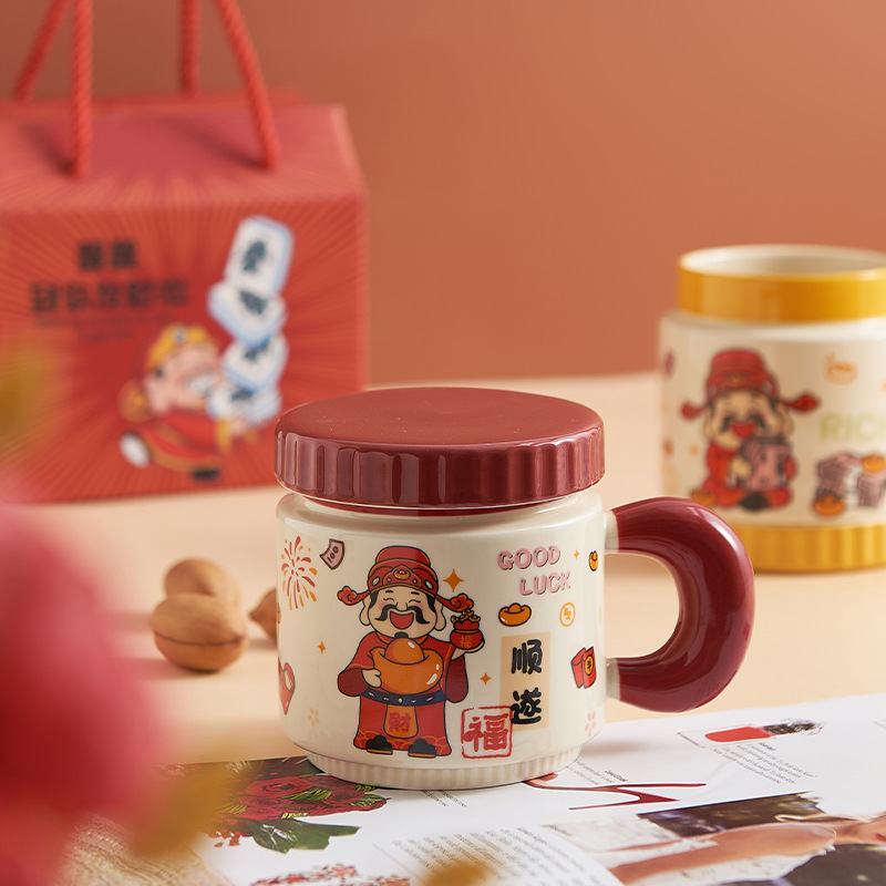 新年小礼品陶瓷马克杯卡通财神爷杯子开业活动伴手礼品水杯印logo