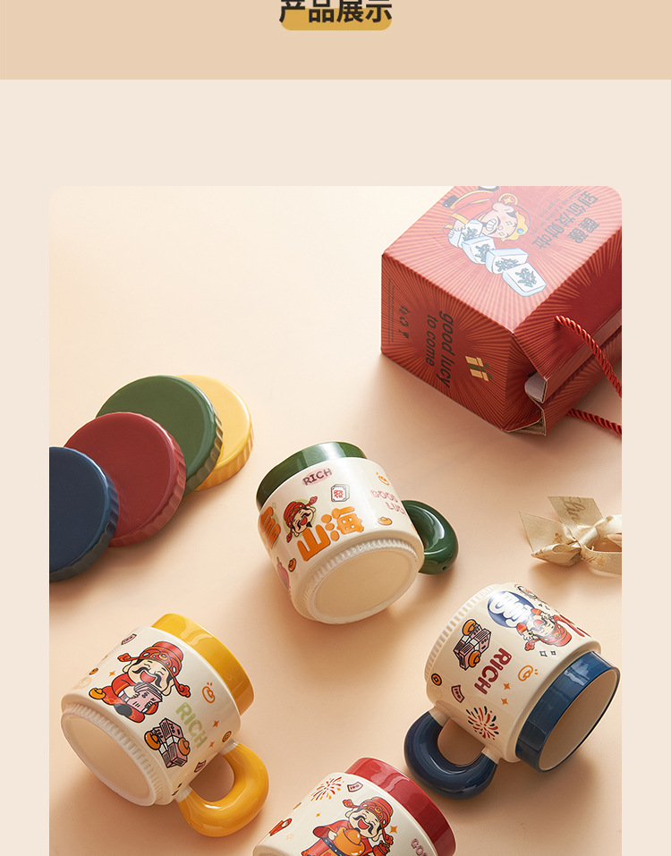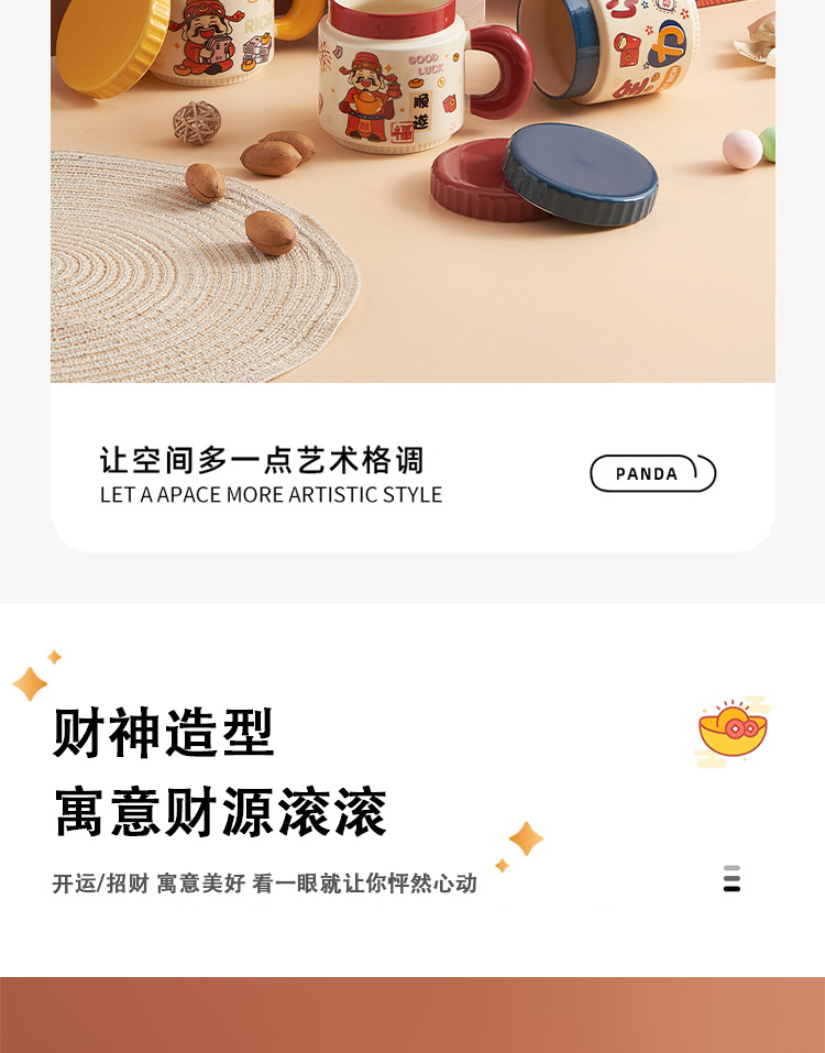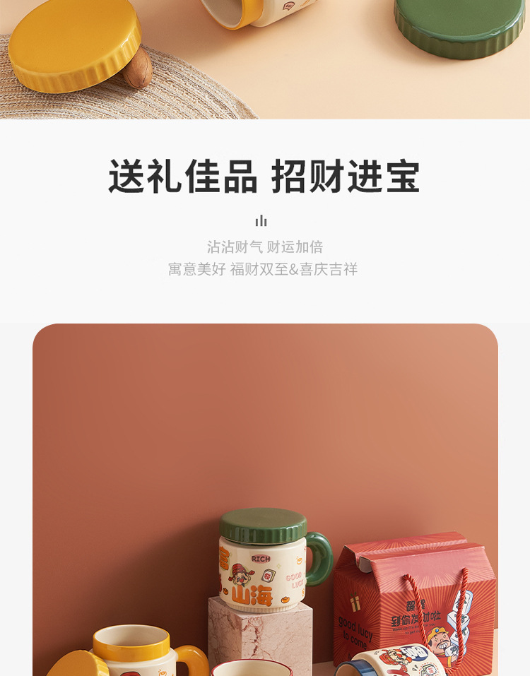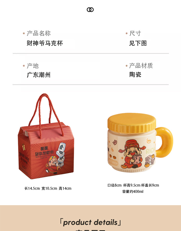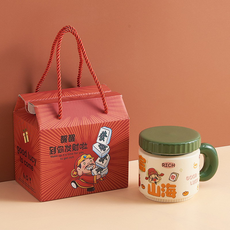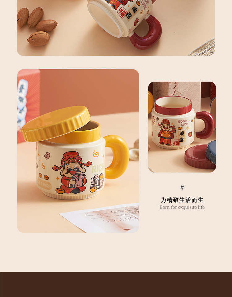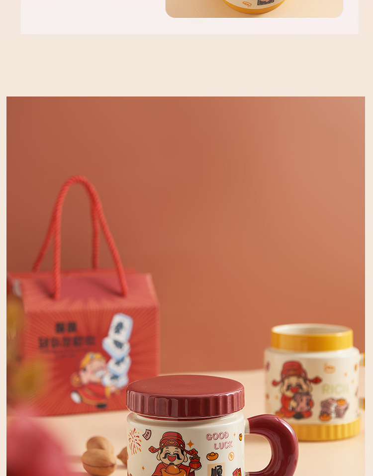 新年小礼品陶瓷马克杯卡通财神爷杯子开业活动伴手礼品水杯印logo