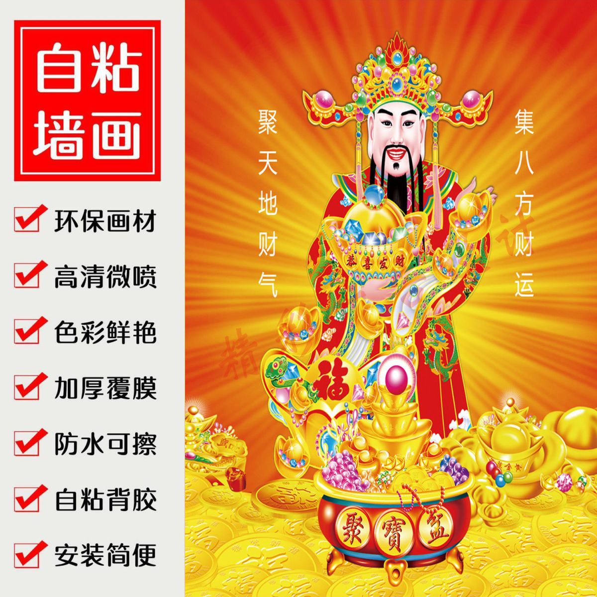 新款财神爷新款财源广进财神到海报中堂画年画装饰画墙贴壁画自粘