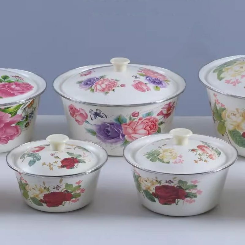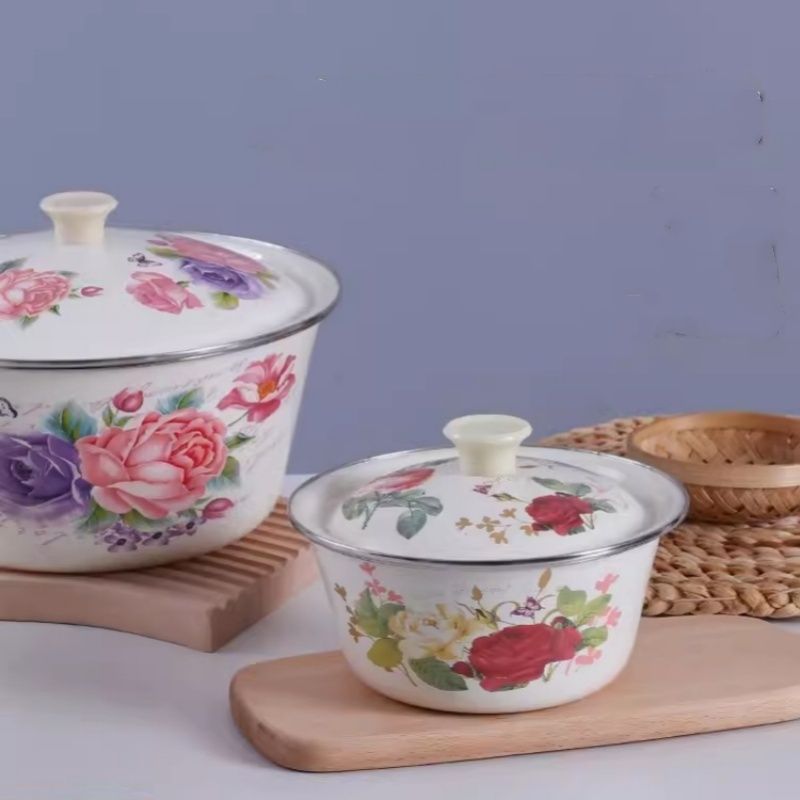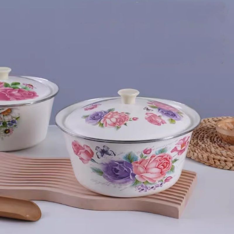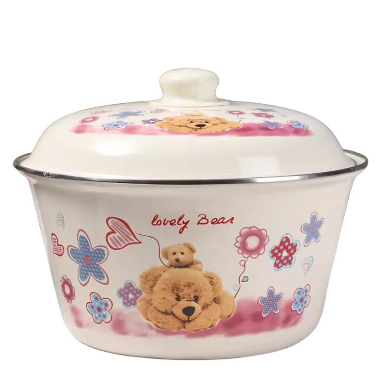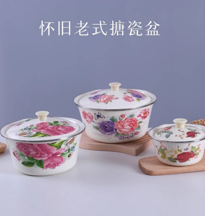 加厚14-30cm搪瓷盖盆带盖猪油碗盆饺子馅料盆火锅麻辣烫煎药碗盆