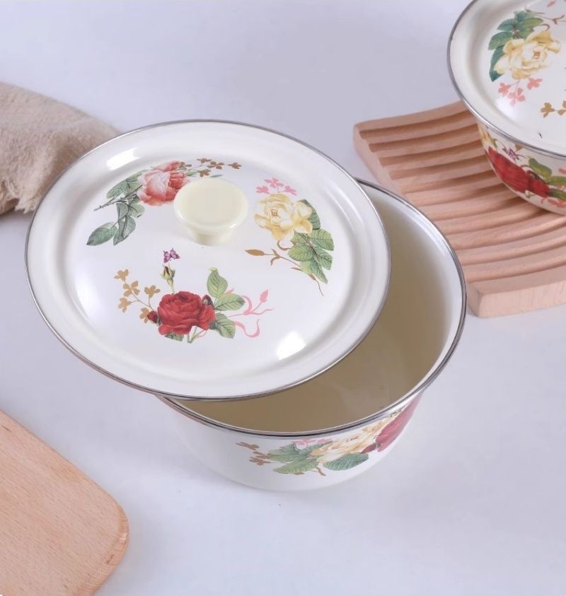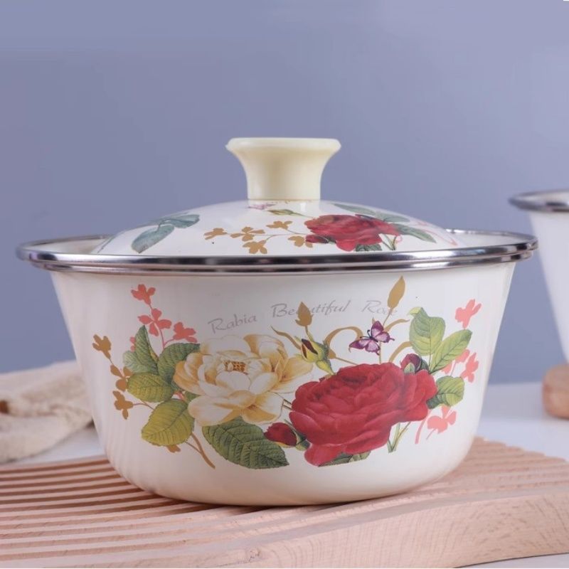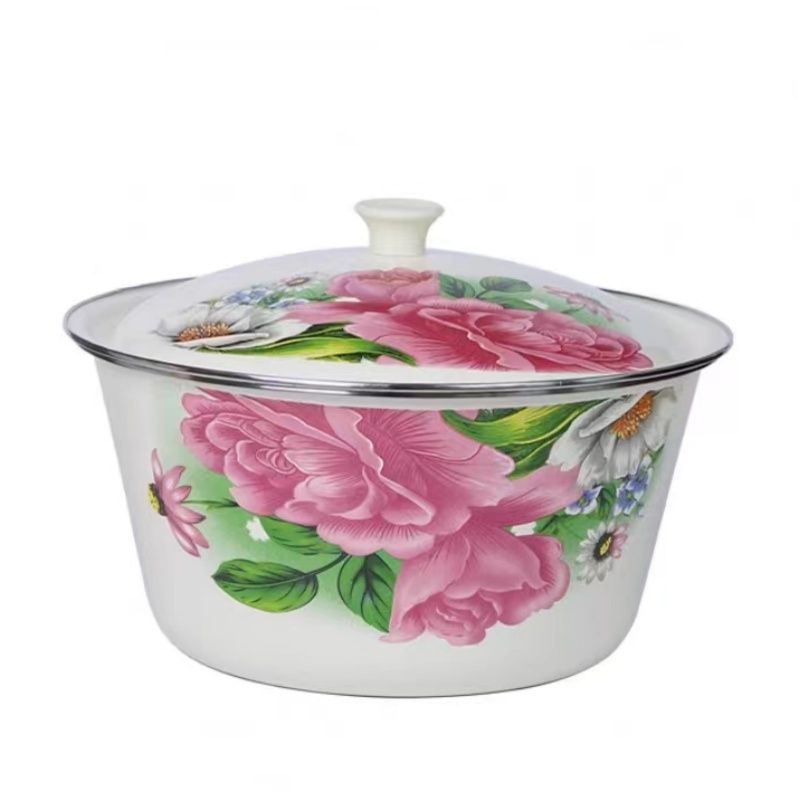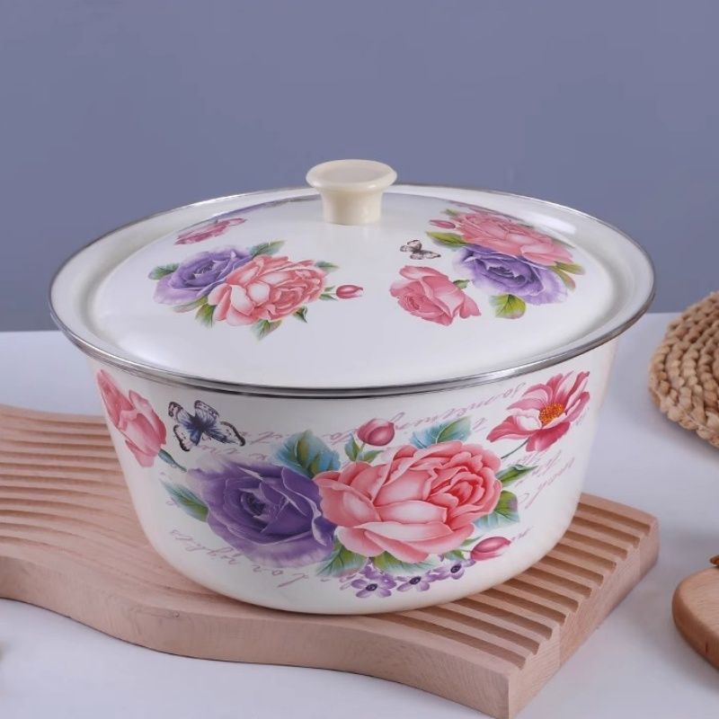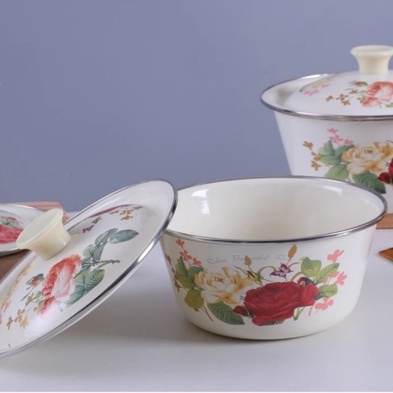 加厚14-30cm搪瓷盖盆带盖猪油碗盆饺子馅料盆火锅麻辣烫煎药碗盆