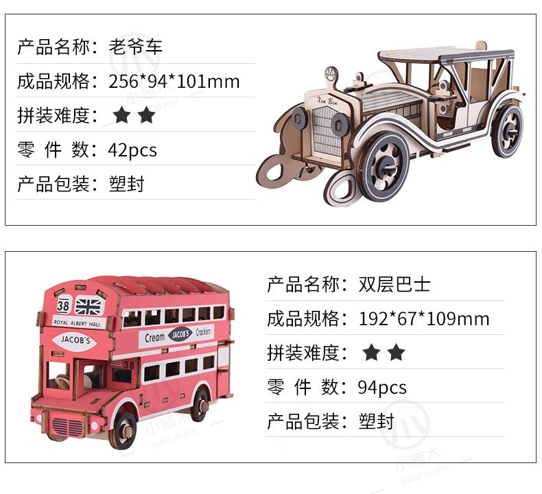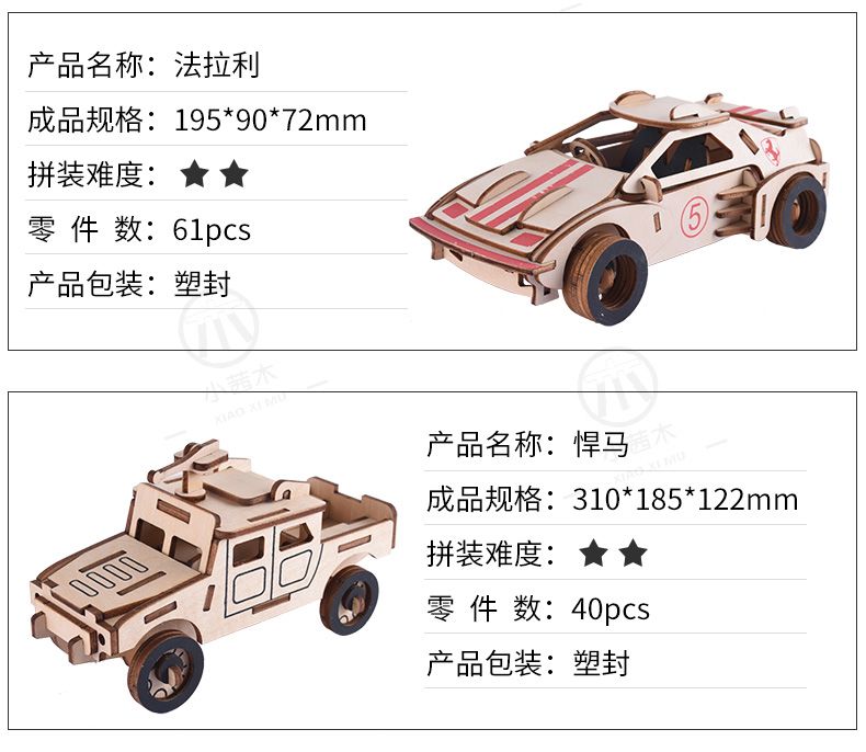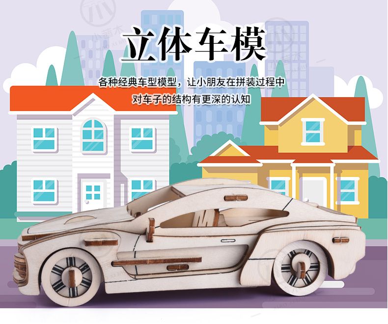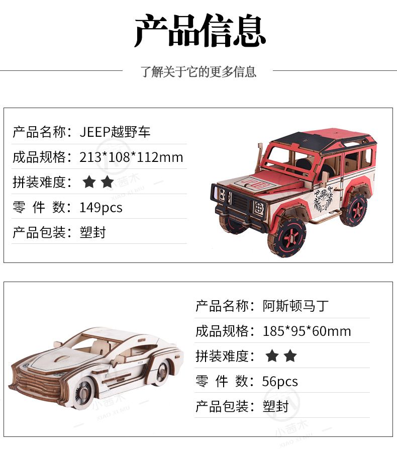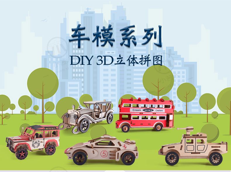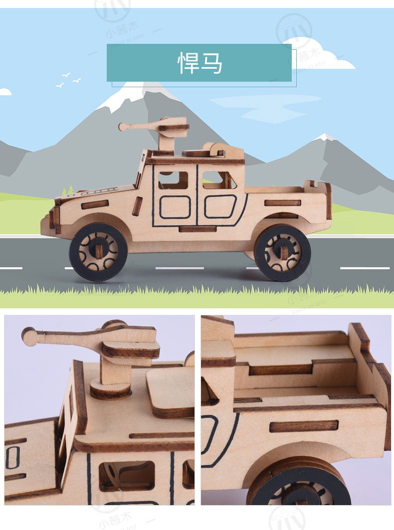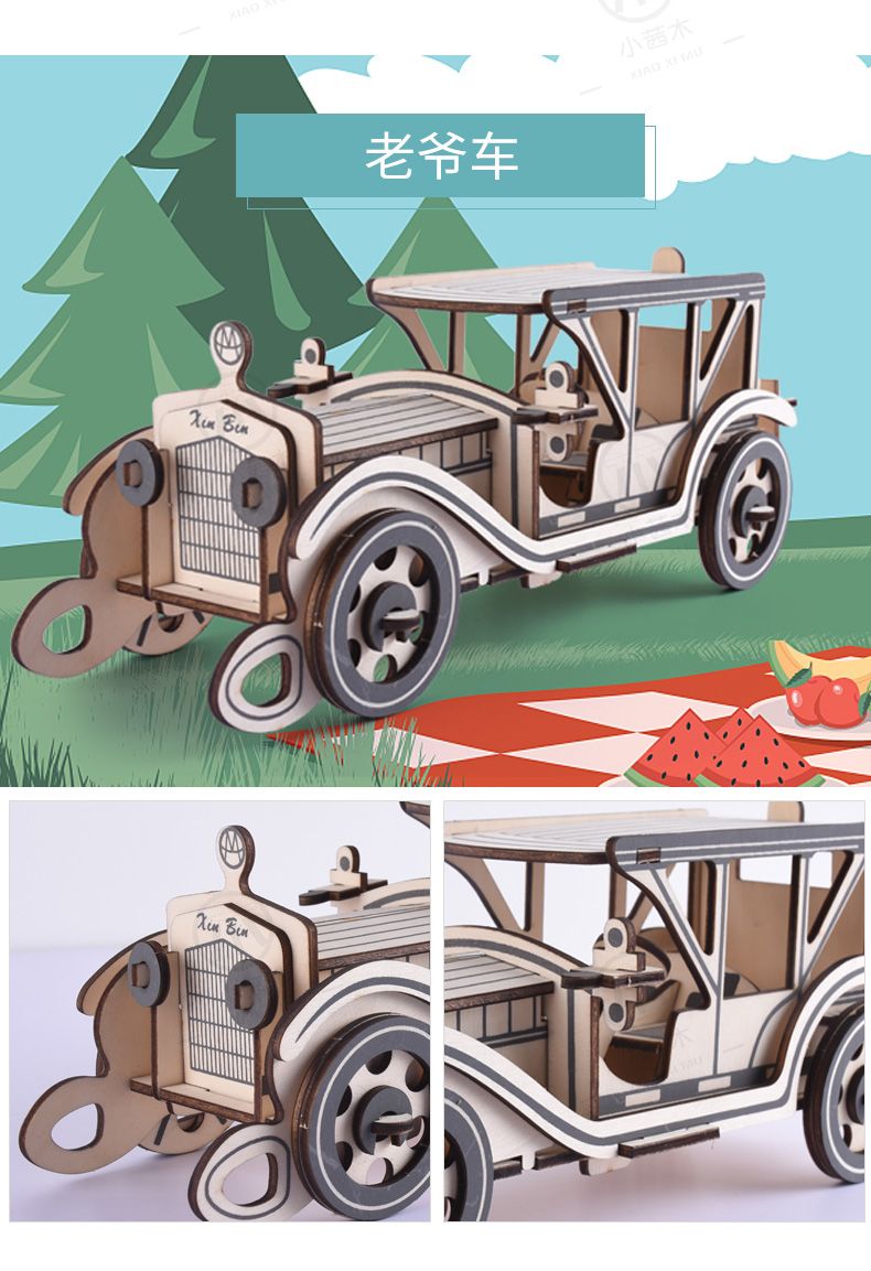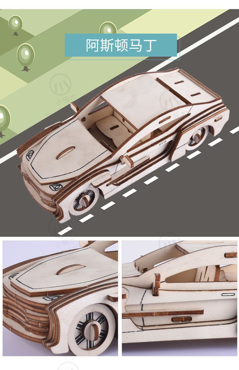 木质3D立体拼图 激光汽车交通模型木制男孩益智玩具DIY手工拼装模