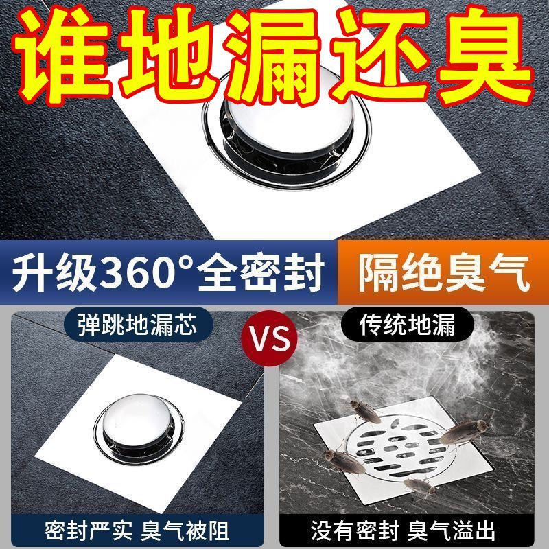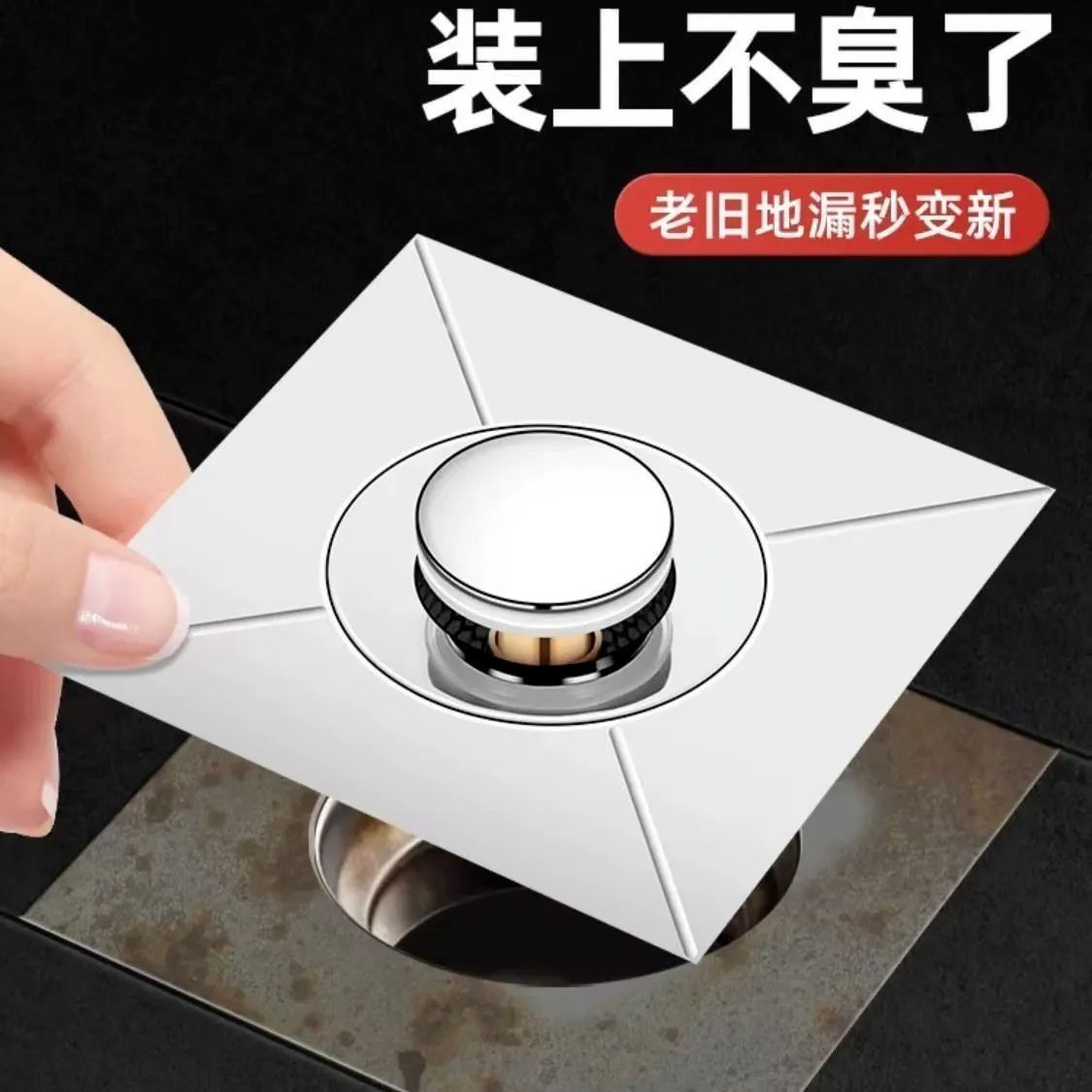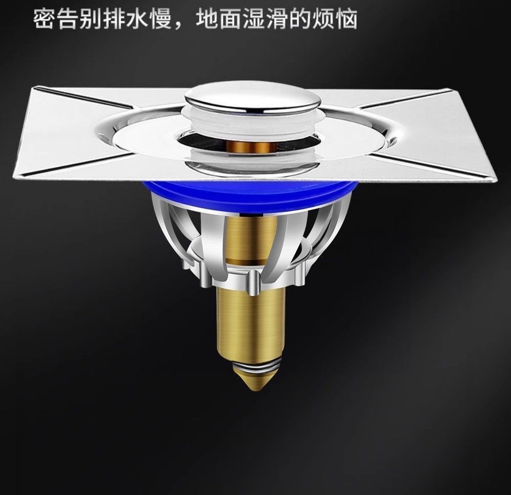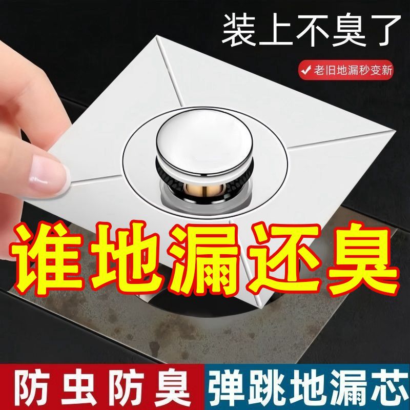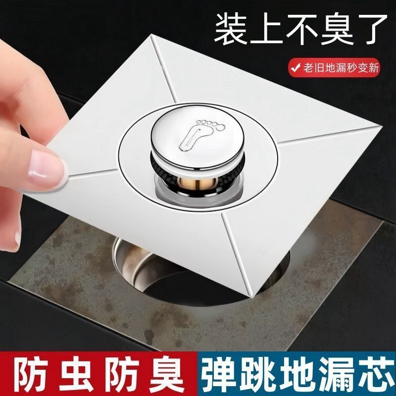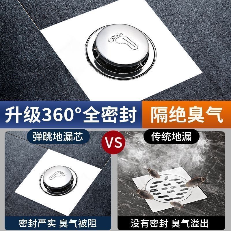 卫生间通用地漏防虫防臭不锈钢防反水下水道厕所按压式弹跳芯底座