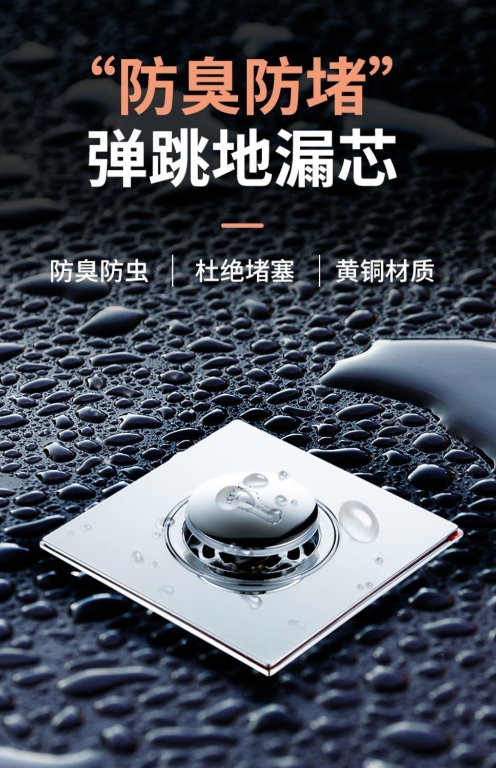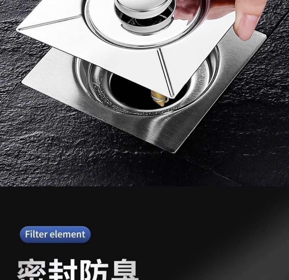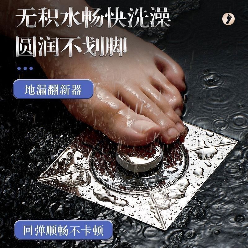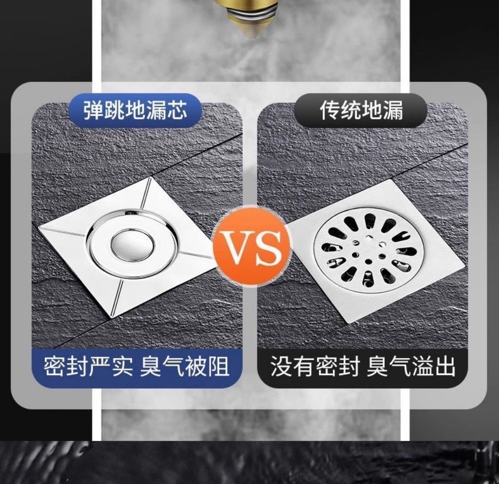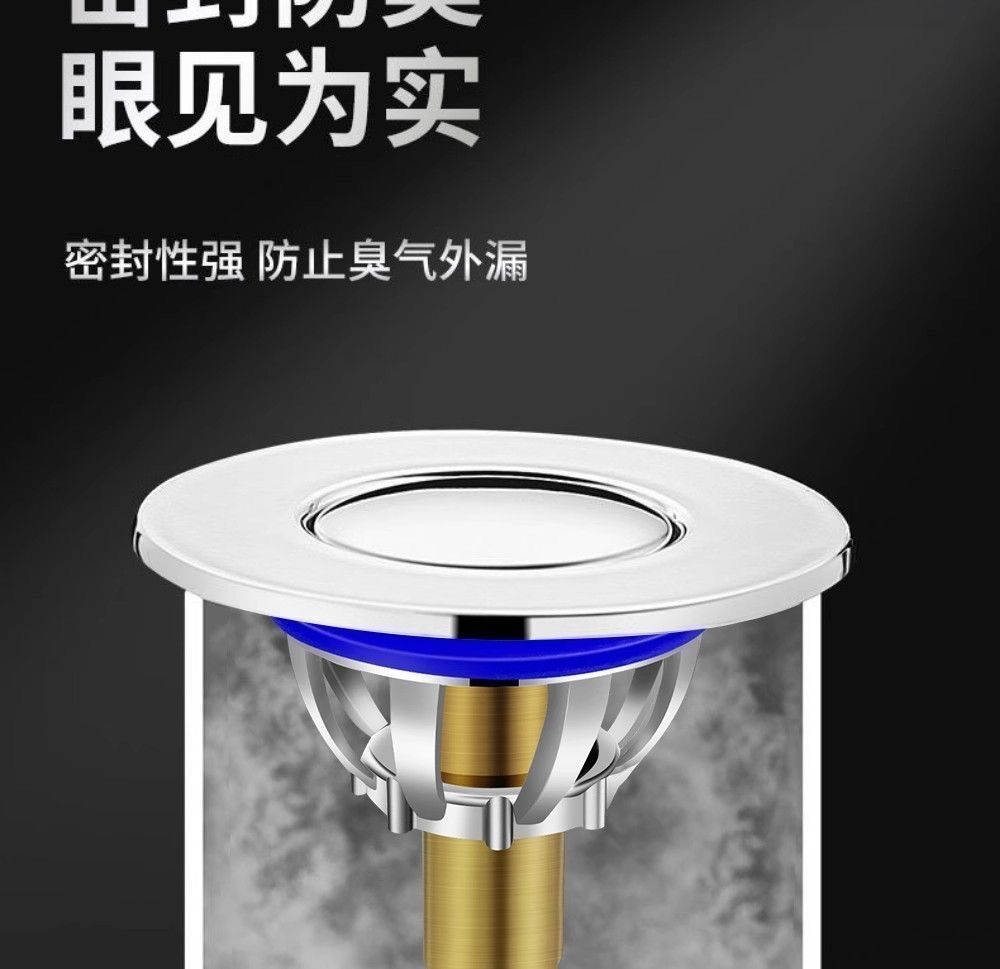 卫生间通用地漏防虫防臭不锈钢防反水下水道厕所按压式弹跳芯底座