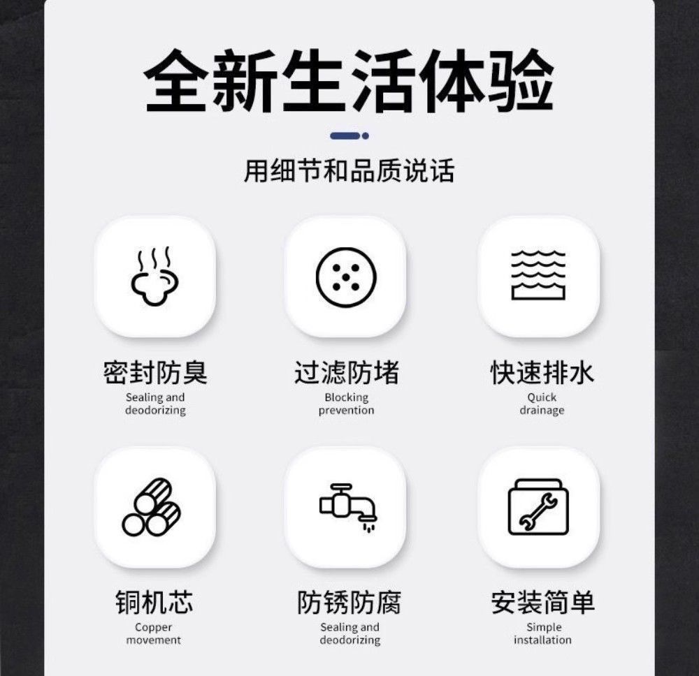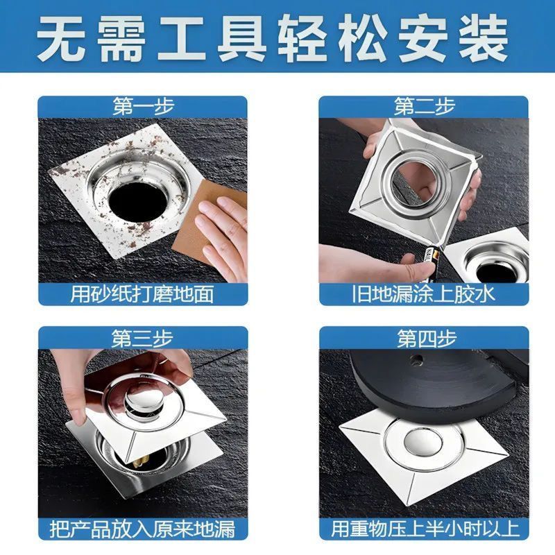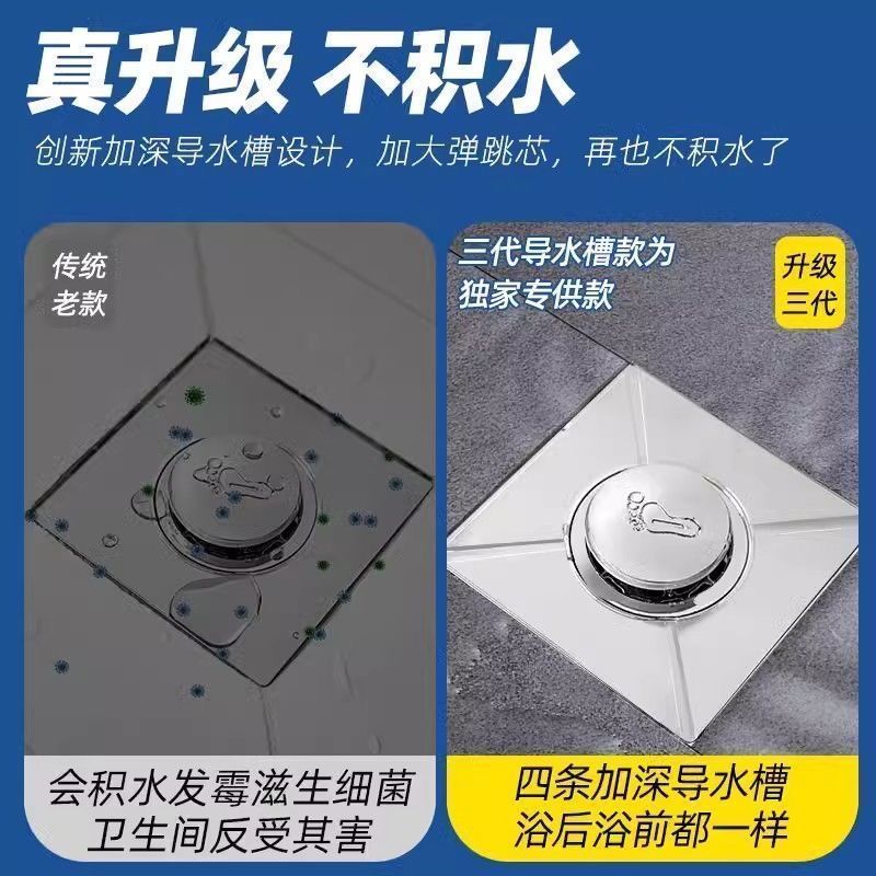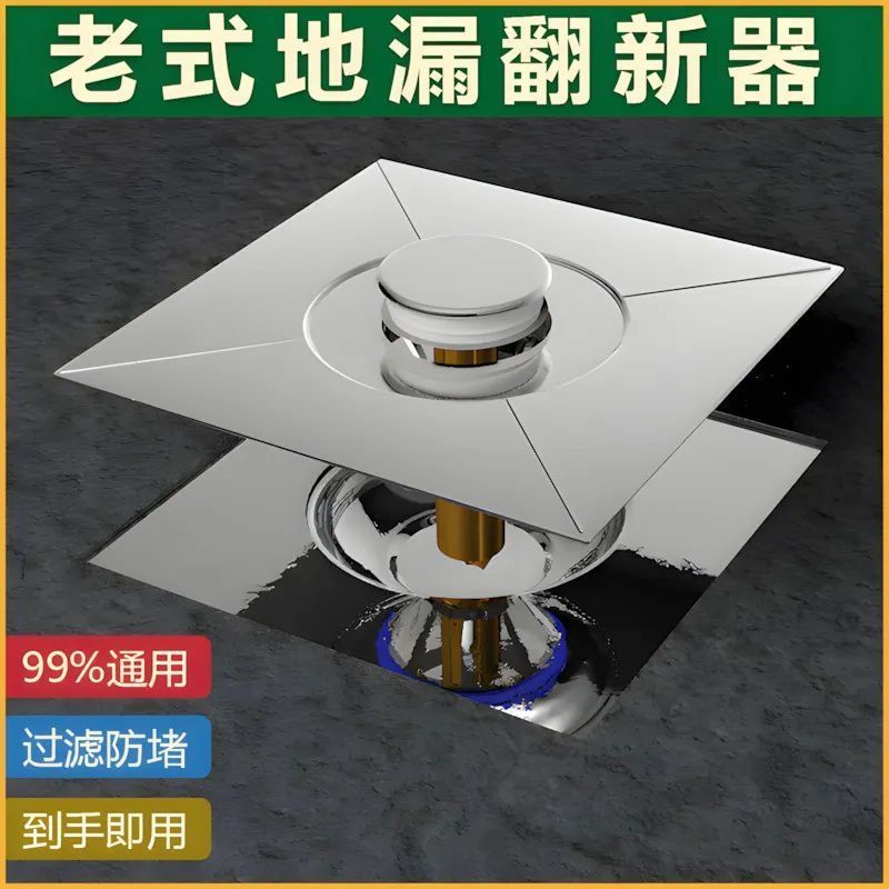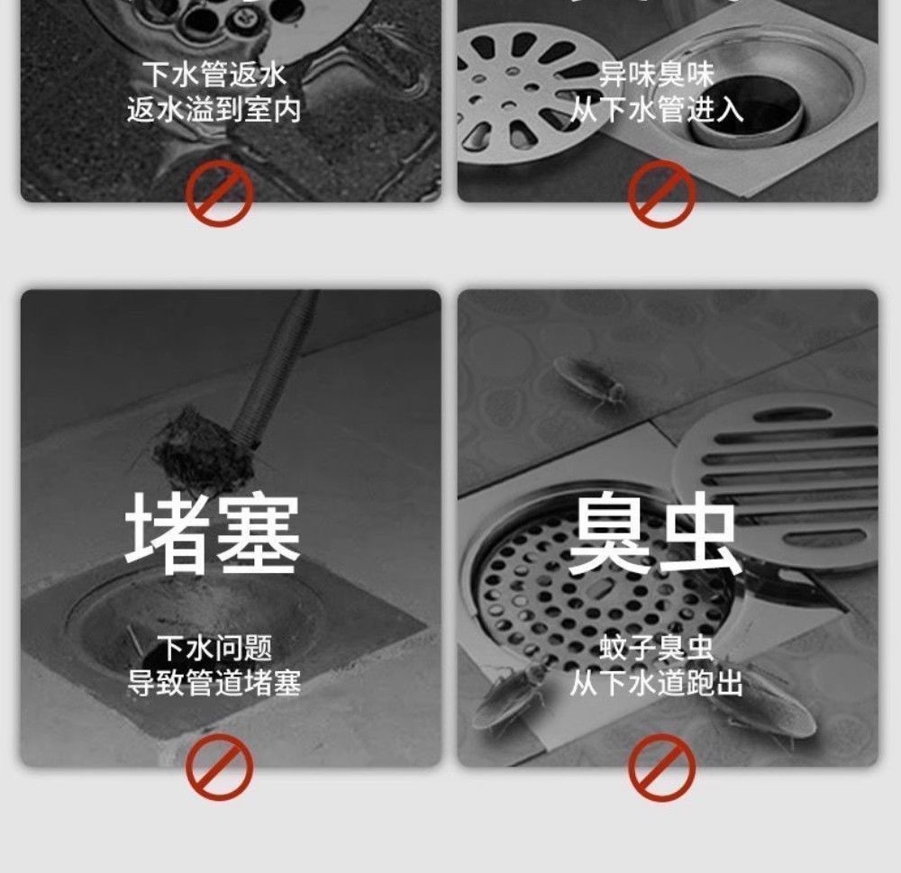 卫生间通用地漏防虫防臭不锈钢防反水下水道厕所按压式弹跳芯底座
