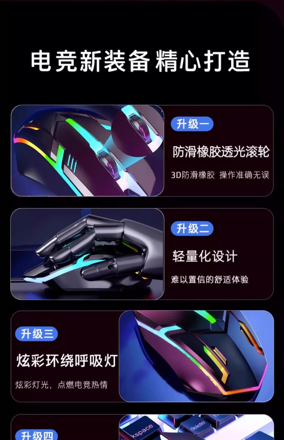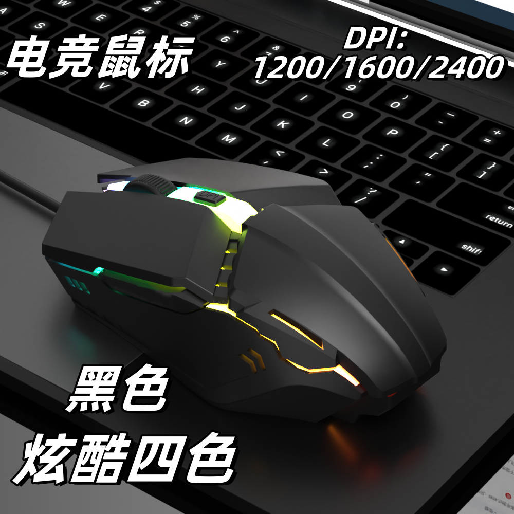 有线鼠标USB电竞鼠标RGB炫彩发光游戏办公两用渐变呼吸灯磁悬按键