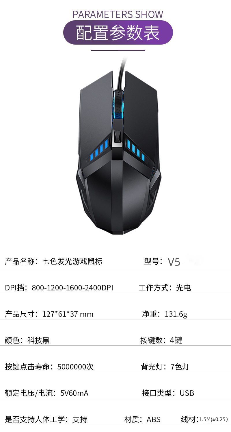 | v5 black [e-sports response] multi-speed dpi adjustable(V5黑色【电竞响应】多档DPI可调) | USD $4.64 | 999999 piece available |