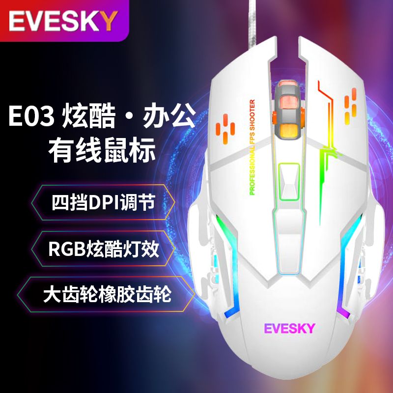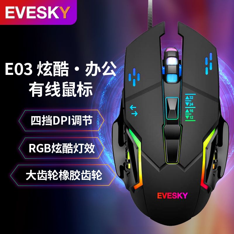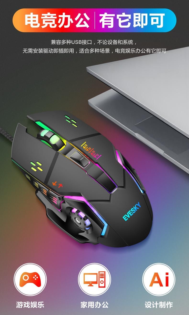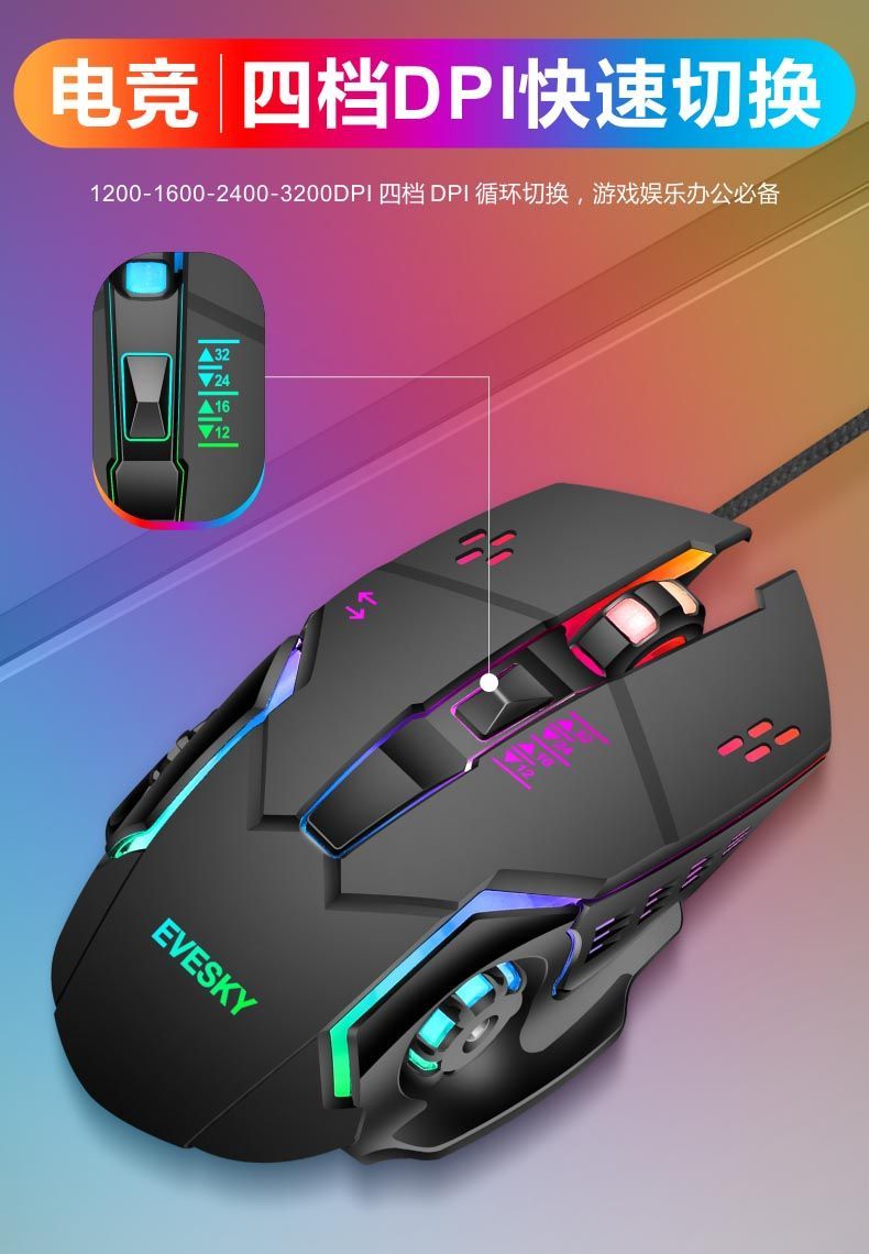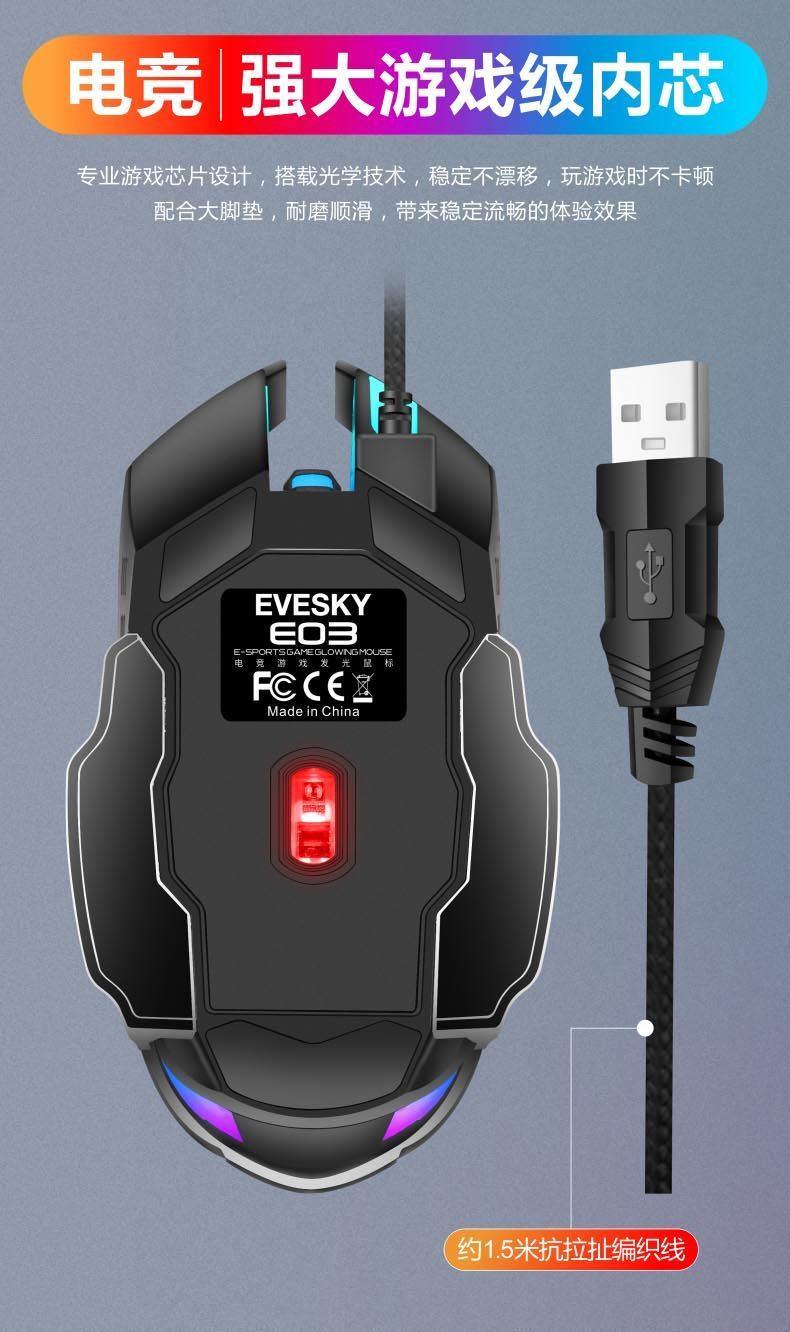 积至EVESKY E03鼠标游戏专用有线电竞机械lol吃鸡CF笔记本电脑