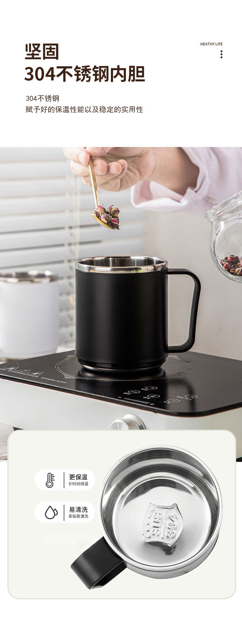 304不锈钢马克杯高颜值家用带盖杯子情侣水杯咖啡杯带盖吸管套装
