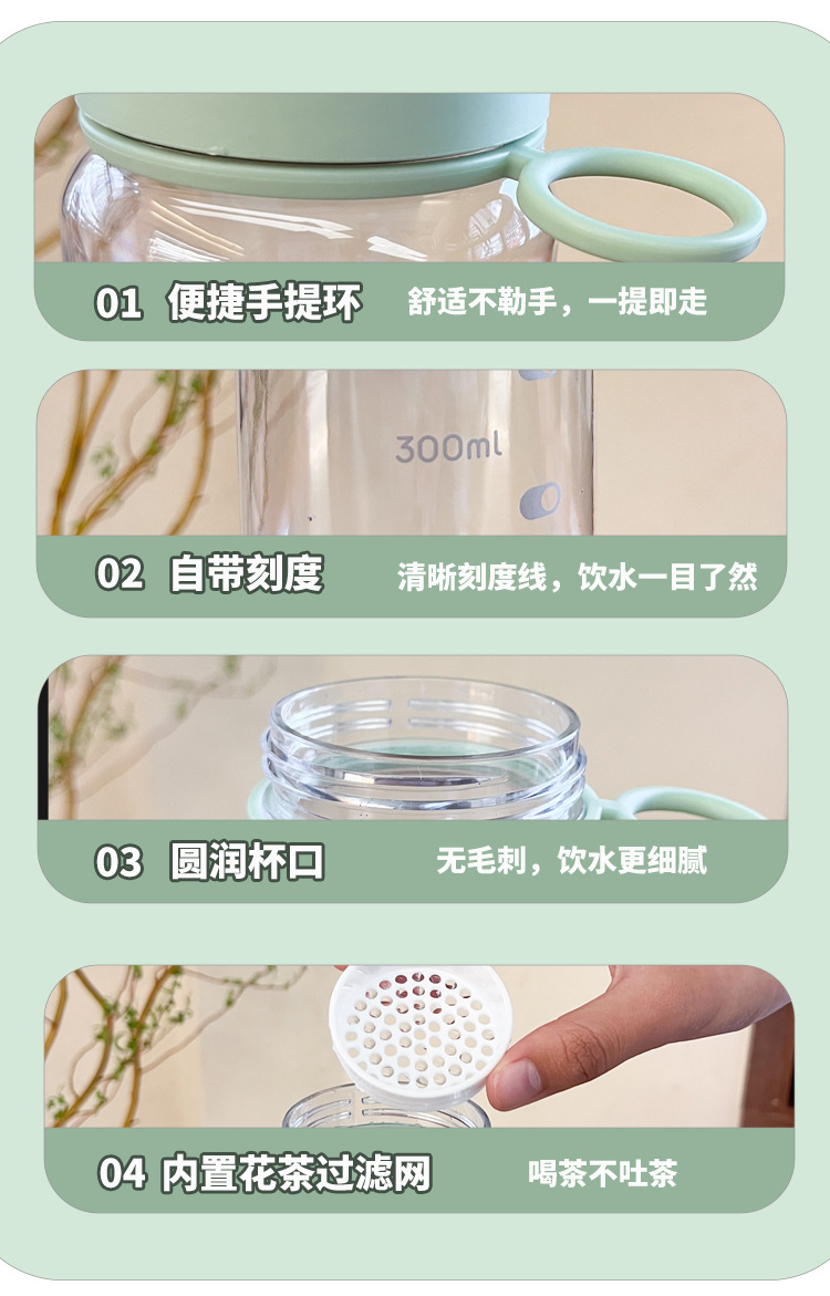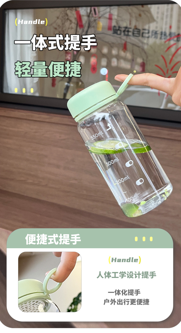 简约爆款女生杯子ins高颜值塑料透明茶杯携带小初高中学生随手杯