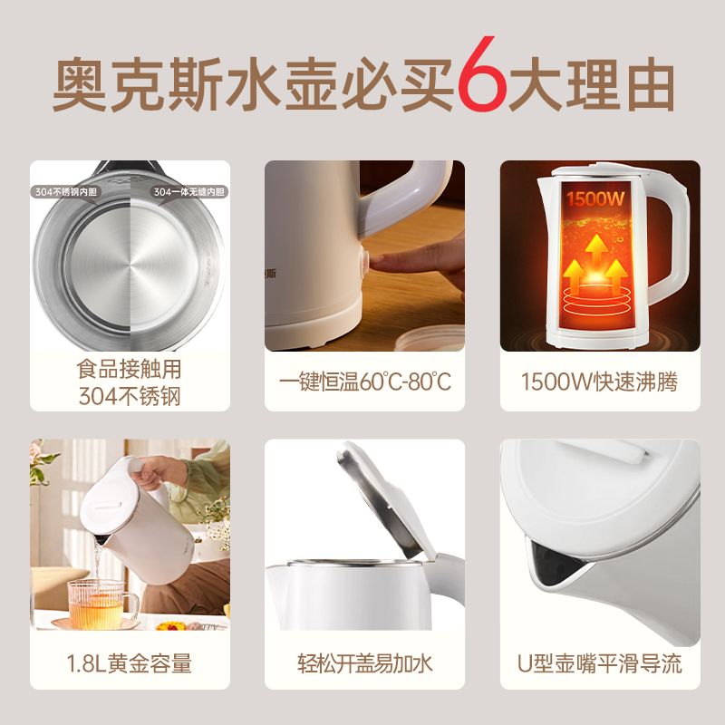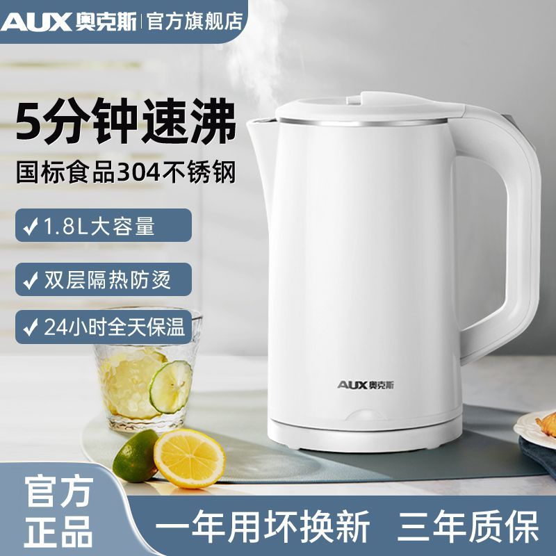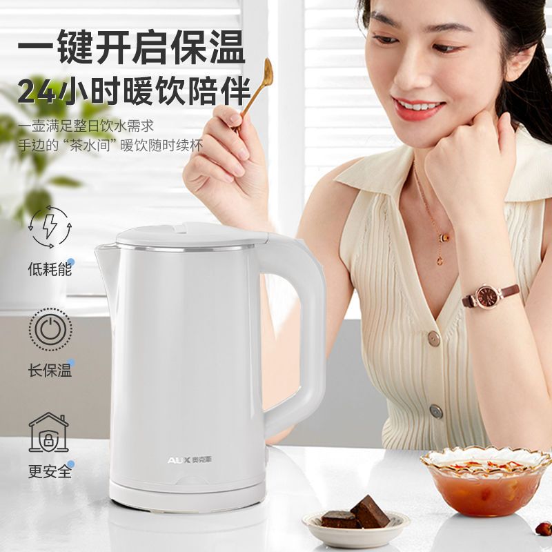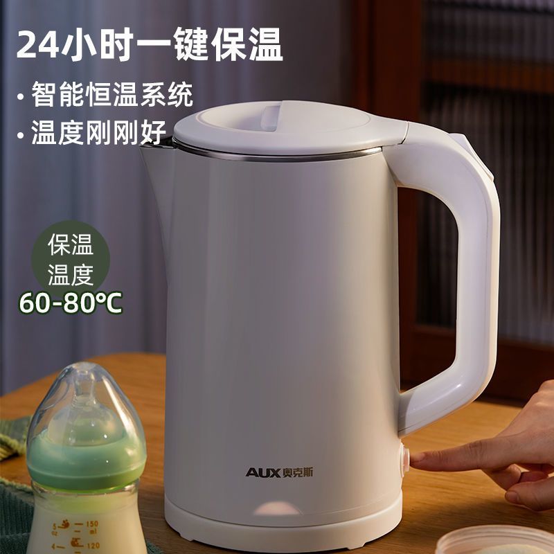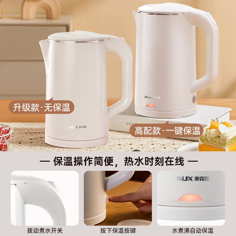 奥克斯电热水壶家用不锈钢烧水壶全自动保温无缝一体宿舍开水壶