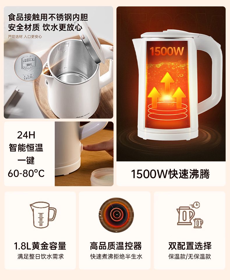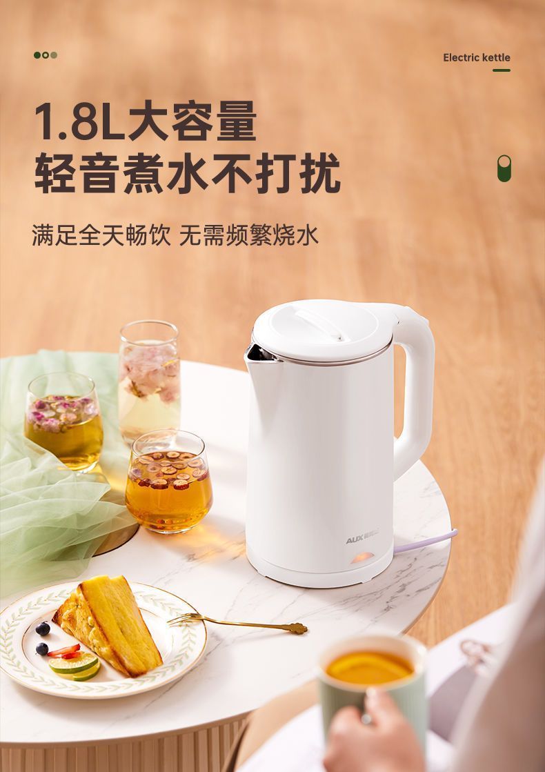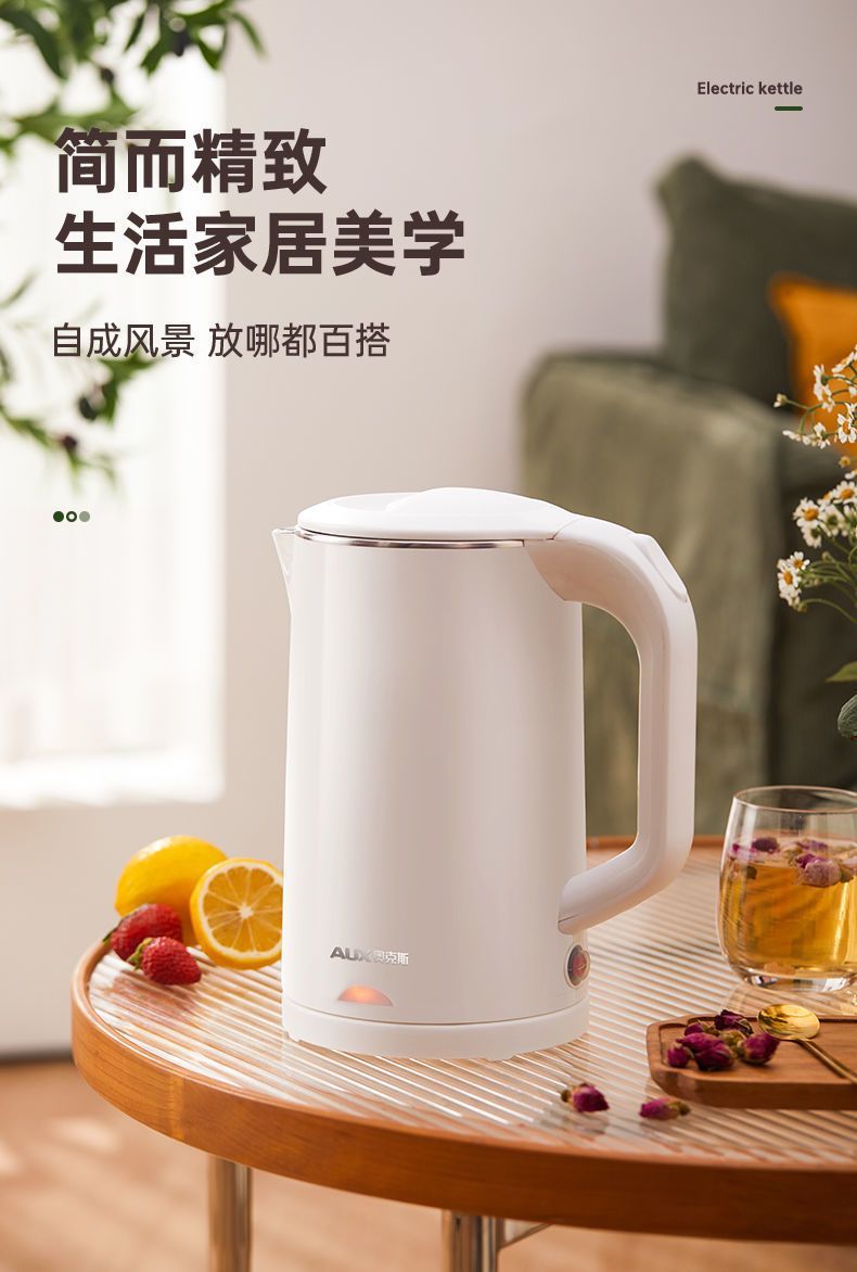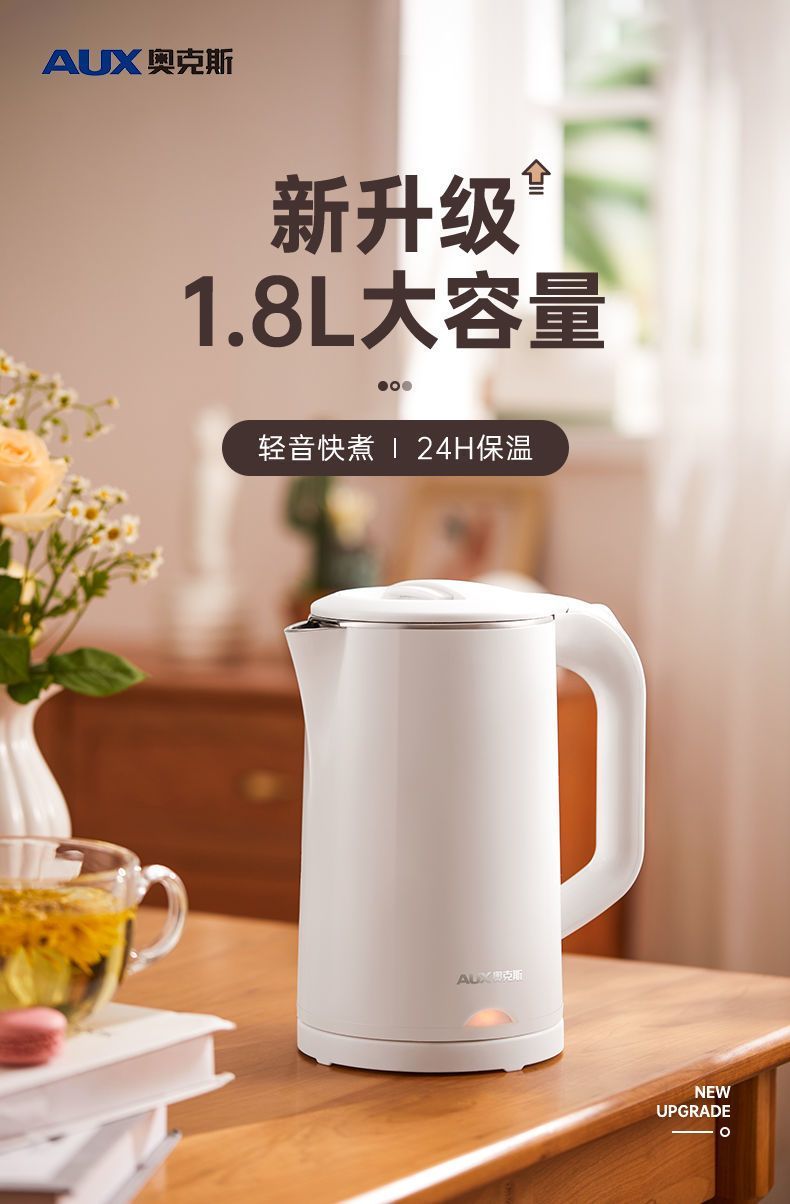 奥克斯电热水壶家用不锈钢烧水壶全自动保温无缝一体宿舍开水壶