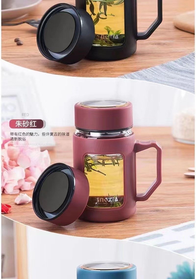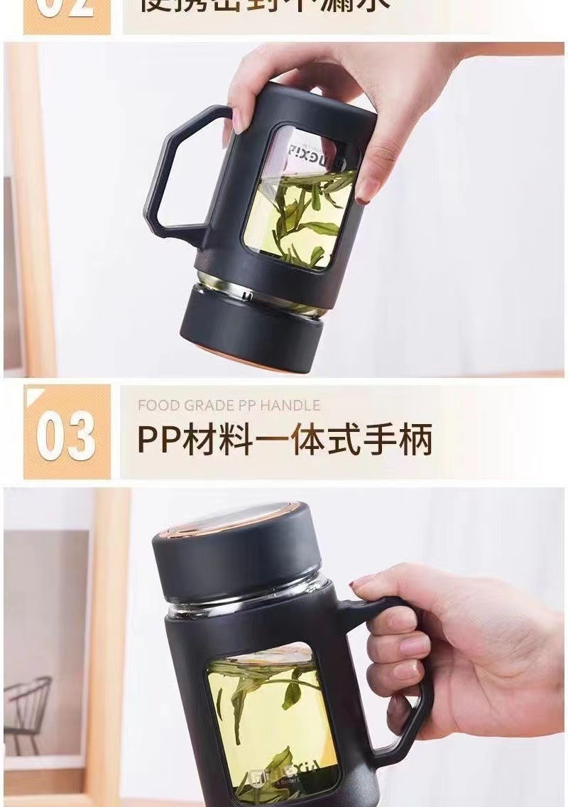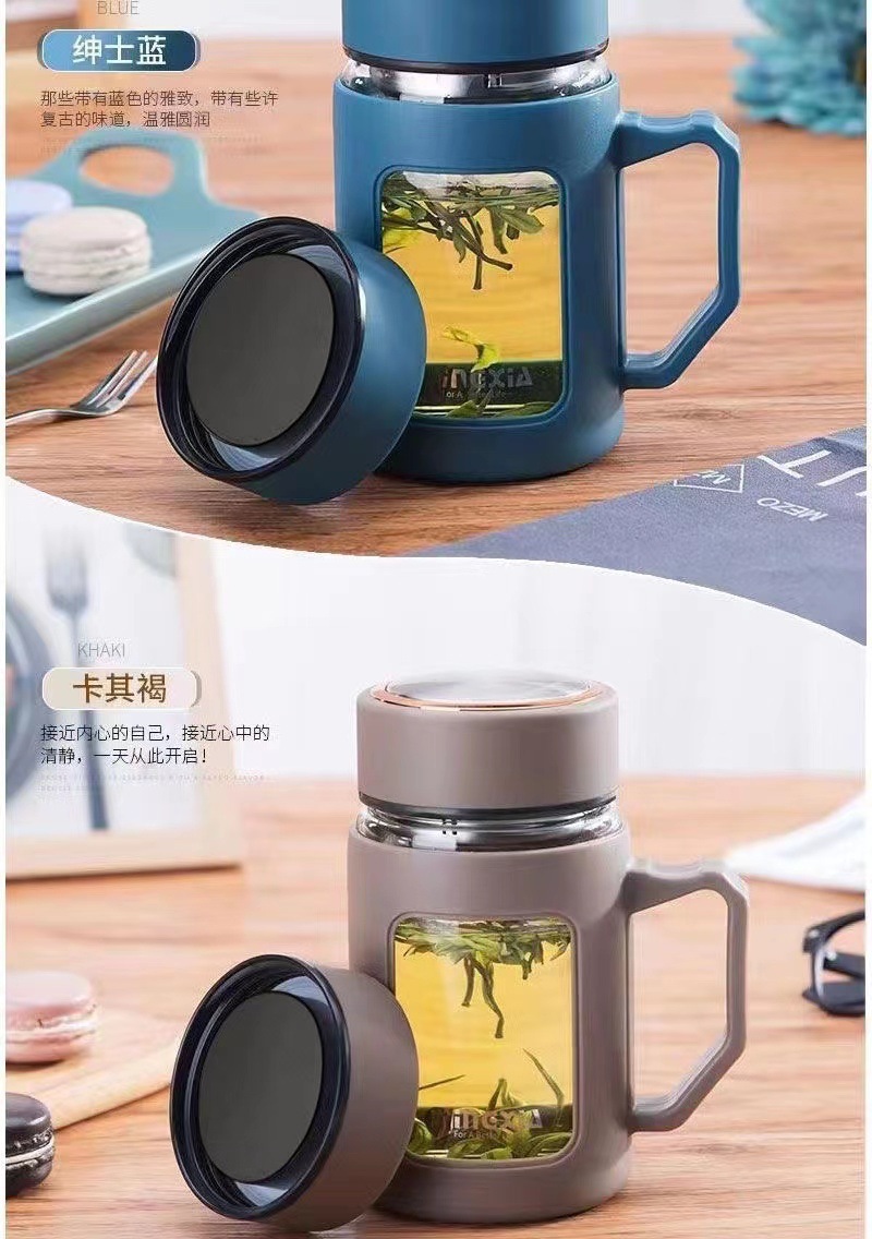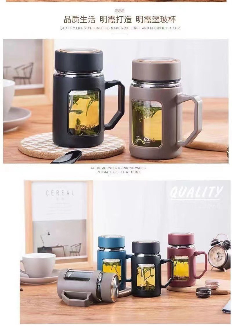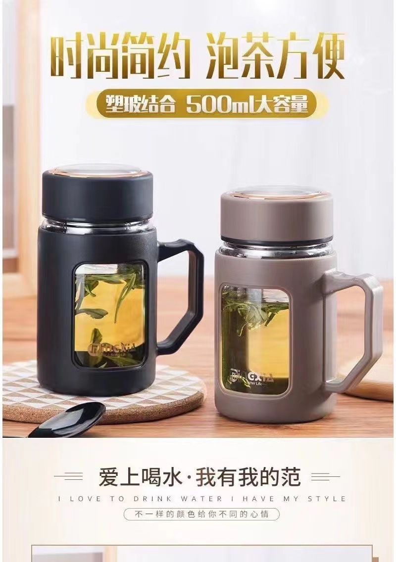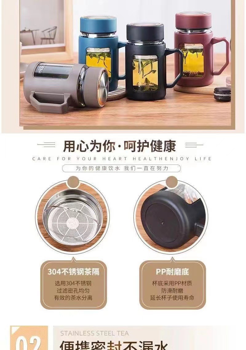 商务带把手玻璃杯带茶漏茶水分离水杯办公室泡茶商务大容量茶水杯