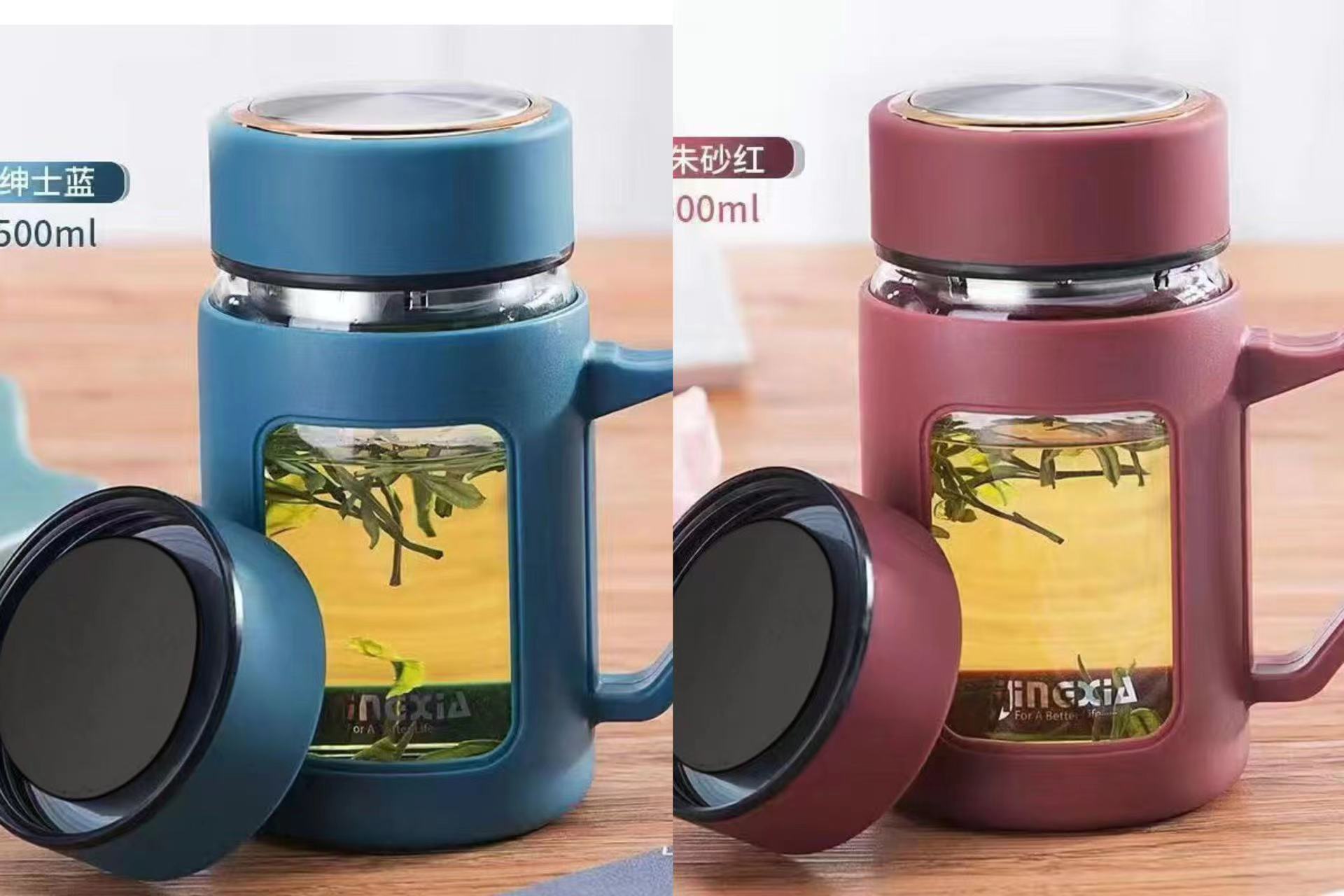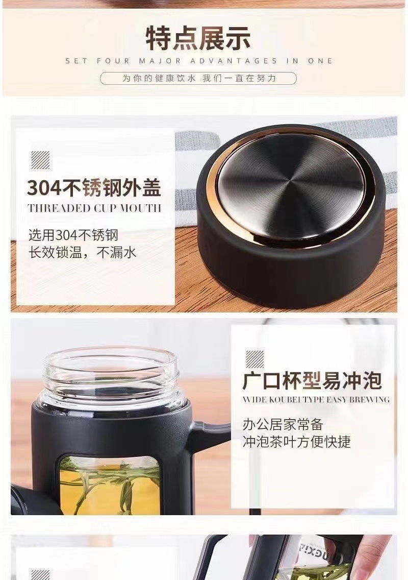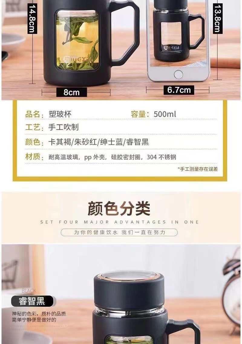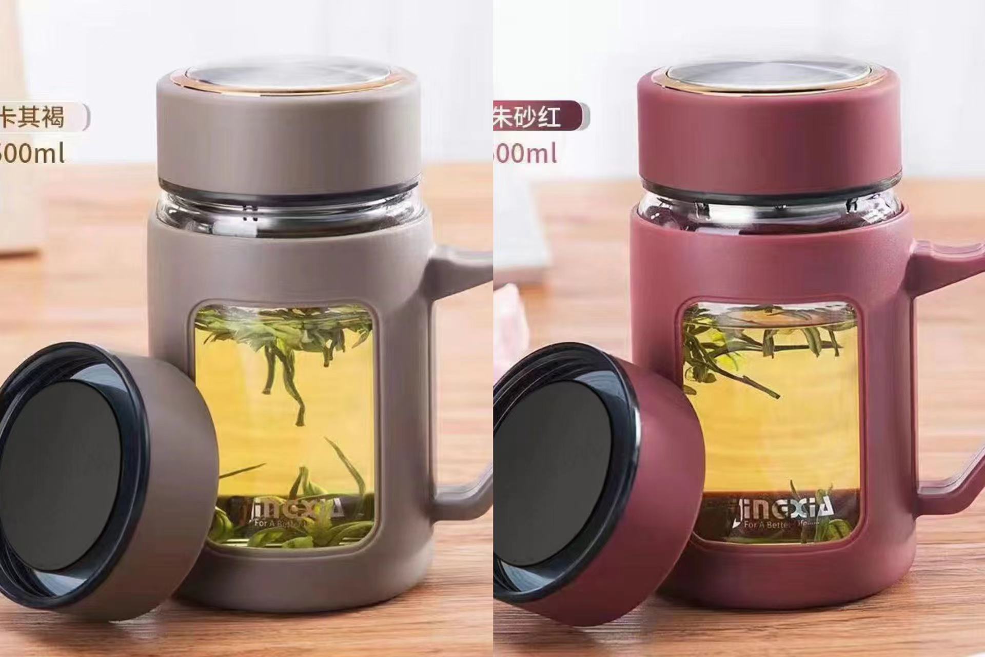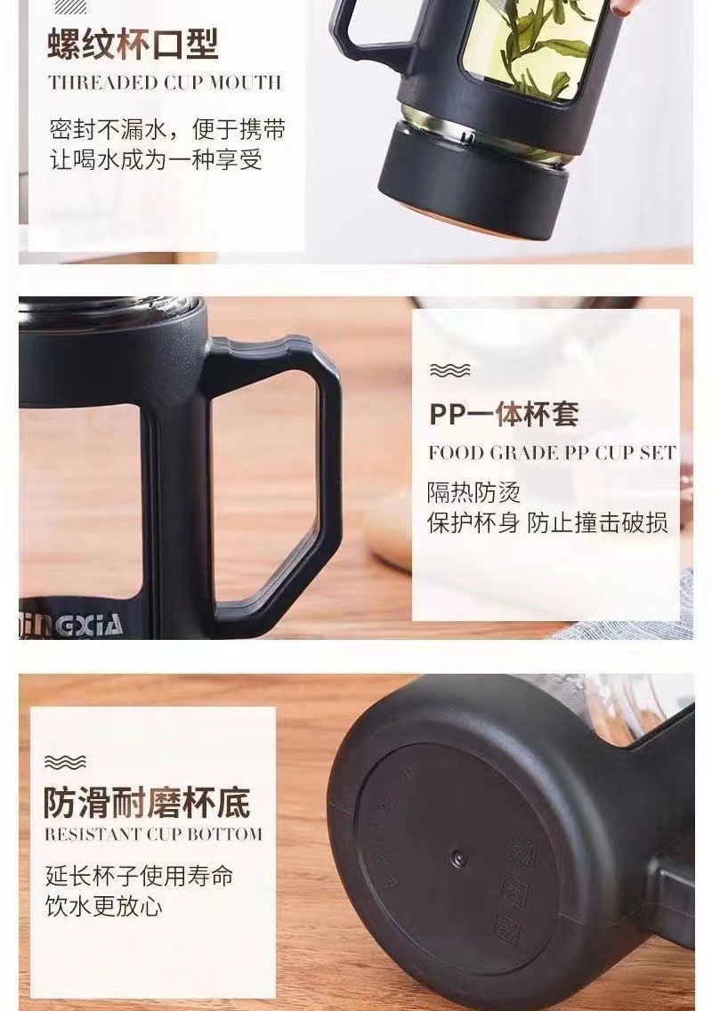 商务带把手玻璃杯带茶漏茶水分离水杯办公室泡茶商务大容量茶水杯