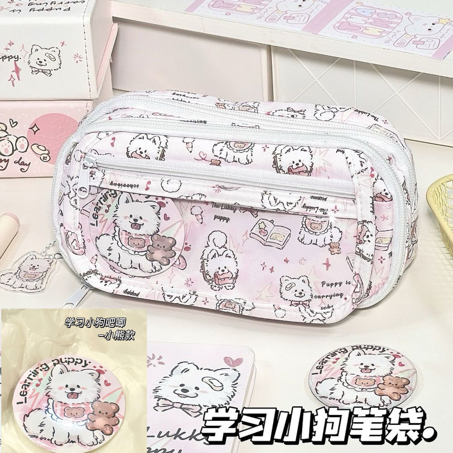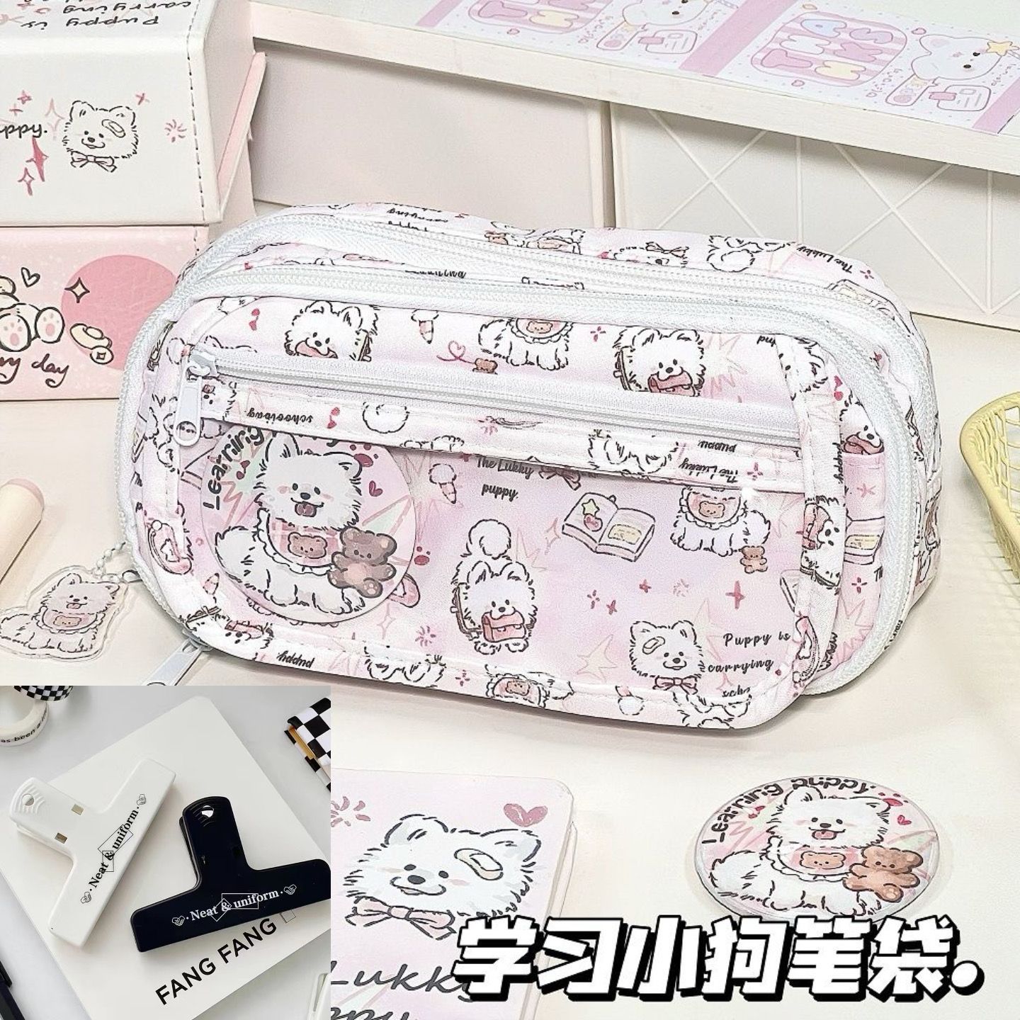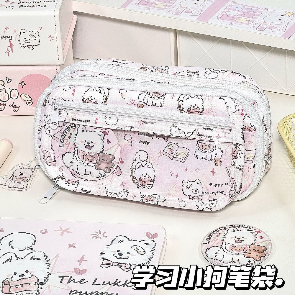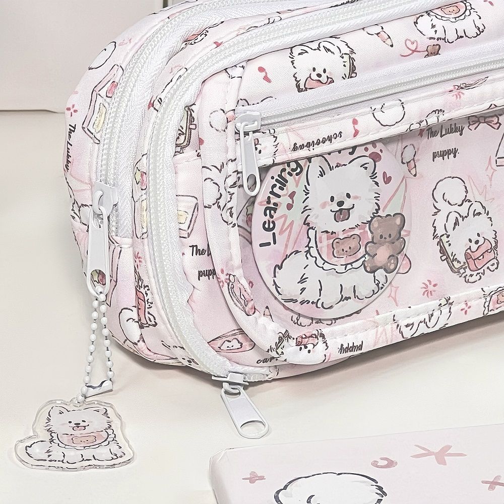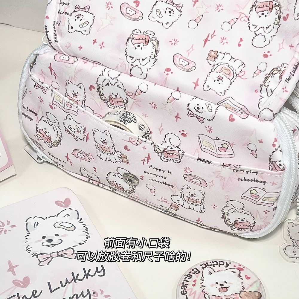 原创粉色萨摩耶狗狗痛包笔袋可爱大容量高颜值小众学生文具收纳袋