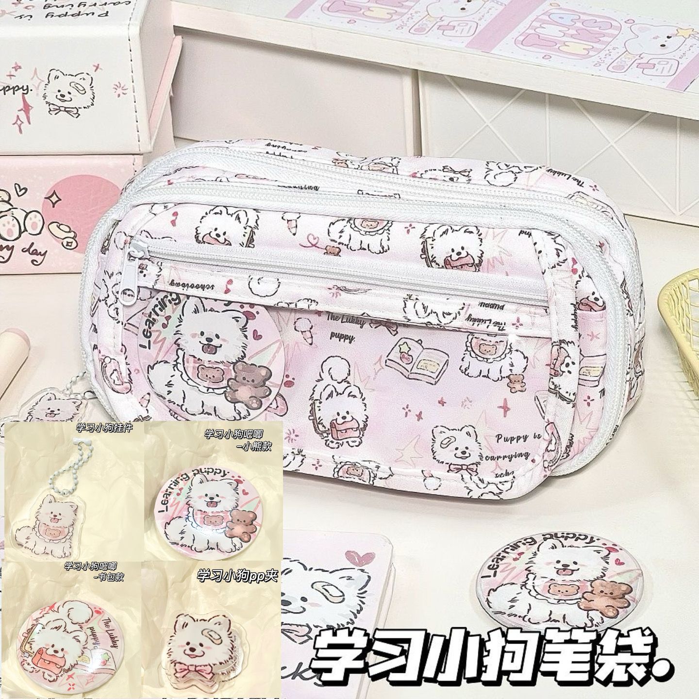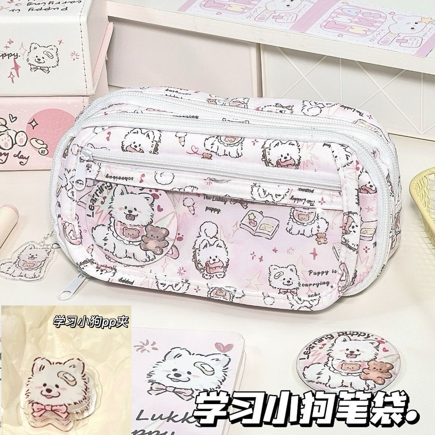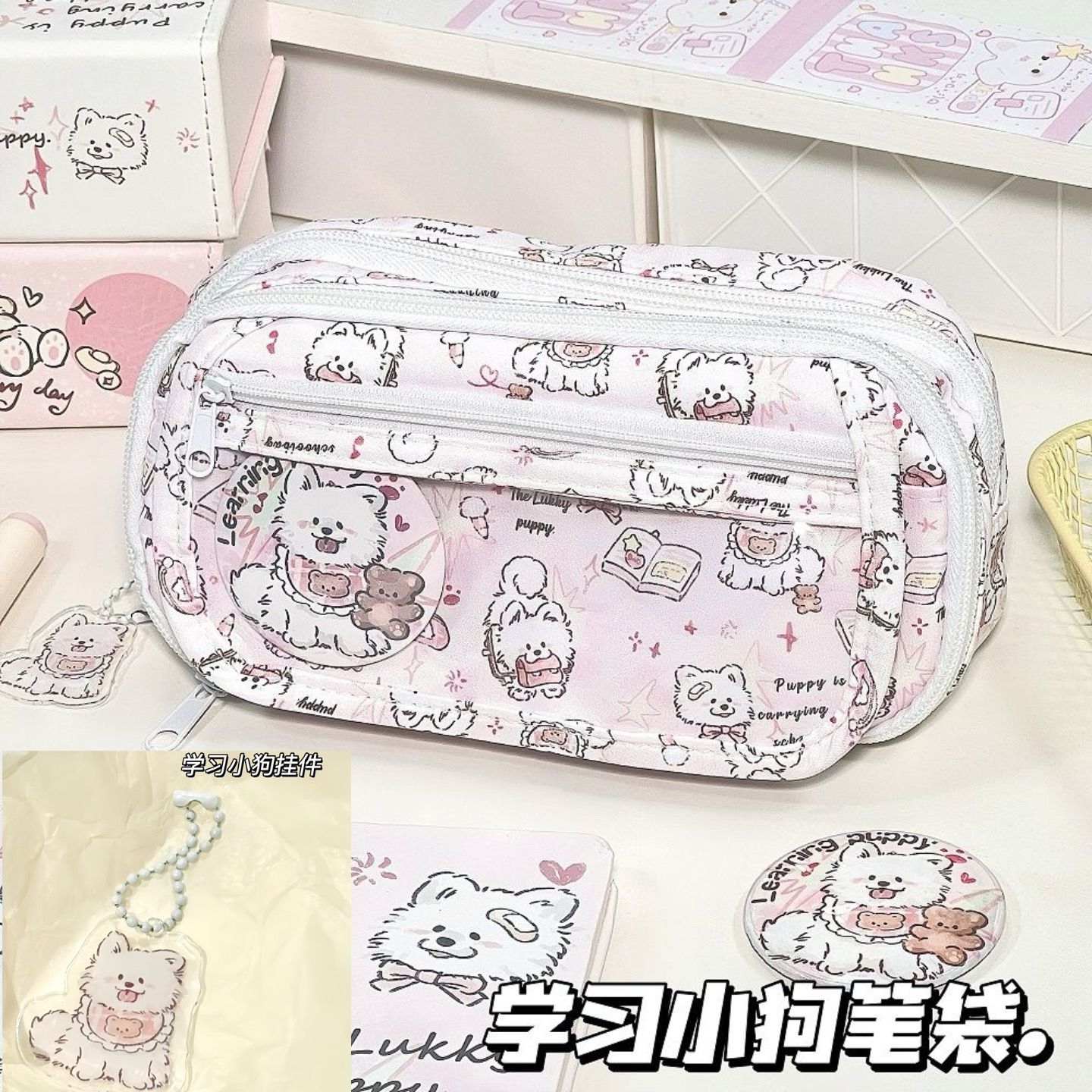 原创粉色萨摩耶狗狗痛包笔袋可爱大容量高颜值小众学生文具收纳袋