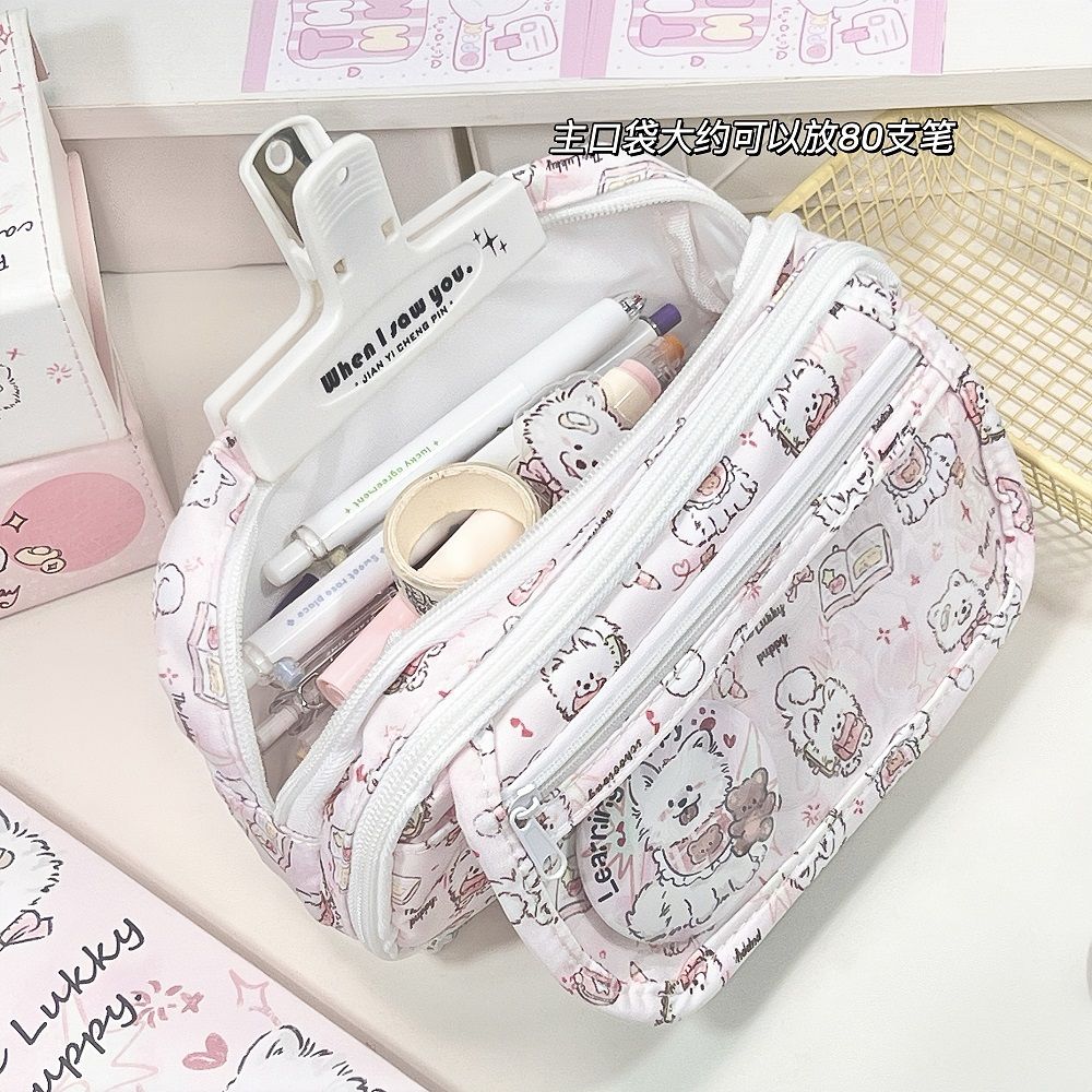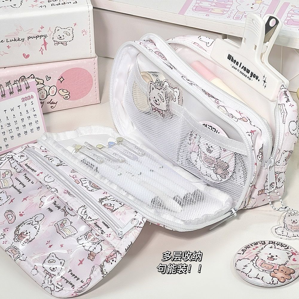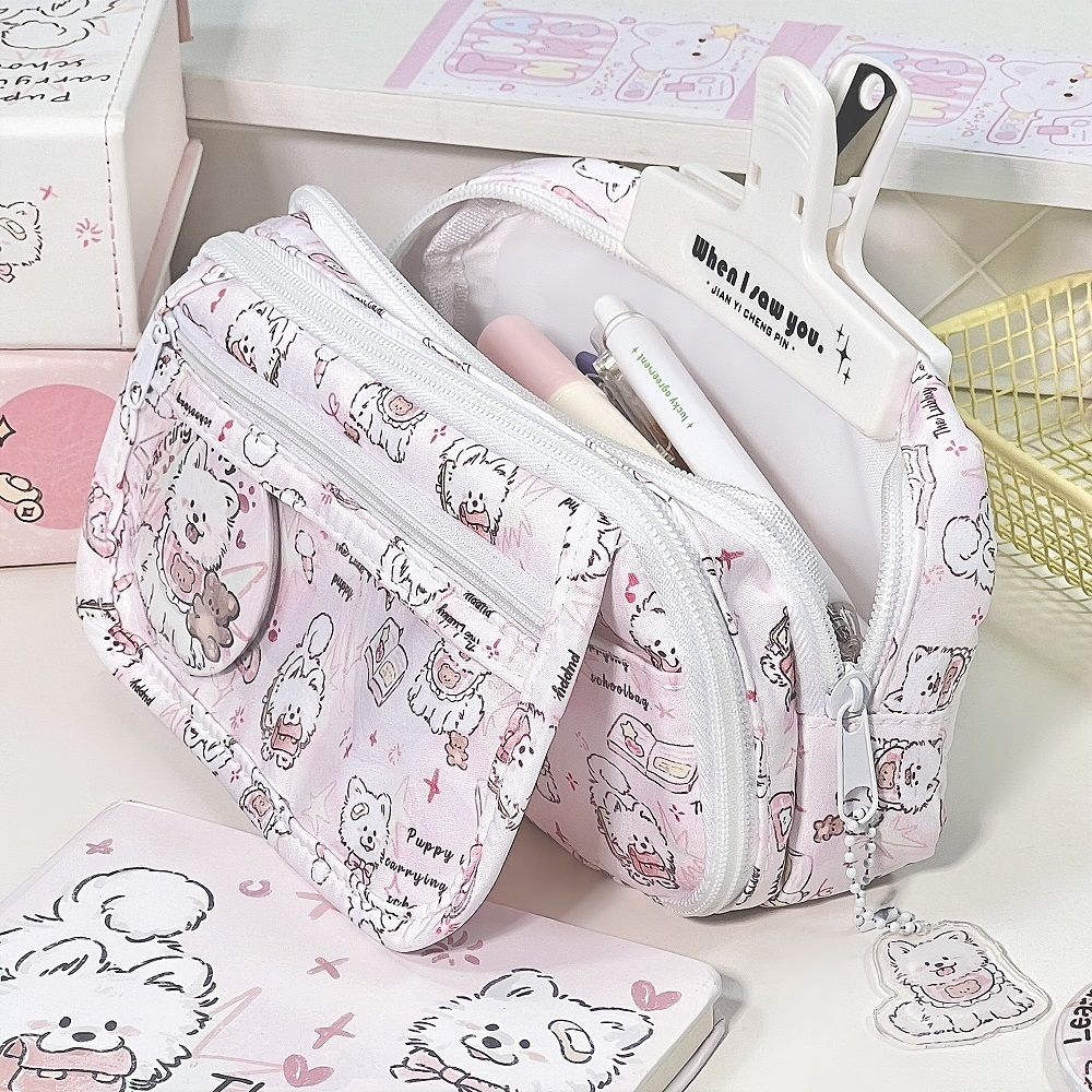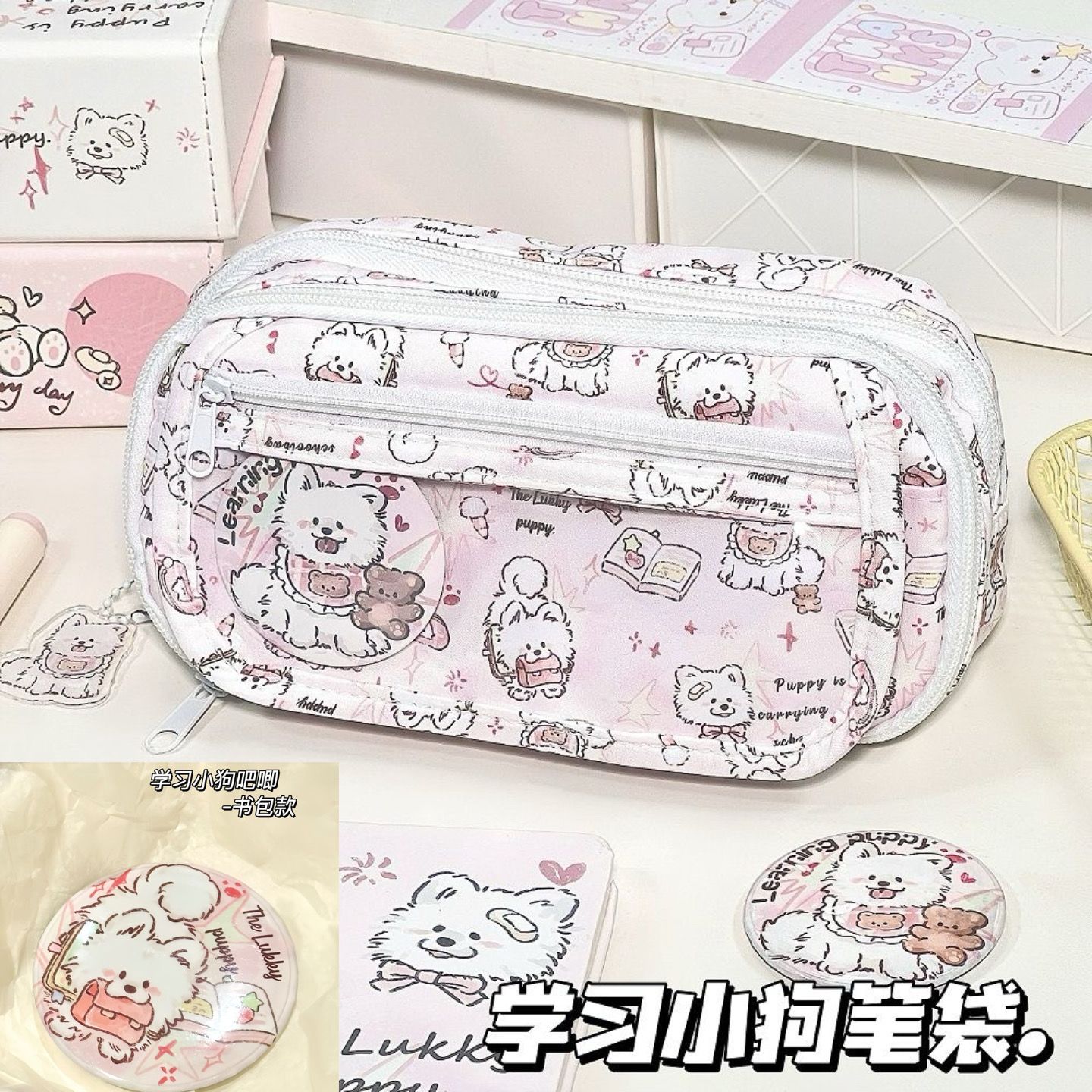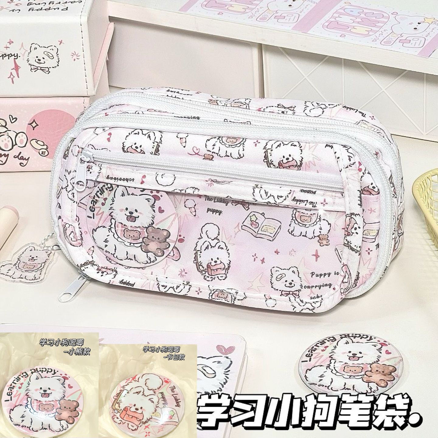 原创粉色萨摩耶狗狗痛包笔袋可爱大容量高颜值小众学生文具收纳袋