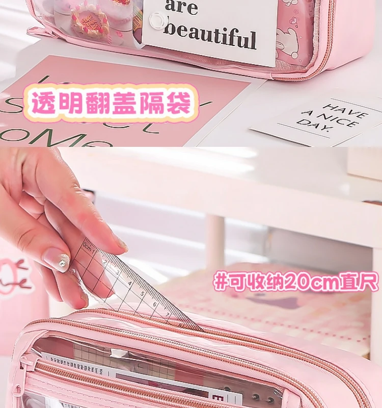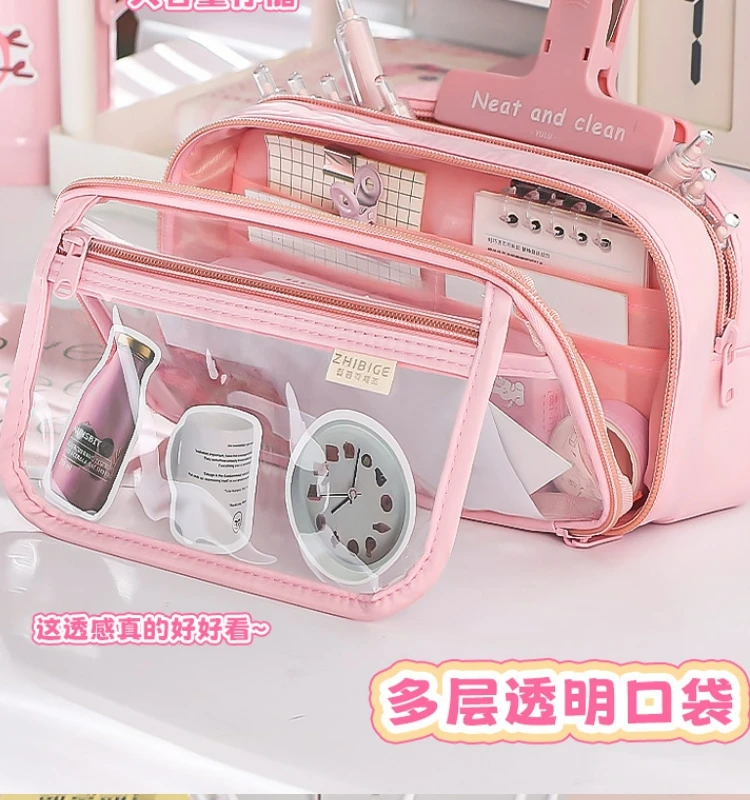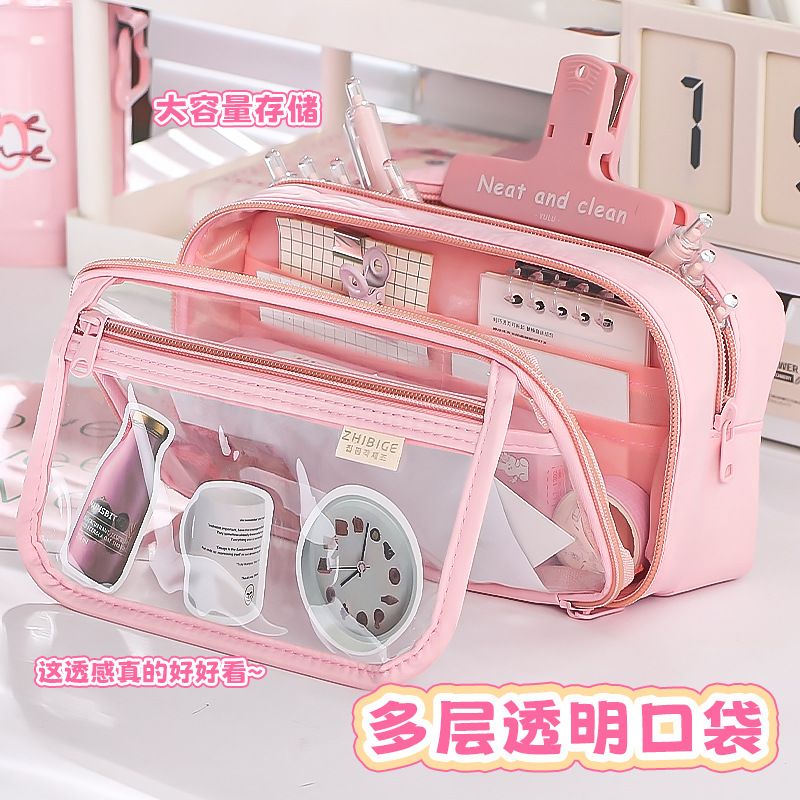 透明笔袋ins风小众巨能装文具盒小学生质量好女孩款初中生高颜值