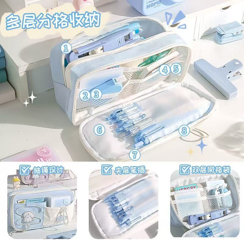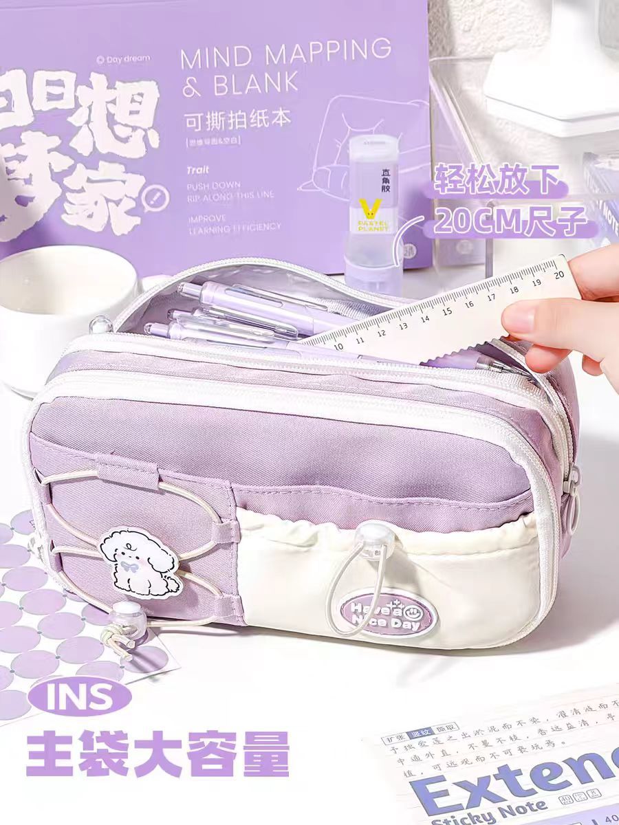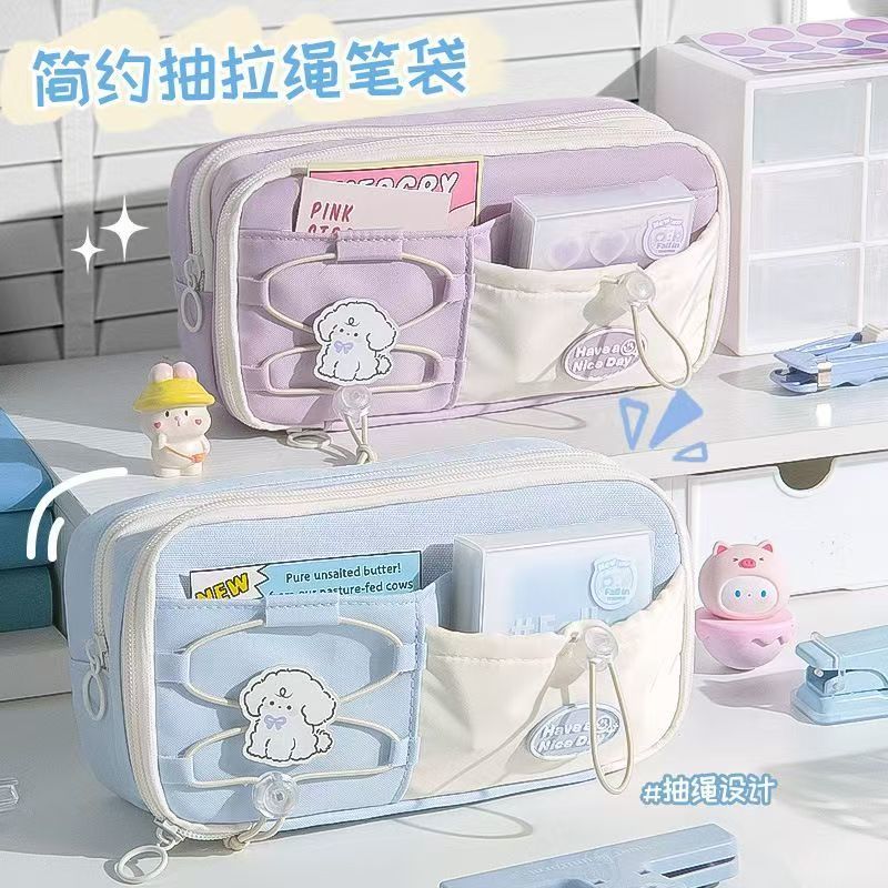 大容量新款简约笔袋初中生文具盒女生可爱铅笔盒文具高颜值抽绳