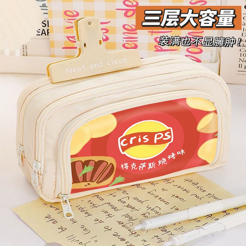 搞怪笔袋ins初高中生创意薯片大容量文具盒女生多功能小众铅笔盒